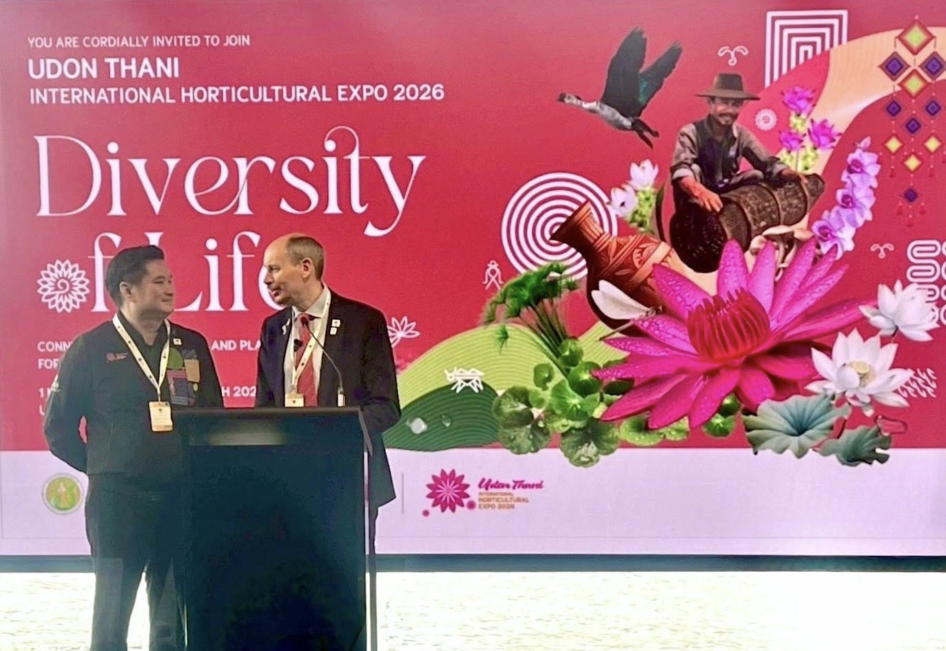 นายรพีภัทร์ จันทรศรีวงศ์ อธิบดีกรมวิชาการเกษตร และคณะผู้แทนจากประเทศไทย รายงานความคืบหน้าการเตรียมจัดงานมหกรรมพืชสวนโลกจังหวัดอุดรธานี พ.ศ. 2569 และจังหวัดนครราชสีมา พ.ศ. 2572 ต่อที่ประชุม International Horticultural Expo Conference ในการประชุม AIPH Meeting Sydney 2026 ณ เมืองซิดนีย์ เครือรัฐออสเตรเลีย โดยยืนยันความพร้อมการเป็นเจ้าภาพจัดงานในทุกมิติ มุ่งเป้าหมายเปิดงานมหกรรมพืชสวนโลกจังหวัดอุดรธานี พ.ศ. 2569 อย่างเป็นทางการในวันที่ 1 พฤศจิกายน 2569 ตามกำหนด