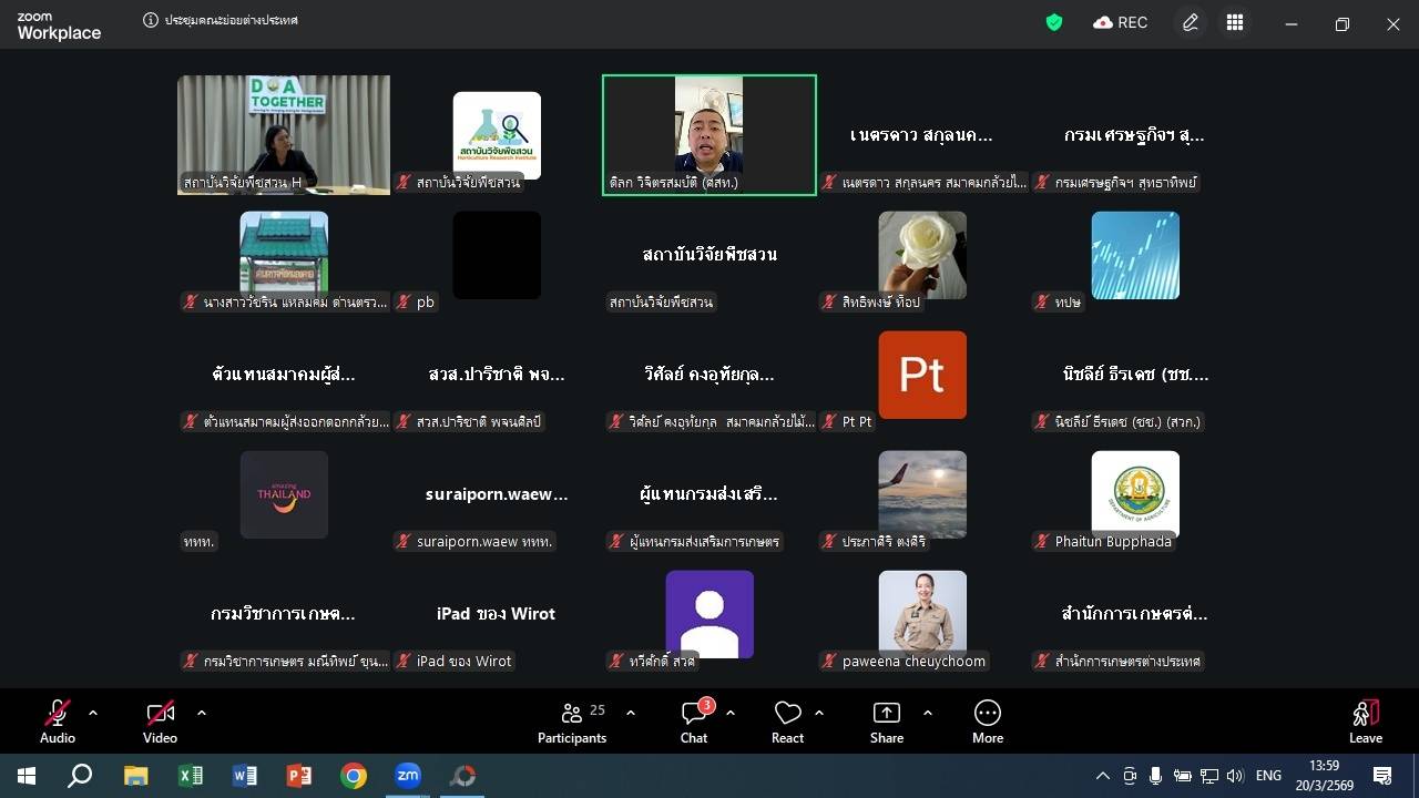 วันที่ 20 มีนาคม 2569 นางสาวกาญจนา ทองนะ ผู้อำนวยการสถาบันวิจัยพืชสวน เป็นประธานคณะทำงานย่อยด้านต่างประเทศ สวนนานาชาติ ครั้งที่ 1/2569 เพื่อขับเคลื่อนการเตรียมความพร้อมการจัดงานในระดับนานาชาติ ณ ห้องประชุม 321 สถาบันวิจัยพืชสวน และผ่านระบบ Zoom Cloud Meetings โดยมีคณะทำงานที่เกี่ยวข้องเข้าร่วมประชุม เพื่อพิจารณาผังการจัดแสดงสวนนานาชาติ ทั้งพื้นที่ภายนอกและภายในอาคาร (Outdoor และ Indoor International Garden) พร้อมหารือการจัดทำคู่มือและแนวทางการเข้าร่วมจัดแสดง รวมถึงร่างสัญญาการเข้าร่วมจัดสวนฯ และแนวทางการดำเนินการเชิญชวนสวนนานาชาติ เพื่อให้การจัดงานมหกรรมพืชสวนโลก จังหวัดอุดรธานี พ.ศ. 2569 เป็นไปอย่างมีประสิทธิภาพและได้มาตรฐานสากล