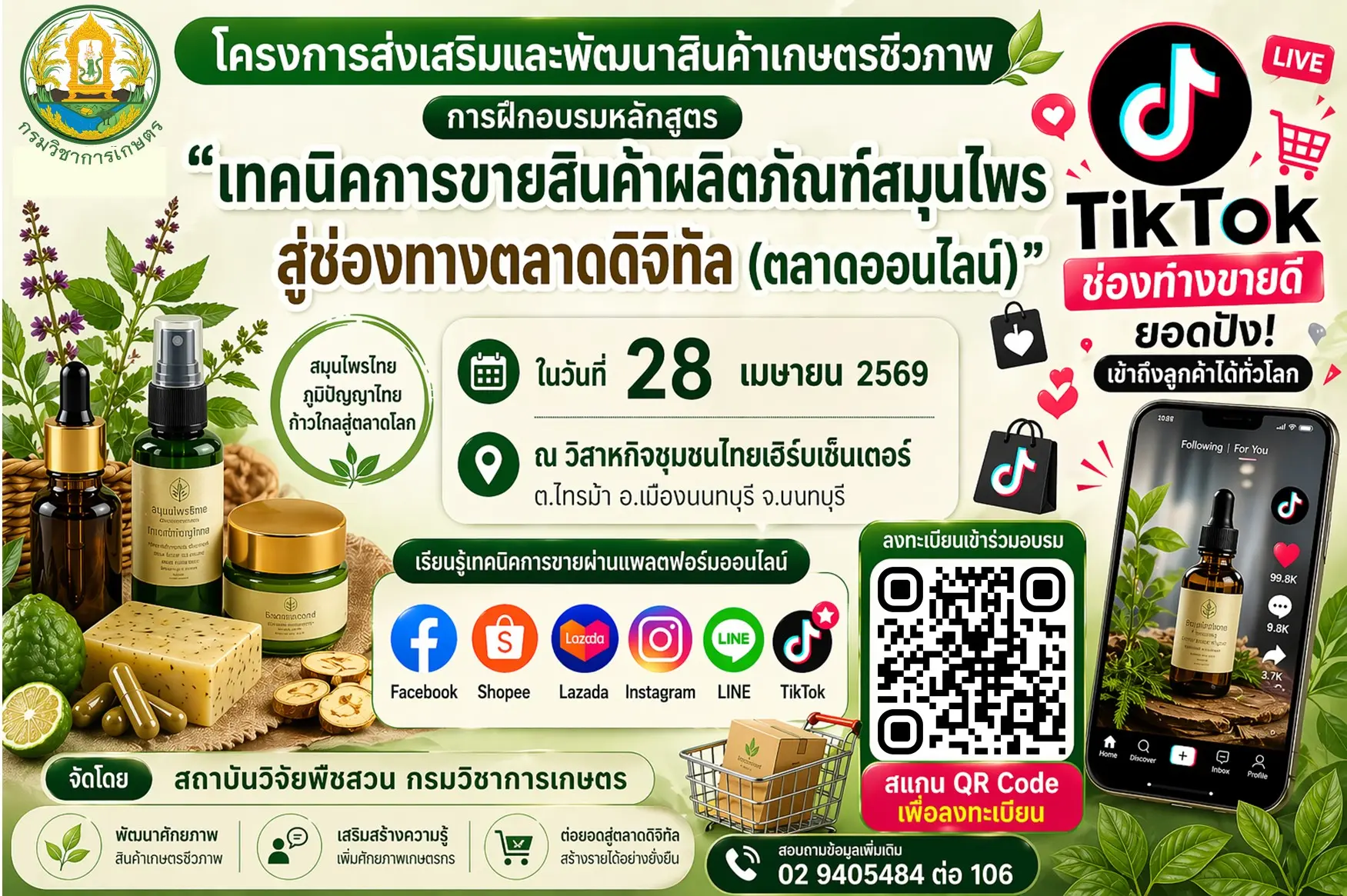 การฝึกอบรม หลักสูตร เทคนิคการขายสินค้าผลิตภัณฑ์สมุนไพรสู่ช่องทางตลาดดิจิทัล (ตลาดออนไลน์)