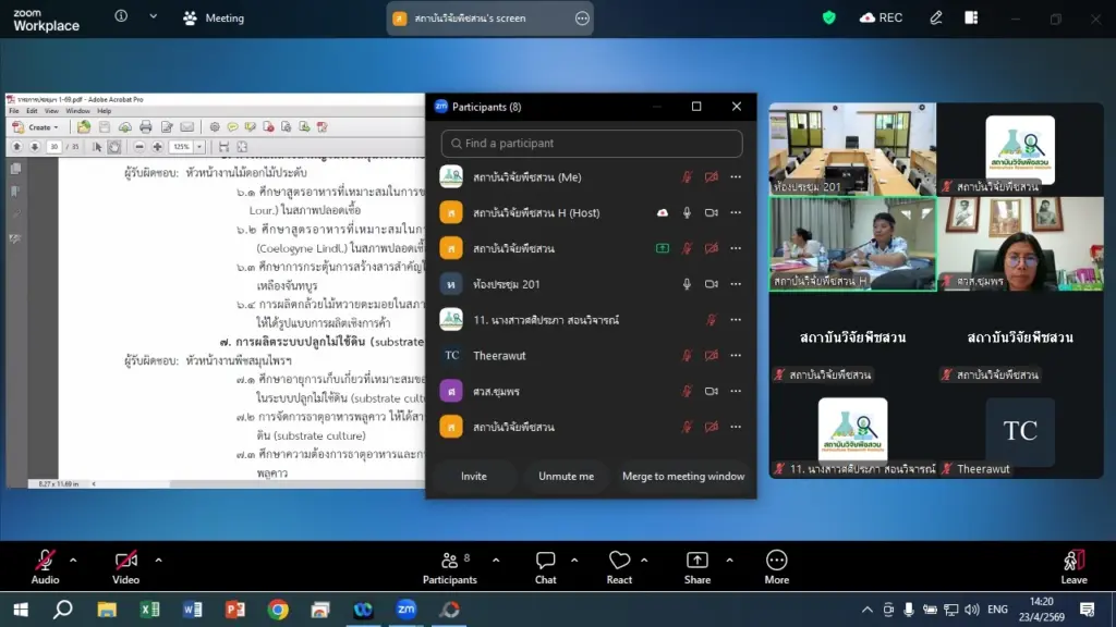 วันที่ 23 เมษายน 2569 นางสาวกาญจนา ทองนะ ผู้อำนวยการสถาบันวิจัยพืชสวน เป็นประธานการประชุมคณะกรรมการบริหารสถาบันวิจัยพืชสวน ครั้งที่ 1/2569 โดยมี คณะกรรมการบริหารเข้าร่วมประชุม ณ ห้องประชุม 321 และผ่านระบบ Zoom Meeting เพื่อติดตามผลการดำเนินงานและการใช้จ่ายงบประมาณประจำปี 2569 รวมถึงความคืบหน้าการบริหารจัดการอัตรากำลัง การคัดเลือกนักวิจัยดีเด่นของกรมวิชาการเกษตร ประจำปี 2569