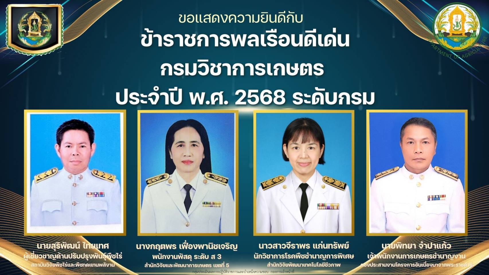 ประกาศกรมวิชาการเกษตร เรื่อง ข้าราชการพลเรือนดีเด่นกรมวิชาการเกษตร ประจำปี พ.ศ. 2568
