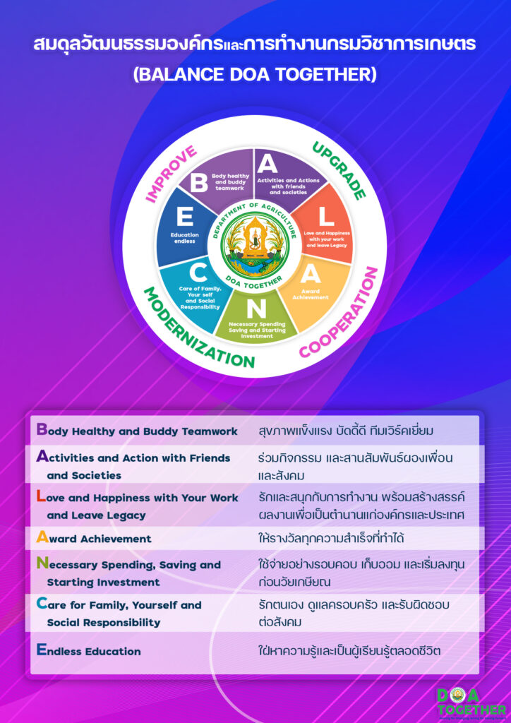 สมดุลวัฒนธรรมองค์กรและการทำงานกรมวิชาการเกษตร (BALANCE DOA TOGETHER)