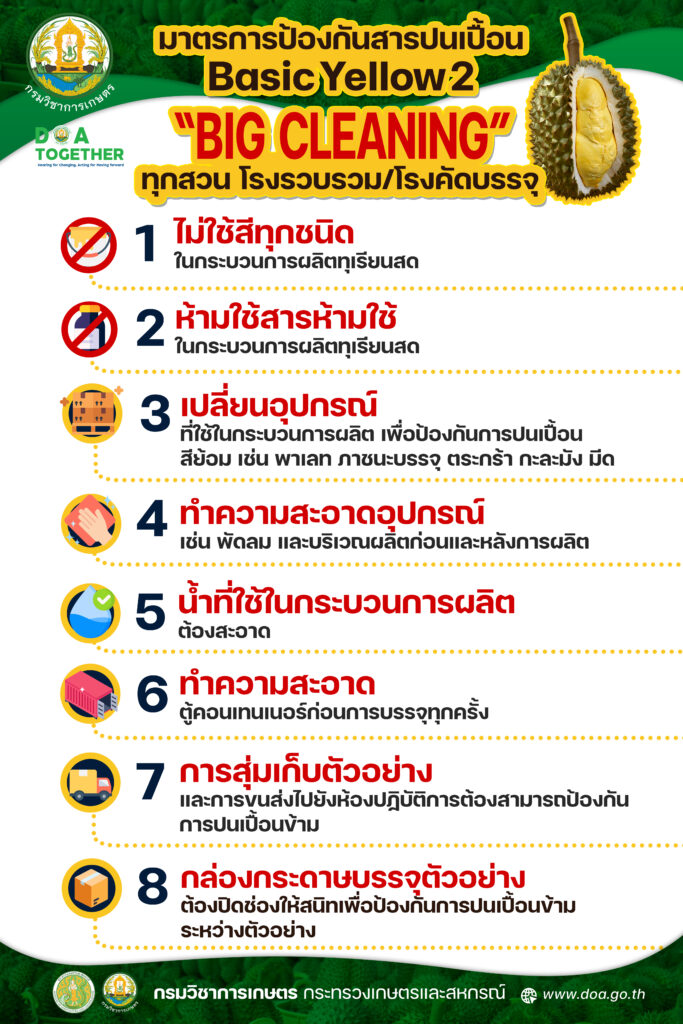 อินโฟกราฟิก | 20 มกราคม 2568 มาตรการป้องกันสารปนเปื้อน Basic Yellow 2 “BIG CLEANING” ทุกสวน โรงรวบรวม/โรงคัดบรรจุ FacebookFacebookXTwitterLINELine คำแนะนำการปลูกสมุนไพรหลังน้ำลด (ฟ้าทะลายโจร และบัวบก) กรมฝนหลวงฯ รับมอบความรับผิดชอบการบริหาร “ท่าอากาศยานตาก” จากกรมท่าอากาศยาน