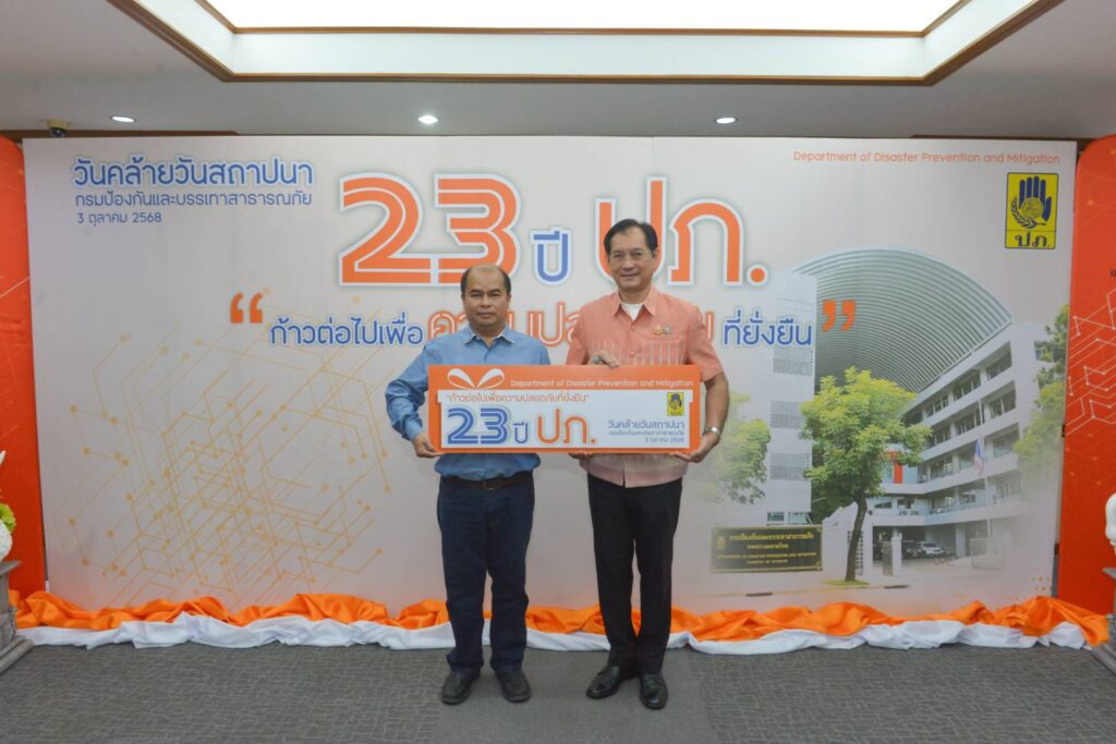 วันที่ 3 ตุลาคม 2568 นายชณาดลย์ สัตธณภัทร เลขานุการกรม กรมวิชาการเกษตร มอบหมายให้นายอาทิตย์ อุ่นเมือง ผู้อำนวยการกลุ่มช่วยอำนวยการและประสานราชการ ร่วมเป็นเกียรติในงานวันคล้ายวันสถาปนากรมป้องกันและบรรเทาสาธารณภัยครบรอบ 23 ปี พร้อมบริจาคเงินเพื่อสาธารณกุศล โดยกรมป้องกันและบรรเทาสาธารณภัย ณ ห้องประชุม 1 ปภ. อาคาร 3 ชั้น 5 กรมป้องกันและบรรเทาสาธารณภัย