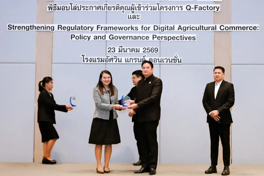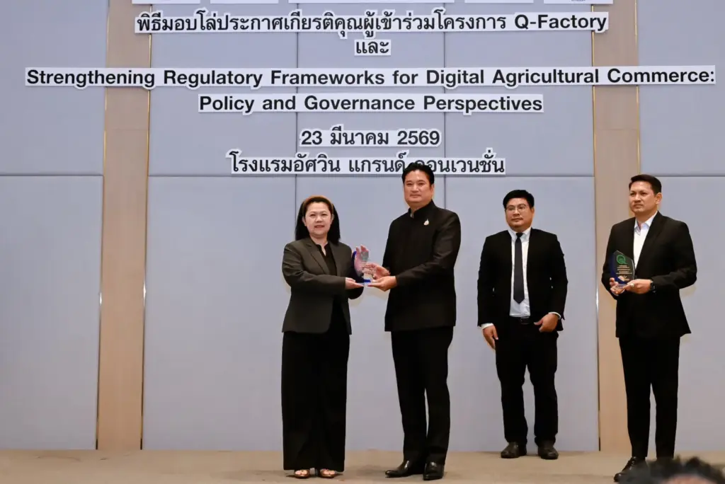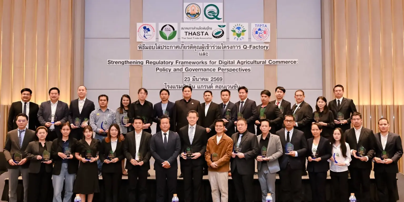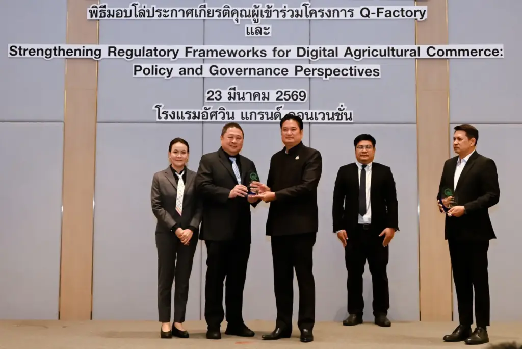 เมื่อวันที่ 23 มีนาคม 2569 นายรพีภัทร์ จันทรศรีวงศ์ อธิบดีกรมวิชาการเกษตร เป็นประธานเปิดการเสวนาเรื่อง “การเสริมสร้างกรอบการกำกับดูแลการค้าสินค้าเกษตรดิจิทัล : มุมมองเชิงนโยบายและหลักธรรมาภิบาล” พร้อมมอบโล่ประกาศเกียรติคุณแก่ผู้ประกอบการในโครงการ Q-FACTORY ประจำปี 2568 ณ โรงแรมอัศวิน แกรนด์ คอนเวนชั่น กรุงเทพมหานคร โดยมีผู้บริหารจากหน่วยงานภาครัฐ ภาคเอกชน และภาคีเครือข่ายที่เกี่ยวข้องเข้าร่วมอย่างคับคั่ง