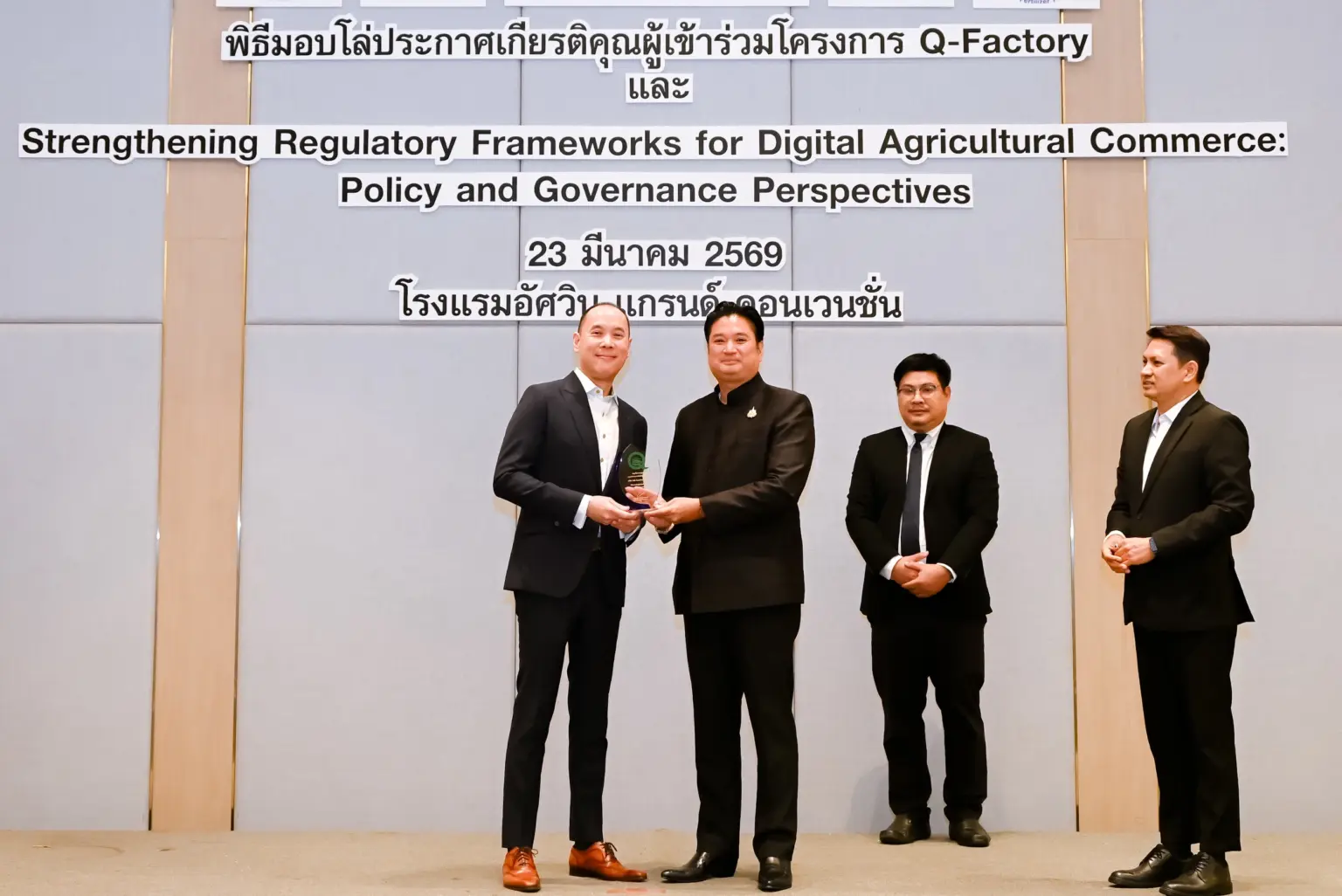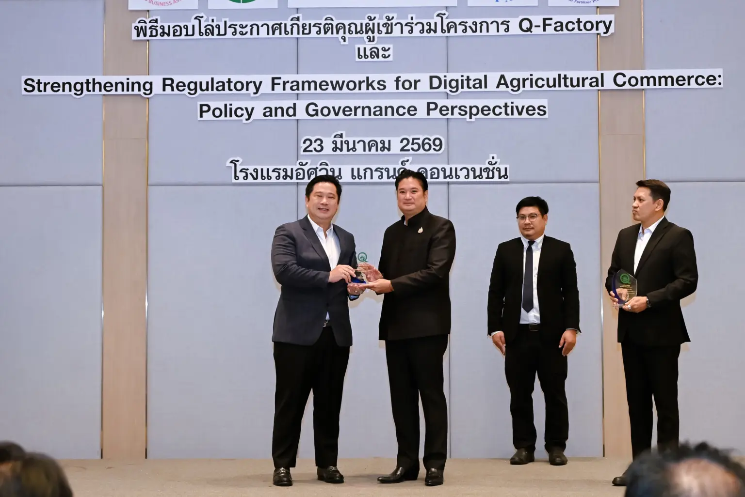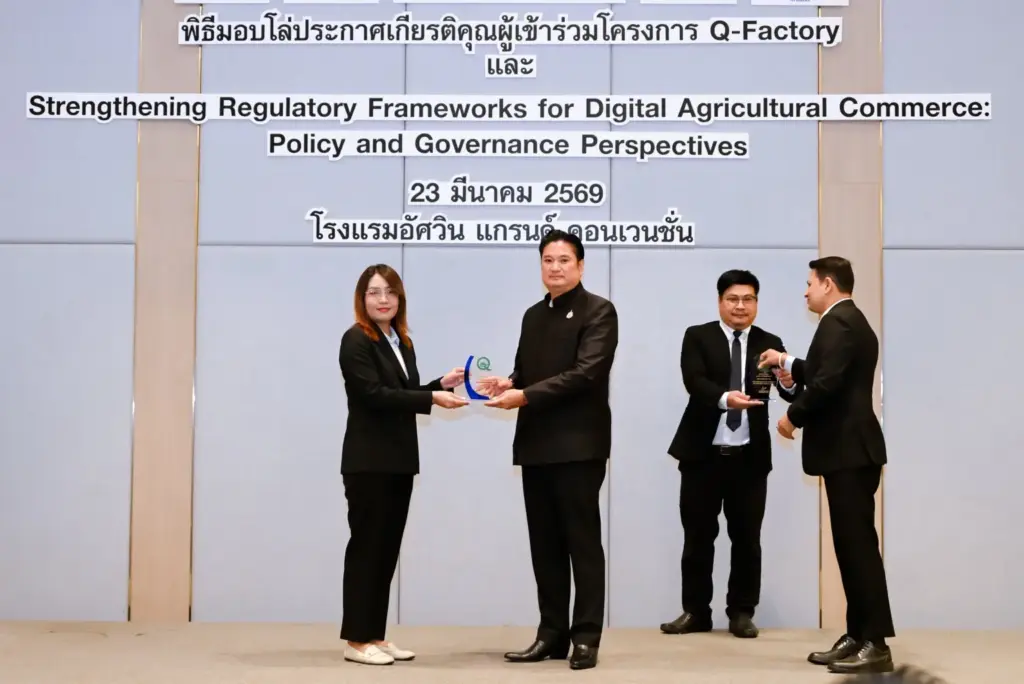 เมื่อวันที่ 23 มีนาคม 2569 นายรพีภัทร์ จันทรศรีวงศ์ อธิบดีกรมวิชาการเกษตร เป็นประธานเปิดการเสวนาเรื่อง “การเสริมสร้างกรอบการกำกับดูแลการค้าสินค้าเกษตรดิจิทัล : มุมมองเชิงนโยบายและหลักธรรมาภิบาล” พร้อมมอบโล่ประกาศเกียรติคุณแก่ผู้ประกอบการในโครงการ Q-FACTORY ประจำปี 2568 ณ โรงแรมอัศวิน แกรนด์ คอนเวนชั่น กรุงเทพมหานคร โดยมีผู้บริหารจากหน่วยงานภาครัฐ ภาคเอกชน และภาคีเครือข่ายที่เกี่ยวข้องเข้าร่วมอย่างคับคั่ง