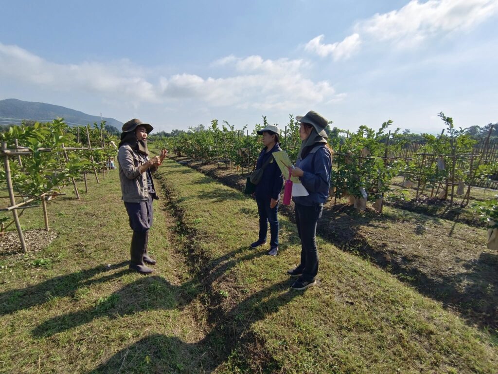 ข่าวประชาสัมพันธ์ ตรวจประเมิน GAP อ.แม่ทา จ.ลำพูน 12/08/2568 admin วันที่ 4 ธันวาคม พ.ศ. 2568 สำนักวิจัยและพัฒนาการเกษตร เขตที่1 เข้าตรวจประเมินการรับรองมาตรฐาน GAP พืชอาหาร มกษ.9001-2564 ซึ่งเป็นเกษตรกรผู้ปลูกไม้ผลและพืชผักแบบปลอดภัยในพื้นที่ อ.แม่ทา จ.ลำพูน โดยเกษตรกรมีความประสงค์ในการใช้ใบรับรองGAP ในการประกอบการจำหน่ายผลผลิตในประเทศ ซึ่งทีมผู้ตรวจประเมินได้มีการสุ่มตัวอย่างผลผลิตเพื่อวิเคราะห์สารพิษ และเชื้อจุลินทรีย์ตกค้างในผลผลิต เพื่อสร้างความมั่นใจแก่ผู้บริโภค รวมถึงได้มีการประชาสัมพันธ์และรณรงค์เรื่องการไม่เผาเศษวัสดุทางการเกษตร ในพื้นที่การทำเกษตร เพื่อเป็นการลดมลภาวะทางอากาศจากฝุ่นละอองขนาดเล็ก (PM 2.5) FacebookFacebookXTwitterLINELine