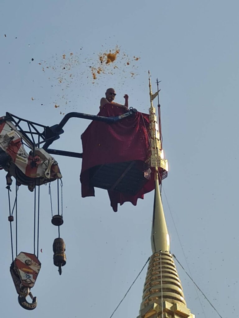 ข่าวประชาสัมพันธ์ พิธียกยอดฉัตร พระธาตุเจ้าศรีจอมทองในวันมาฆบูชา 03/04/2569 admin วันอังคารที่ 3 มีนาคม 2569 โดยมี นางสาวจงรัก อิ่มใจ ผู้อำนวยการสำนักวิจัยและพัฒนาการเกษตร เขตที่ 1 นางสาวประนอม ใจอ้าย ผู้เชี่ยวชาญ และคณะ เข้าร่วมพิธียกยอดฉัตร พระธาตุเจ้าศรีจอมทอง ในวันมาฆบูชา 2569 ตรงกับวันอังคารที่ 3 มีนาคม 2569 หนึ่งในวันสำคัญทางพระพุทธศาสนา เป็นวันที่พระพุทธเจ้าทรงแสดง “โอวาทปาติโมกข์” แก่พระสงฆ์ โดยมีหลักคำสอนสำคัญ คือ “ทำความดี ละเว้นความชั่ว ทำจิตใจให้บริสุทธิ์” เพื่อเป็นการสืบสานหลักธรรมหัวใจพระพุทธศาสนา หรือ “โอวาทปาติโมกข์” ได้แก่ “ทำความดี ละเว้นความชั่ว ทำจิตใจให้บริสุทธิ์” ณ วันพระธาตุศรีจอมทองวรวิหาร อำเภอจอมทอง จังหวัดเชียงใหม่ FacebookFacebookXTwitterLINELine