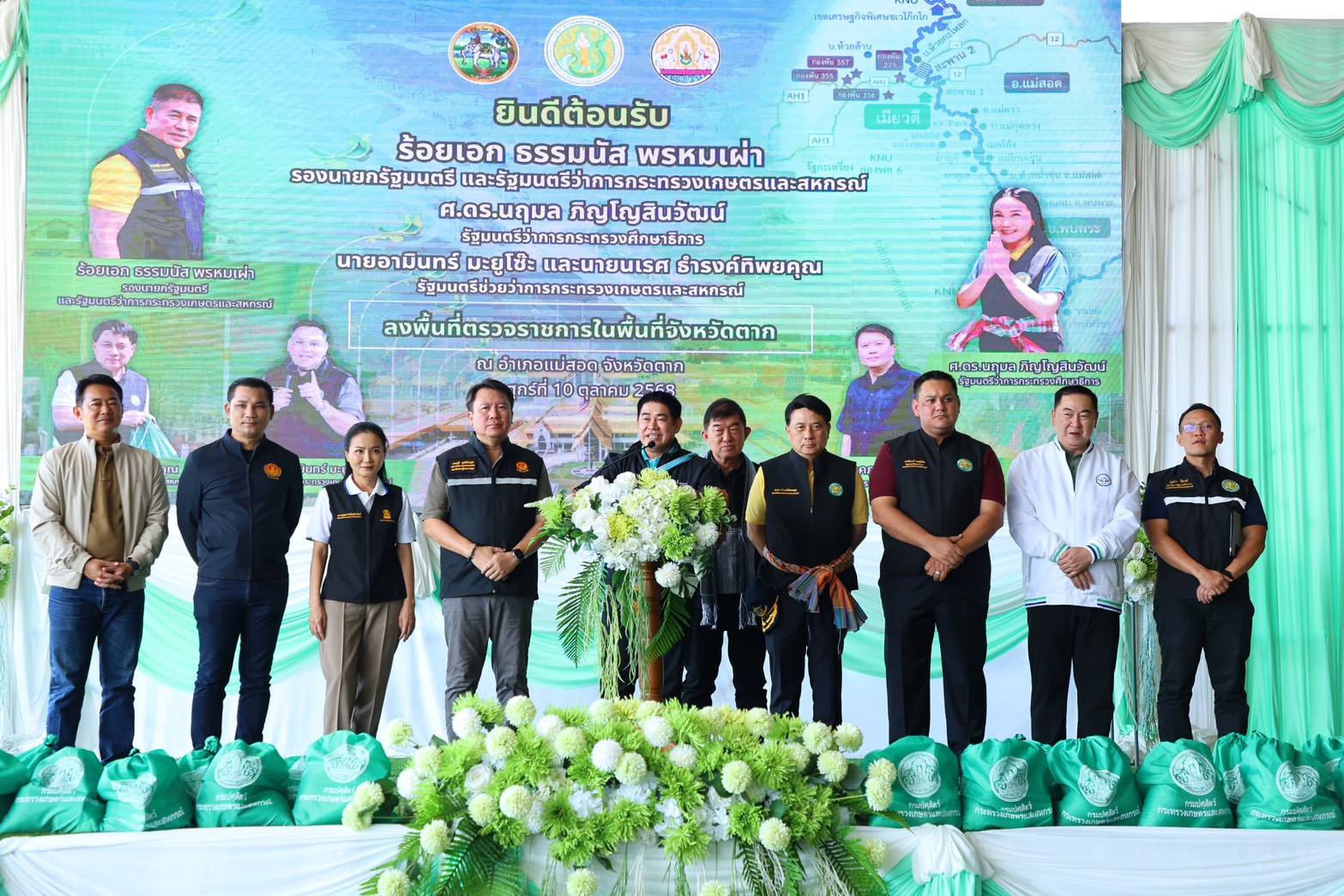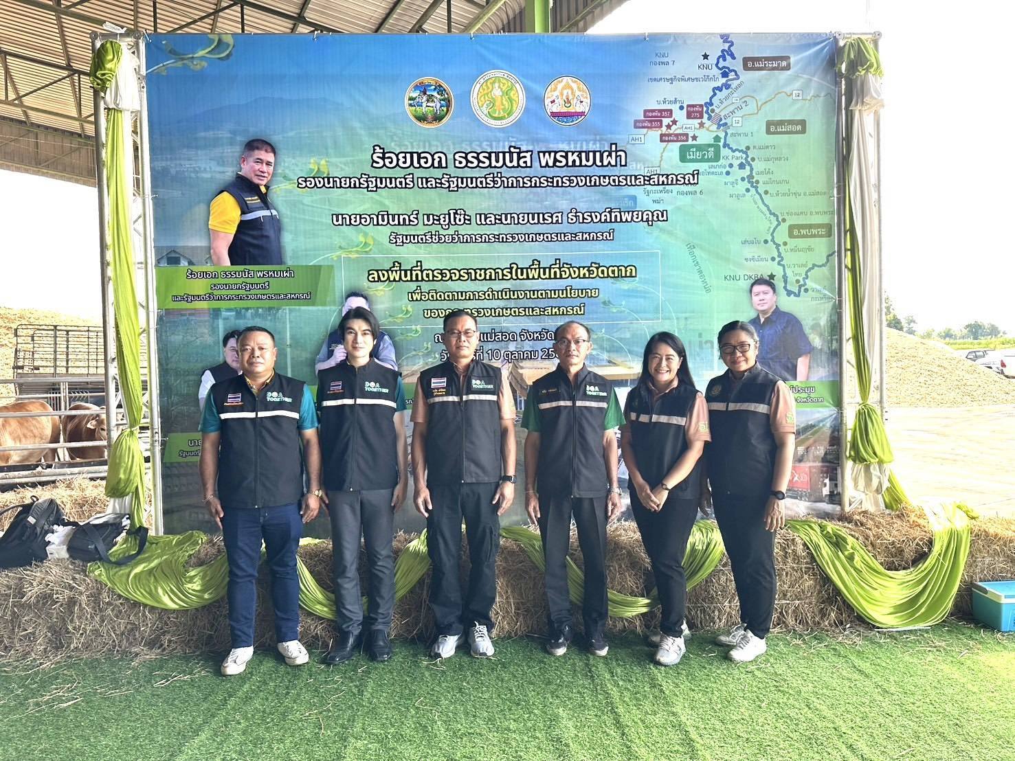 คณะผู้บริหารได้ลงพื้นที่ ณ สหกรณ์นิคมแม่สอด จำกัด ตำบลแม่กาษา และโรงเรียนบ้านแม่กุวิทยาคม ตำบลแม่กุ อำเภอแม่สอด จังหวัดตาก เพื่อรับฟังรายงานผลการดำเนินงานตามนโยบายของกระทรวงเกษตรและสหกรณ์ พร้อมมอบปัจจัยการผลิตให้แก่เกษตรกรในพื้นที่ และเน้นย้ำแนวนโยบายการปราบปรามการลักลอบนำเข้าสินค้าเกษตรผิดกฎหมาย ทั้งด้านพืช สัตว์ และประมง อย่างเด็ดขาด