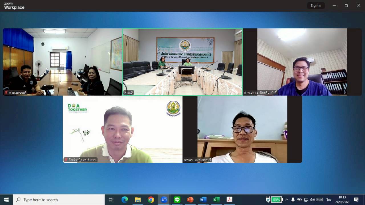 วันที่ 24 กันยายน 2568 ดร.อารดา มาสริ ผู้อำนวยการสำนักวิจัยและพัฒนาการเกษตรเขตที่ 5 มอบหมายให้นางอรัญญา บุญใส ผู้อำนวยการกลุ่มถ่ายทอดเทคโนโลยีและนายปิยนันท์ พวงจันทร์ นักวิชาการเกษตรชำนาญการ เป็นกรรมการในการประชุมคณะกรรมการรับรองมาตรฐานการปฏิบัติทางการเกษตรที่ดีสำหรับการทำนาเกลือทะเลและเกลือทะเลธรรมชาติ ครั้งที่ 1/2568 เพื่อรายงานผลการดำเนินงานการตรวจรับรอง GAP นาเกลือทะเล พร้อมทั้งพิจารณาให้การรับรองเกลือทะเลของจังหวัดเพชรบุรี จำนวน 1 ราย โดยมีนายเกรียงศักดิ์ ชาติปรีดี ผู้อำนวยการศูนย์วิจัยและพัฒนาการเกษตรปทุมธานีเป็นประธาน และศูนย์วิจัยและพัฒนาการเกษตรเพชรบุรีร่วมประชุมผ่านระบบออนไลน์ Zoom Meeting