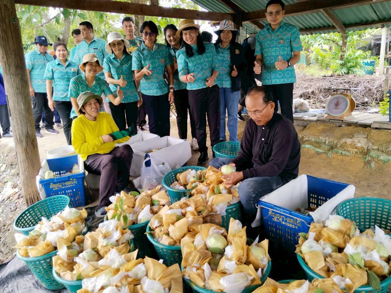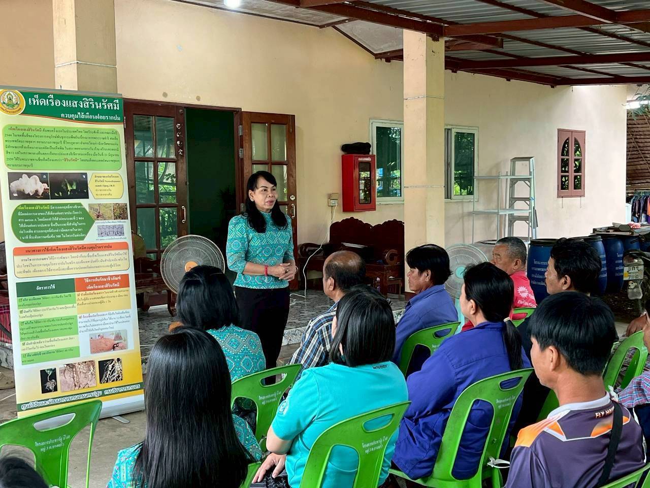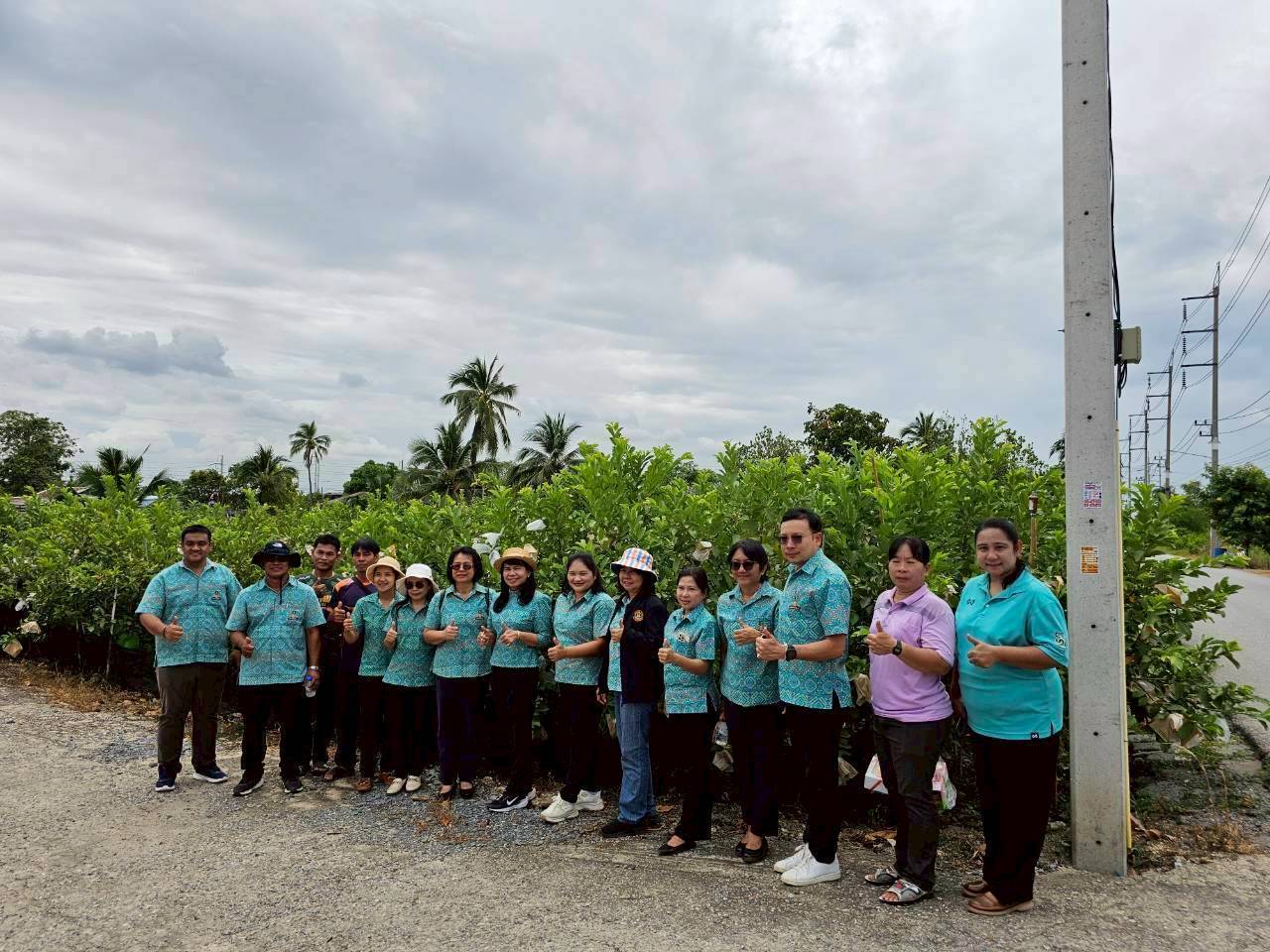วันที่ 26 กันยายน 2568 ดร.อารดา มาสริ ผู้อำนวยการสำนักวิจัยและพัฒนาการเกษตรเขตที่ 5 พร้อมด้วยคณะผู้บริหาร และเจ้าหน้าที่ ติดตามผลการดำเนินงานในพื้นที่รับผิดชอบศูนย์วิจัยและพัฒนาการเกษตรนครปฐม แปลงใหญ่ฝรั่งของคุณสุภาวดี ทองสมเพียร ตำบลบางแก้ว อำเภอนครชัยศรี จังหวัดนครปฐม พร้อมรับฟังการบรรยายการจัดการแปลงและแนะนำการใช้ชีวภัณฑ์ “เห็ดเรืองแสงสิรินรัศมี” ในการป้องกันกำจัดไส้เดือนฝอยรากปมในฝรั่งทำให้เกษตรกรสามารถแก้ปัญหาเรื่องต้นฝรั่งมีลักษณะไม่เจริญเติบโตและผลผลิตลดลงได้ เกษตรกรสามารถฟื้นฟูแปลงผลิตฝรั่ง โดยใช้เห็ดเรืองแสงสิรินรัศมีในแปลงฝรั่งที่ปลูกใหม่ด้วยการโรยก้นหลุมและใช้โรยรอบทรงพุ่มเมื่อฝรั่งอายุ 1 ปี ทำให้เพิ่มประสิทธิภาพการผลิตฝรั่งรากและต้นเจริญเติบโตดีกว่าไม่ใช้เห็ดเรืองแสงสิรินรัศมี ส่งผลให้ได้ผลผลิตสูง