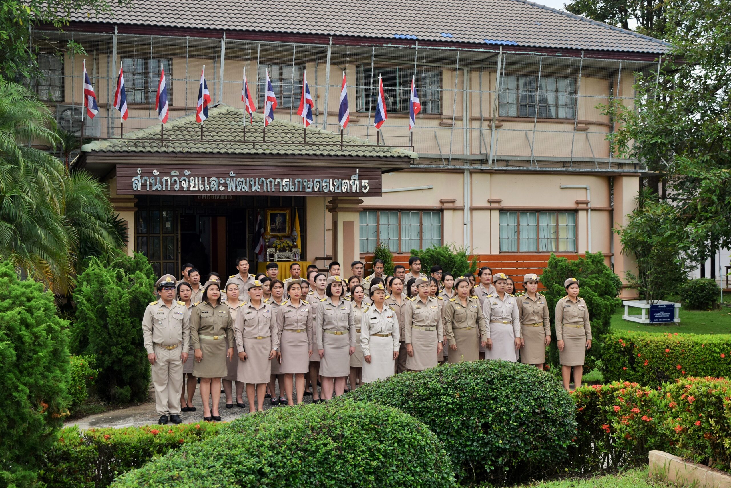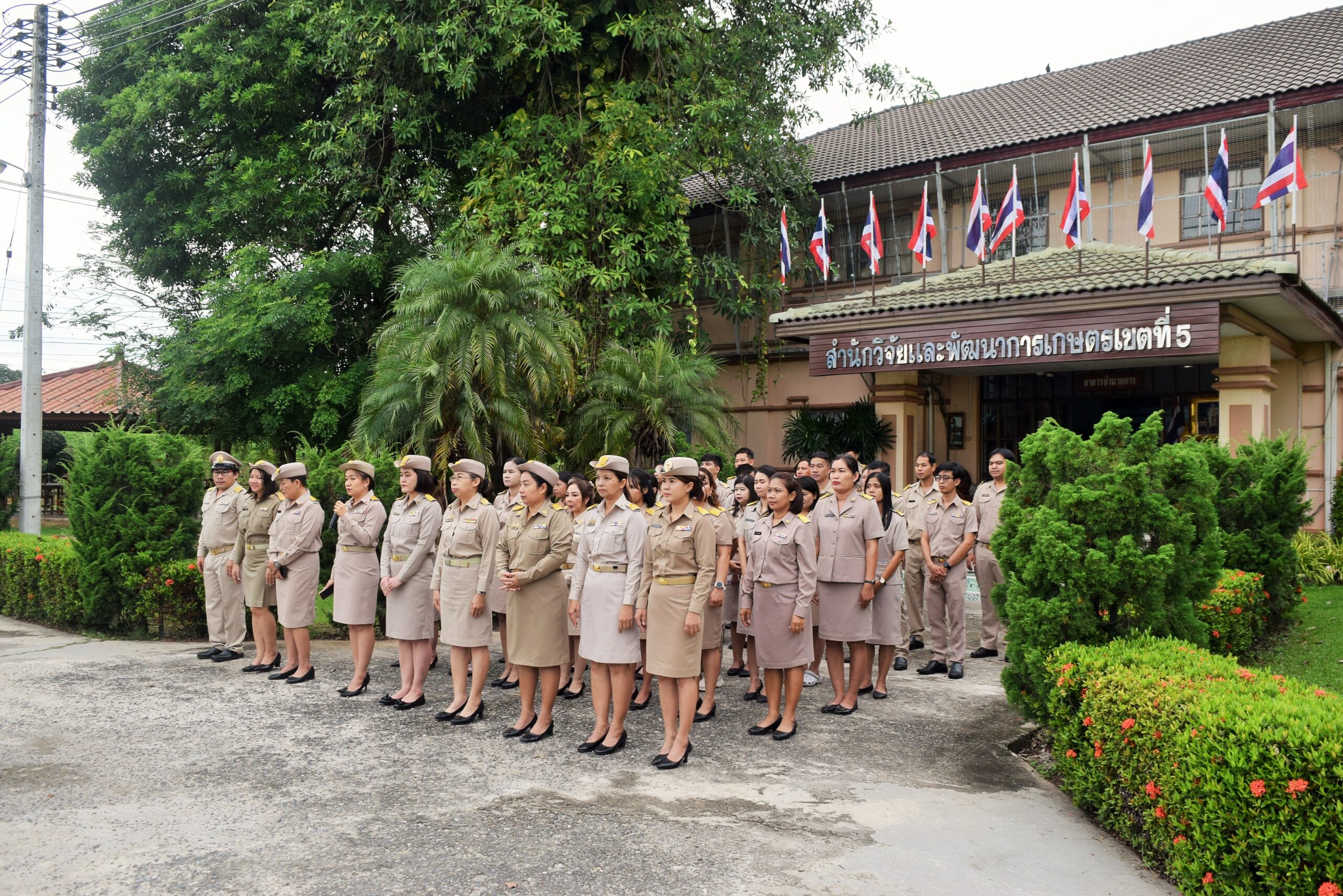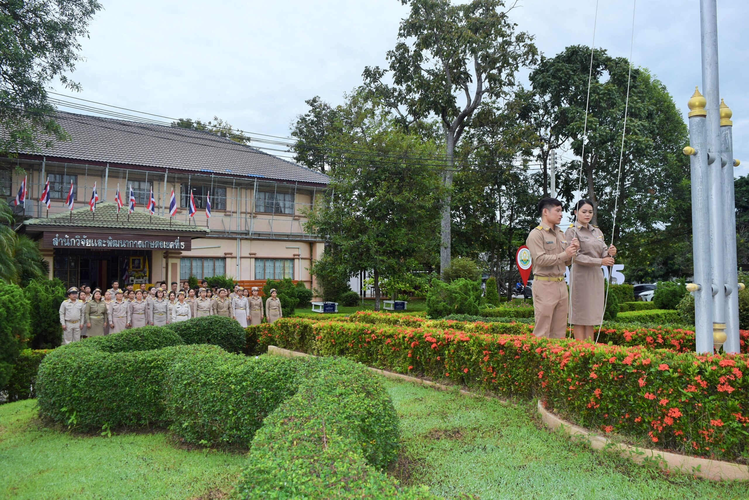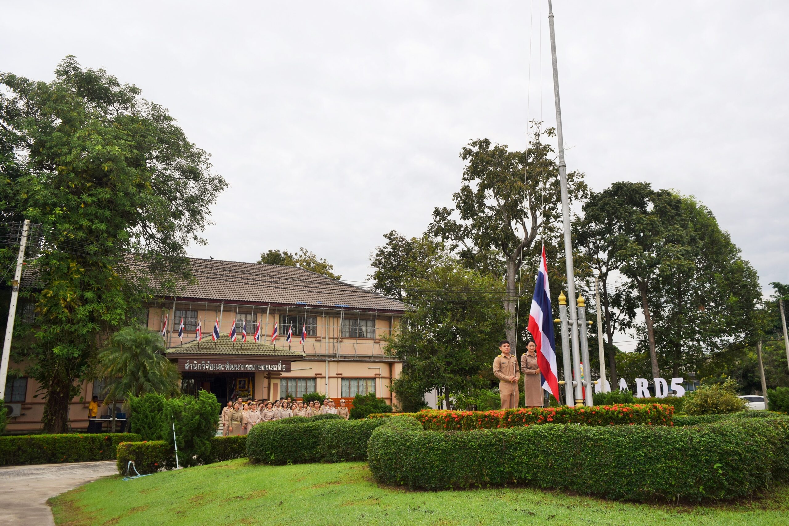 วันที่ 29 กันยายน 2568 ดร.อารดา มาสริ ผู้อำนวยการสำนักวิจัยและพัฒนาการเกษตรเขตที่ 5 มอบหมายให้ นางมณฑาทิพย์ อรุณวรากรณ์ นักวิทยาศาสตร์ชำนาญการ กลุ่มพัฒนาการตรวจสอบพืชและปัจจัยการผลิต เป็นประธานในพิธี พร้อมด้วยข้าราชการและเจ้าหน้าที่สำนักวิจัยและพัฒนาการเกษตรเขตที่ 5 จัดกิจกรรมเนื่องในวันพระราชทานธงชาติไทย 28 กันยายน (Thai National Flag Day) ประจำปี 2568 และร้องเพลงชาติไทย ณ บริเวณหน้าเสาธง ตึกอำนวยการ สำนักวิจัยและพัฒนาการเกษตรเขตที่ 5 อำเภอสรรพยา จังหวัดชัยนาท