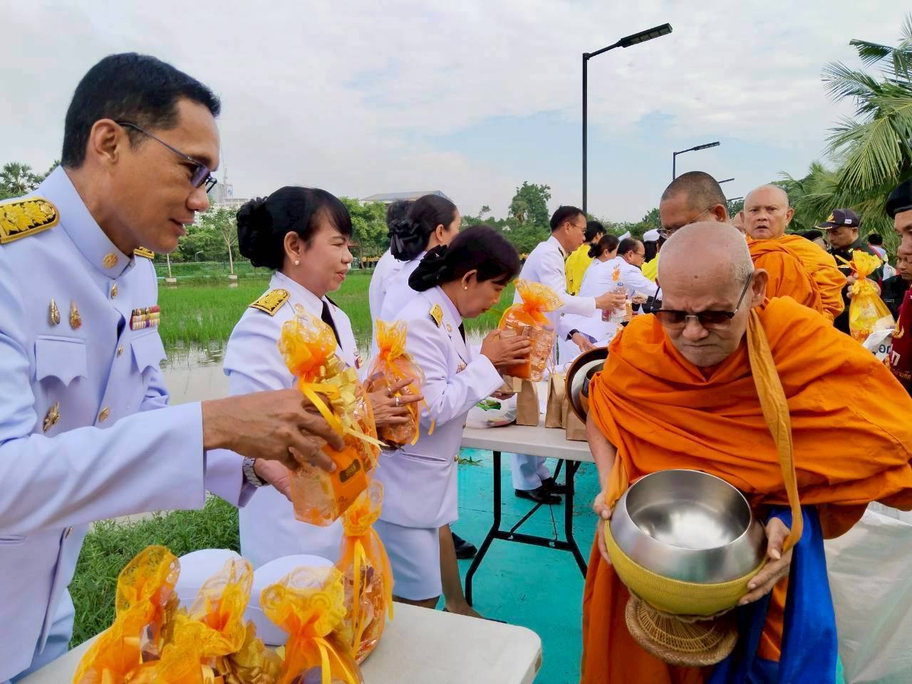 วันที่ 16 ตุลาคม 2568 ดร.อารดา มาสริ ผู้อำนวยการสำนักวิจัยและพัฒนาการเกษตรเขตที่ 5 พร้อมด้วยคณะผู้บริหาร และเจ้าหน้าที่กรมวิชาการเกษตร ร่วมกิจกรรมทำบุญตักบาตรพระสงฆ์ 9 รูป เพื่อถวายเป็นพระราชกุศล เนื่องในวันคล้ายวันสวรรคตพระบาทสมเด็จพระบรมชนกาธิเบศร มหาภูมิพลอดุลยเดชมหาราช บรมนาถบพิตร “วันนวมินทรมหาราช” 13 ตุลาคม 2568 พร้อมทั้งถวายเครื่องราชสักการะ และกล่าวคำน้อมรำลึกในพระมหากรุณาธิคุณ โดยมีนายรพีภัทร์ จันทรศรีวงศ์ อธิบดีกรมวิชาการเกษตร เป็นประธาน ณ สวนเฉลิมพระเกียรติ 55 พรรษา กรมวิชาการเกษตร กรุงเทพมหานคร