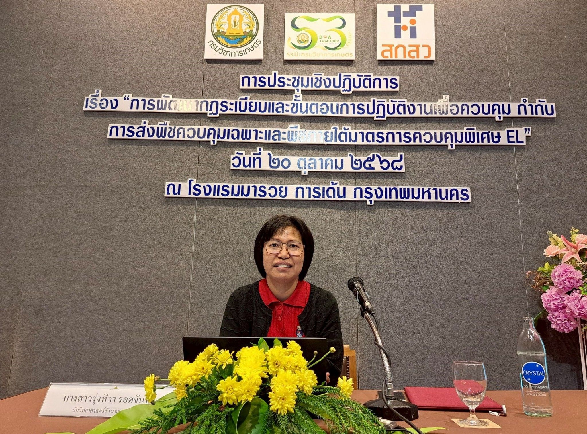 วันที่ 20 ตุลาคม 2568 ดร.อารดา มาสริ ผู้อำนวยการสำนักวิจัยและพัฒนาการเกษตรเขตที่ 5 มอบหมายให้ นายปิยะนันท์ พวงจันทร์ นักวิชาการเกษตรชำนาญการ พร้อมด้วย นางสาววรนิษฐา วงศ์คำภา นักวิชาการเกษตร กลุ่มถ่ายทอดเทคโนโลยี สำนักวิจัยและพัฒนาการเกษตรเขตที่ 5 ร่วมประชุมเชิงปฏิบัติการ เรื่องการพัฒนากฎระเบียบและขั้นตอนการปฏิบัติงานเพื่อควบคุมกำกับการส่งพืชควบคุมเฉพาะ และพืชภายใต้มาตรการควบคุมพิเศษ EL ซึ่งมีวัตถุประสงค์ เพื่อรวบรวมข้อคิดเห็นและข้อเสนอแนะการพัฒนากฎระเบียบหรือมาตรการควบคุม กำกับ การส่งพืชควบคุมเฉพาะ และพืชภายใต้มาตรการควบคุมพิเศษ EL ผ่านการระดมสมอง และร่วมกันอภิปรายให้ข้อเสนอแนะ รวบรวมข้อมูลให้ครอบคลุม ครบถ้วน ทุกประเด็น สำหรับนำไปพัฒนาเป็นข้อเสนอเชิงนโยบายต่อไป โดยมี นางสาวธิดากุญ แสนอุดม ผู้อำนวยการกองพัฒนาระบบและรับรองมาตรฐานสินค้าพืช เป็นประธาน ณ ห้องประชุม Balloon C โรงแรมมารวย การ์เด้น กรุงเทพมหานคร