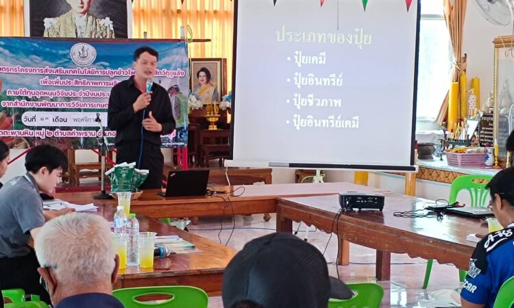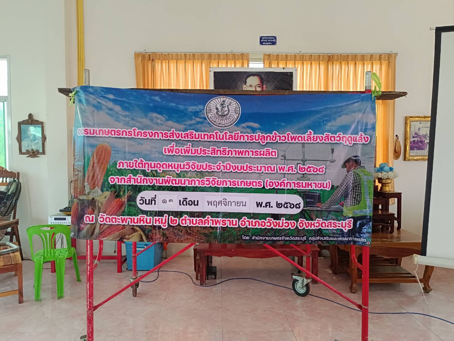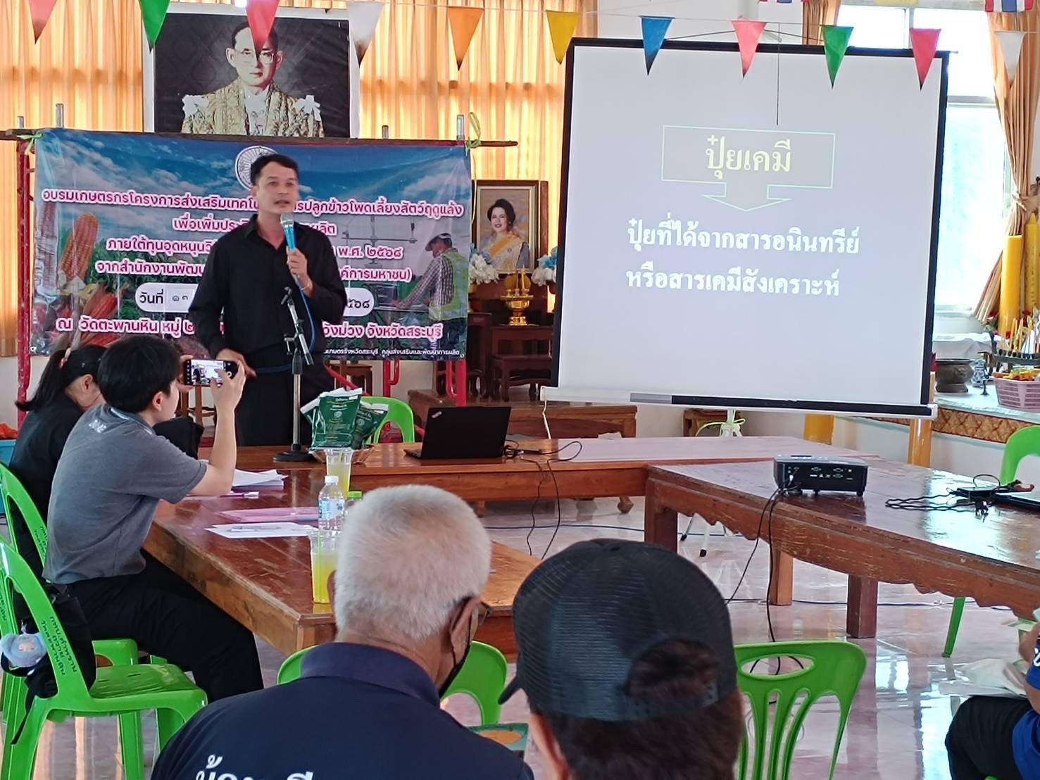 วันที่ 13 พฤศจิกายน 2568 ดร.อารดา มาสริ ผู้อำนวยการสำนักวิจัยและพัฒนาการเกษตรเขตที่ 5 มอบหมายให้ ว่าที่ร.ต.พัฐพงศ์ มาเกตุ นักวิชาการเกษตร กลุ่มวิชาการ สำนักวิจัยและพัฒนาการเกษตรเขตที่ 5 เป็นวิทยากรในหัวข้อ ”การใช้ปุ๋ยชีวภาพพีจีพีอาร์-วัน ในการเพิ่มประสิทธิภาพการผลิตข้าวโพดเลี้ยงสัตว์“ ให้กับเกษตรกรในโครงการส่งเสริมเทคโนโลยีการปลูกข้าวโพดเลี้ยงสัตว์เพื่อเพิ่มประสิทธิภาพการผลิต จำนวน 25 ราย ณ วัดตะพานหิน หมู่ที่ 2 ตำบลคำพราน อำเภอวังม่วง จังหวัดสระบุรี