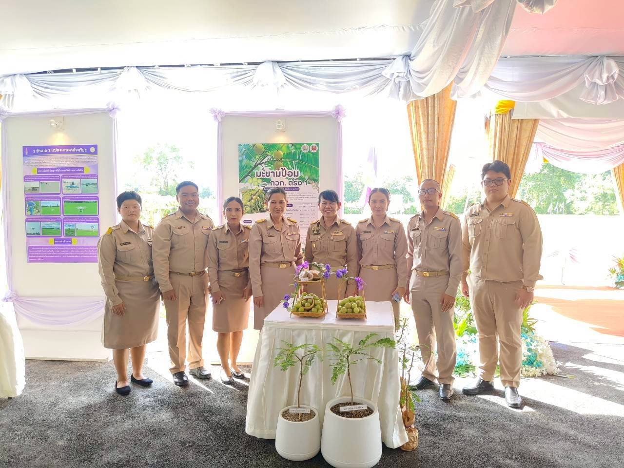 วันที่ 14 พฤศจิกายน 2568 นางวิลาวัณย์ ใคร่ครวญ รองอธิบดีกรมวิชาการเกษตร นายประภาส ทรงหงษา ผู้อำนวยการกองประสานงานโครงการอันเนื่องมาจากพระราชดำริ นางอารดา มาสริ ผู้อำนวยการสำนักวิจัยและพัฒนาการเกษตรเขตที่ 5 พร้อมด้วยข้าราชการ และเจ้าหน้าที่ ร่วมรับเสด็จ พลเอกหญิง สมเด็จพระกนิษฐาธิราชเจ้า กรมสมเด็จพระเทพรัตนราชสุดาฯ สยามบรมราชกุมารี เสด็จพระราชดำเนินเป็นการส่วนพระองค์ ทอดพระเนตรการเกี่ยวข้าว ณ แปลงสาธิตการเกษตรโรงเรียนนายร้อยพระจุลจอมเกล้า จังหวัดนครนายก ในการนี้กรมวิชาการเกษตร ร่วมกิจกรรมเกี่ยวข้าว จัดนิทรรศการ และถวายรายงาน เรื่อง มะขามป้อม กวก. ตรัง 1 ซึ่งได้รับรองจากกรมวิชาการเกษตรเป็นพันธุ์แนะนำ เมื่อวันที่ 26 สิงหาคม 2568 เหมาะสำหรับปลูกในพื้นที่ดินร่วนที่มีความอุดมสมบูรณ์ อุณหภูมิ 27-33 องศาเซลเซียส ความชื้นสัมพัทธ์ 50-80 เปอร์เซ็นต์ และปริมาณน้ำฝน 1,100-2,000 มิลลิเมตรต่อปี มีลักษณะเด่น รสชาติฝาดน้อย วิตามินซีสูง ผลขนาดใหญ่มีเนื้อเยอะ พร้อมนี้ ศวพ.ปทุมธานีได้ดำเนินการปลูกผักบนคันนา 25 ชนิด