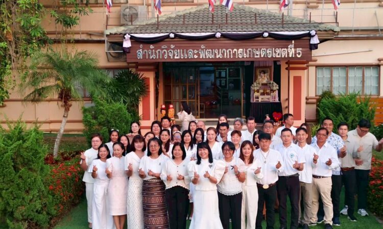 วันที่ 25 ธันวาคม 2568 ดร.อารดา มาสริ ผู้อำนวยการสำนักวิจัยและพัฒนาการเกษตรเขตที่ 5 พร้อมด้วยคณะผู้บริหาร ข้าราชการ พนักงาน สำนักวิจัยและพัฒนาการเกษตรเขตที่ 5 ร่วมทำบุญตักบาตรถวายภัตตาหารเช้า และทำบุญตักบาตรข้าวสารอาหารแห้ง แด่พระสงฆ์ จำนวน 9 รูป เนื่องในวันขึ้นปีใหม่ พุทธศักราช 2569 ณ บริเวณหน้าอาคารอำนวยการ สำนักวิจัยและพัฒนาการเกษตรเขตที่ 5 อำเภอสรรพยา จังหวัดชัยนาท