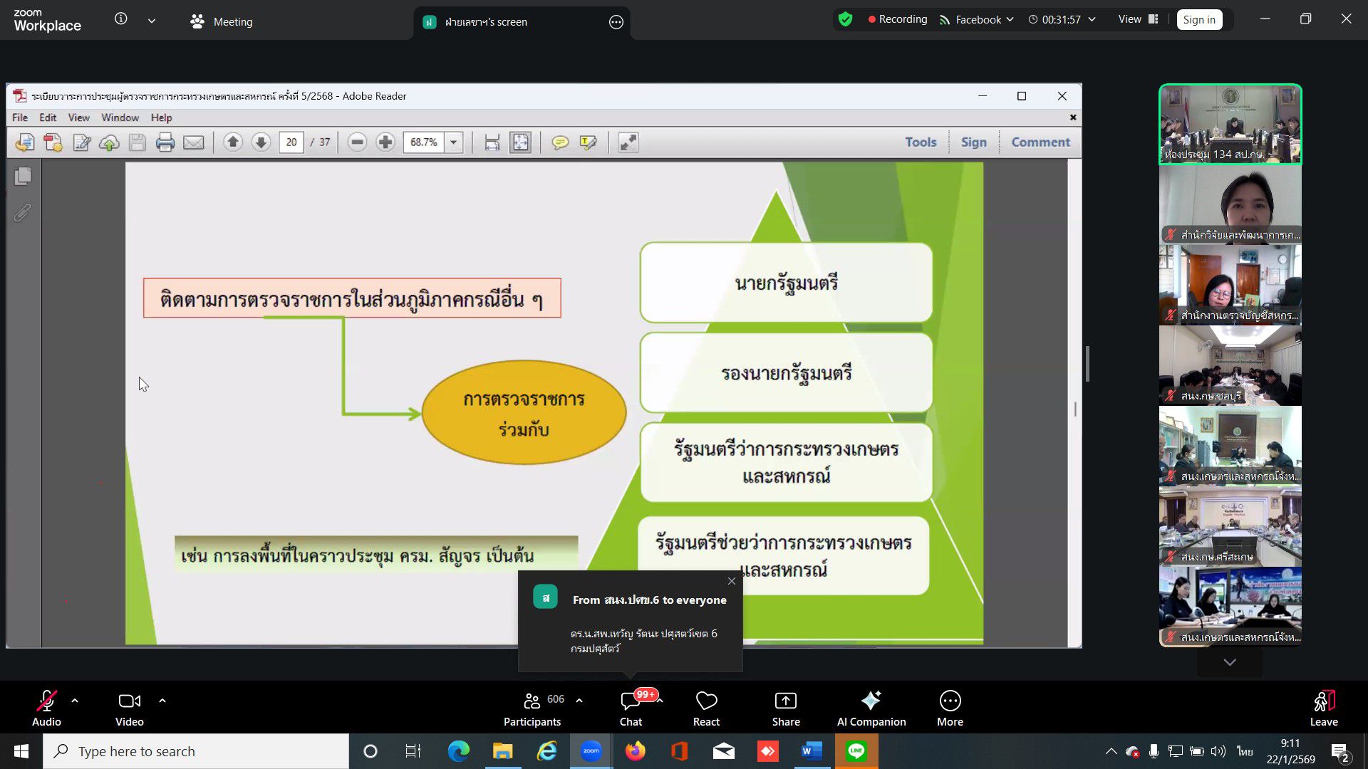 วันที่ 22 มกราคม 2569 ดร.อารดา มาสริ ผู้อำนวยการสำนักวิจัยและพัฒนาการเกษตรเขตที่ 5 มอบหมายให้นางสาววารีรัตน์ สมประทุม ผู้อำนวยการกลุ่มวิชาการ นายวีระพงษ์ เย็นอ่วม ผู้อำนวยการกลุ่มควบคุมตามพระราชบัญญัติ นางสาวนิศาชล แก้วจันทร์ นักวิชาการเกษตรปฏิบัติการ กลุ่มประสานและบริหารนโยบาย และนางสาวนันทนา คงนิล นักวิชาการเกษตร กลุ่มถ่ายทอดเทคโนโลยี เข้าร่วมประชุมชี้แจงแนวทางการตรวจราชการของผู้ตรวจราชการกระทรวงเกษตรและสหกรณ์ ประจำปีงบประมาณ พ.ศ. 2569 โดยมีนางสาวอิงอร ปัญญากิจ ผู้ตรวจกระทรวงเกษตรและสหกรณ์ เป็นประธาน ณ ห้องประชุมกระทรวงเกษตรและสหกรณ์ และผ่านระบบ zoom meeting ณ สำนักวิจัยและพัฒนาการเกษตรเขตที่ 5