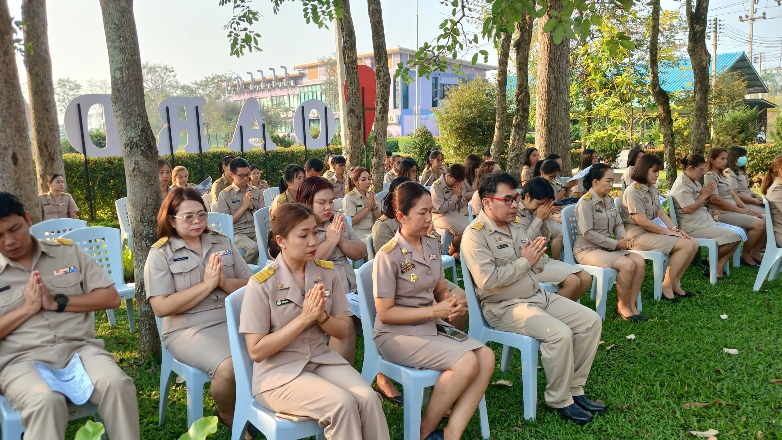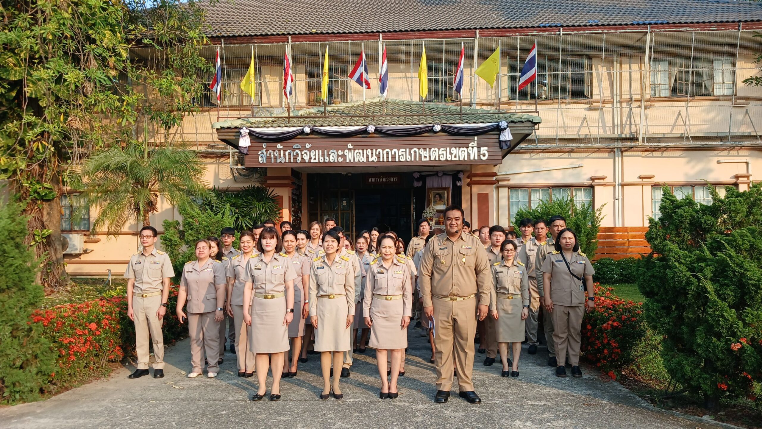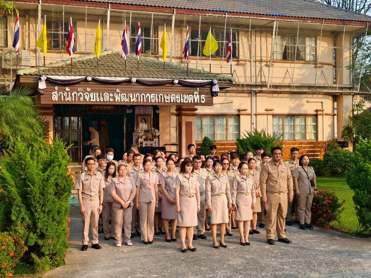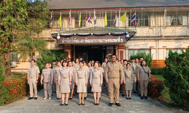 วันที่ 16 กุมภาพันธ์ 2569 เวลา 08.00 น. ดร.อารดา มาสริ ผู้อำนวยการสำนักวิจัยและพัฒนาการเกษตรเขตที่ 5 มอบหมายให้นายวีระพงษ์ เย็นอ่วม ผู้อำนวยการกลุ่มควบคุมตามพระราชบัญญัติ เป็นผู้นำจัดกิจกรรมทำความดี และบันทึกบุญพัฒนาจิตให้ดี โดยบุคลากร สวพ.5 แต่งกายด้วยชุดเครื่องแบบราชการ โดยพร้อมเพรียงกัน ร่วมกิจกรรมเคารพธงชาติและร้องเพลงชาติ ในเวลา 08.00 น. เพื่อให้บุคลากรมีจิตสำนึกในการรักชาติ ศาสนา และพระมหากษัตริย์ ต่อด้วยการสวดมนต์บทพระมหาจักรพรรดิ์ เพื่อให้บุคลากรได้พัฒนาและฝึกจิตให้ดี สร้างเสริมพลังบวก รับสิ่งดี ๆ เริ่มจากภายใน มีสมาธิ ปัญญา ในการทำงาน เป็นการพัฒนาบุคลากรของสวพ.5 ให้เป็นคนมีคุณภาพ มีคุณธรรม ตามมาตรฐานจริยธรรม ในโอกาสนี้ได้ให้บุคลากร เขียนป้ายแสดงความคาดหวังหรือสิ่งที่อยากให้หน่วยงานพัฒนาเพื่อเป็น สำนักงานในฝัน (my dream office) ของบุคลากร