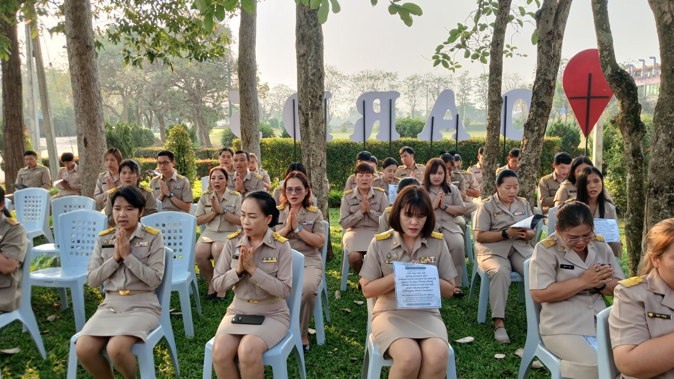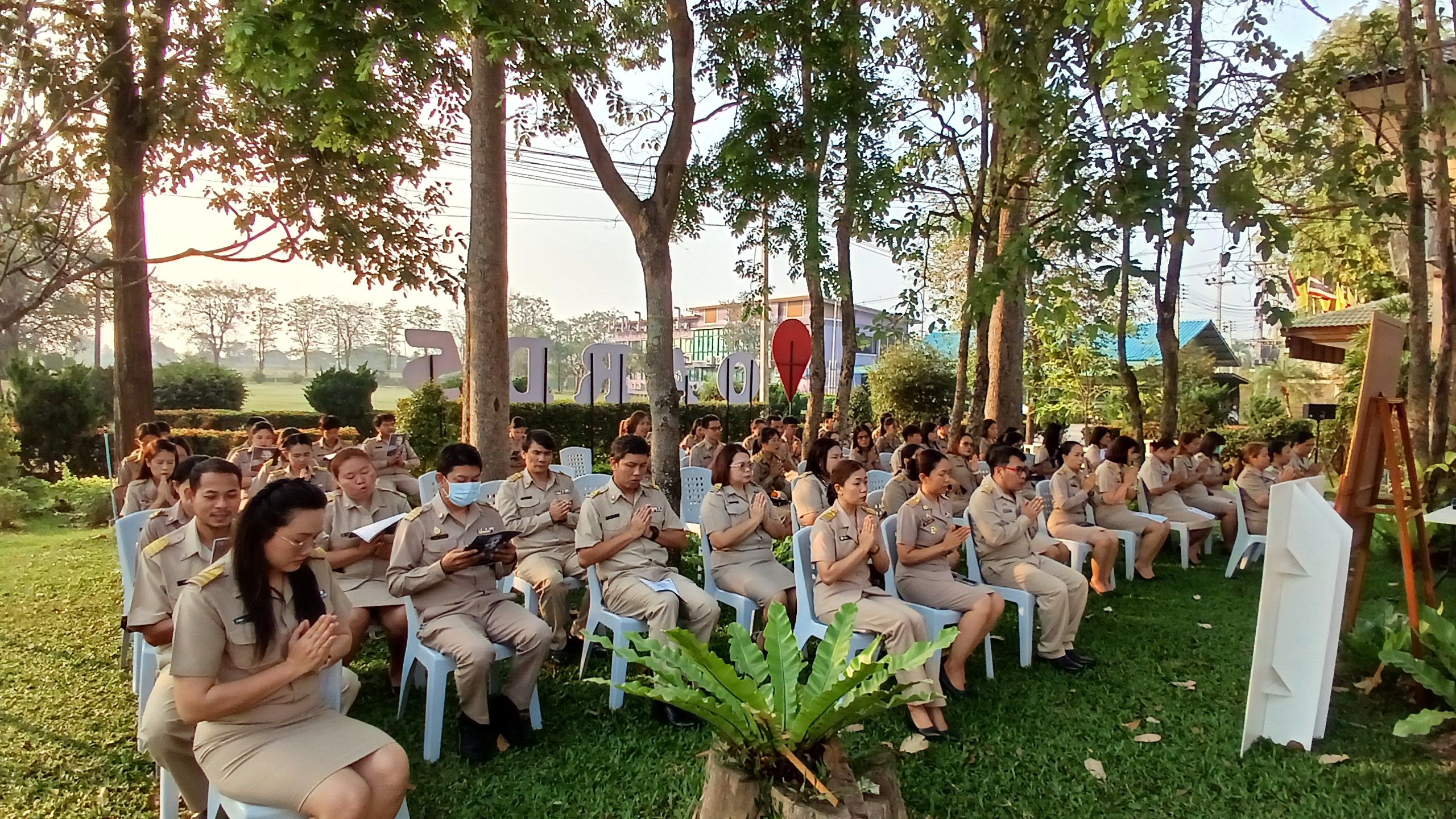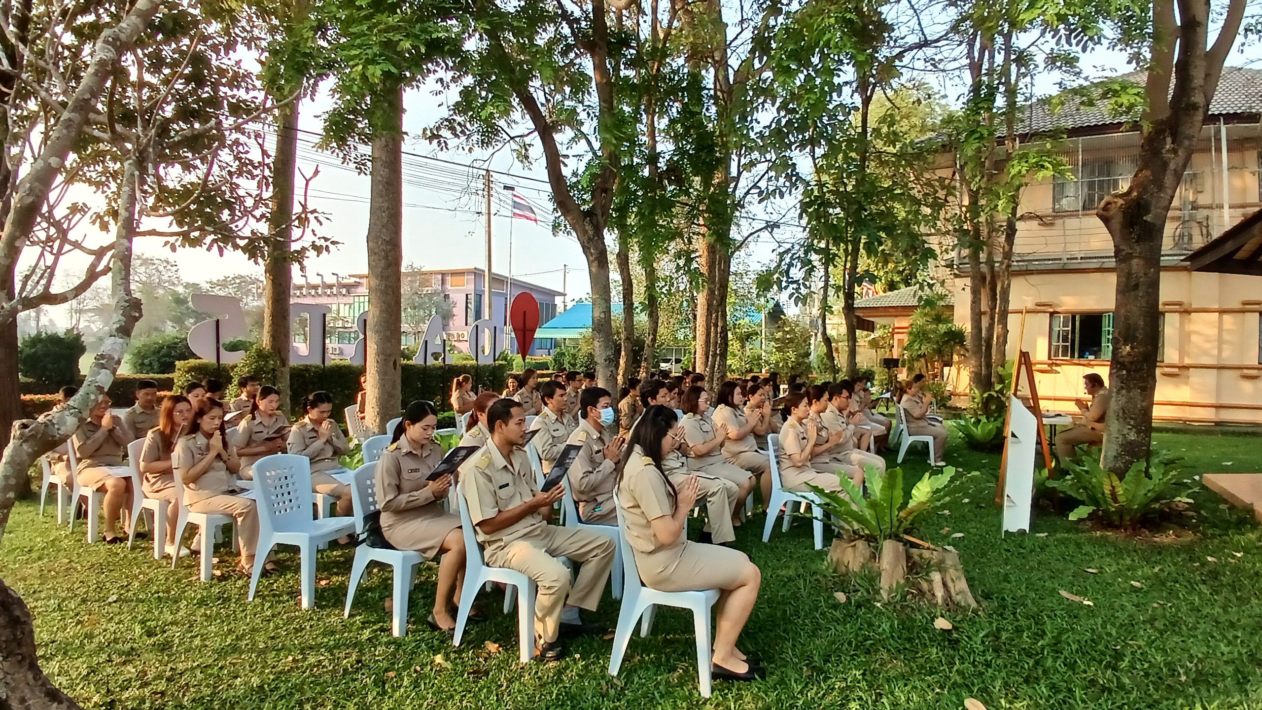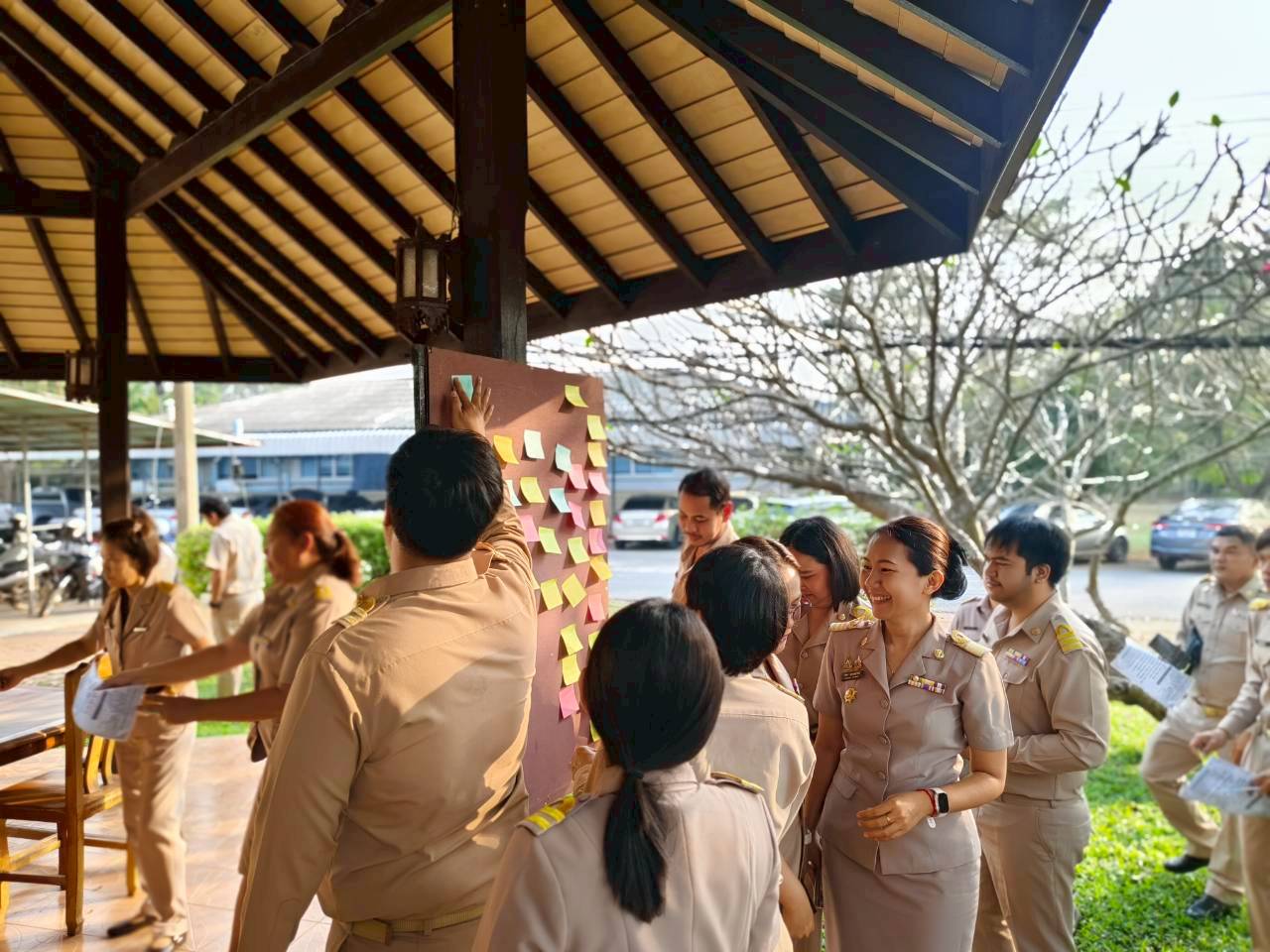 วันที่ 16 กุมภาพันธ์ 2569 เวลา 08.00 น. ดร.อารดา มาสริ ผู้อำนวยการสำนักวิจัยและพัฒนาการเกษตรเขตที่ 5 มอบหมายให้นายวีระพงษ์ เย็นอ่วม ผู้อำนวยการกลุ่มควบคุมตามพระราชบัญญัติ เป็นผู้นำจัดกิจกรรมทำความดี และบันทึกบุญพัฒนาจิตให้ดี โดยบุคลากร สวพ.5 แต่งกายด้วยชุดเครื่องแบบราชการ โดยพร้อมเพรียงกัน ร่วมกิจกรรมเคารพธงชาติและร้องเพลงชาติ ในเวลา 08.00 น. เพื่อให้บุคลากรมีจิตสำนึกในการรักชาติ ศาสนา และพระมหากษัตริย์ ต่อด้วยการสวดมนต์บทพระมหาจักรพรรดิ์ เพื่อให้บุคลากรได้พัฒนาและฝึกจิตให้ดี สร้างเสริมพลังบวก รับสิ่งดี ๆ เริ่มจากภายใน มีสมาธิ ปัญญา ในการทำงาน เป็นการพัฒนาบุคลากรของสวพ.5 ให้เป็นคนมีคุณภาพ มีคุณธรรม ตามมาตรฐานจริยธรรม ในโอกาสนี้ได้ให้บุคลากร เขียนป้ายแสดงความคาดหวังหรือสิ่งที่อยากให้หน่วยงานพัฒนาเพื่อเป็น สำนักงานในฝัน (my dream office) ของบุคลากร
