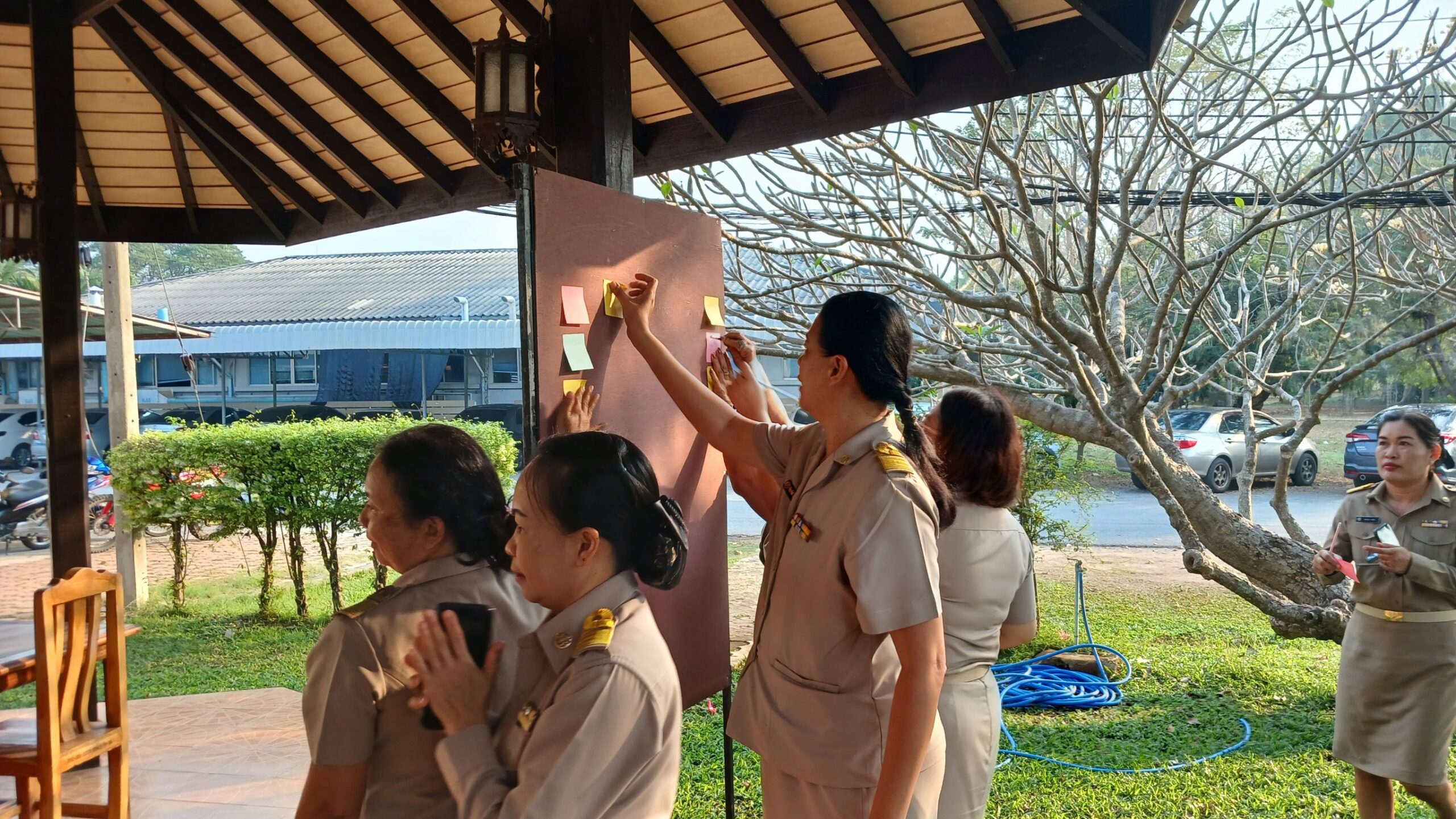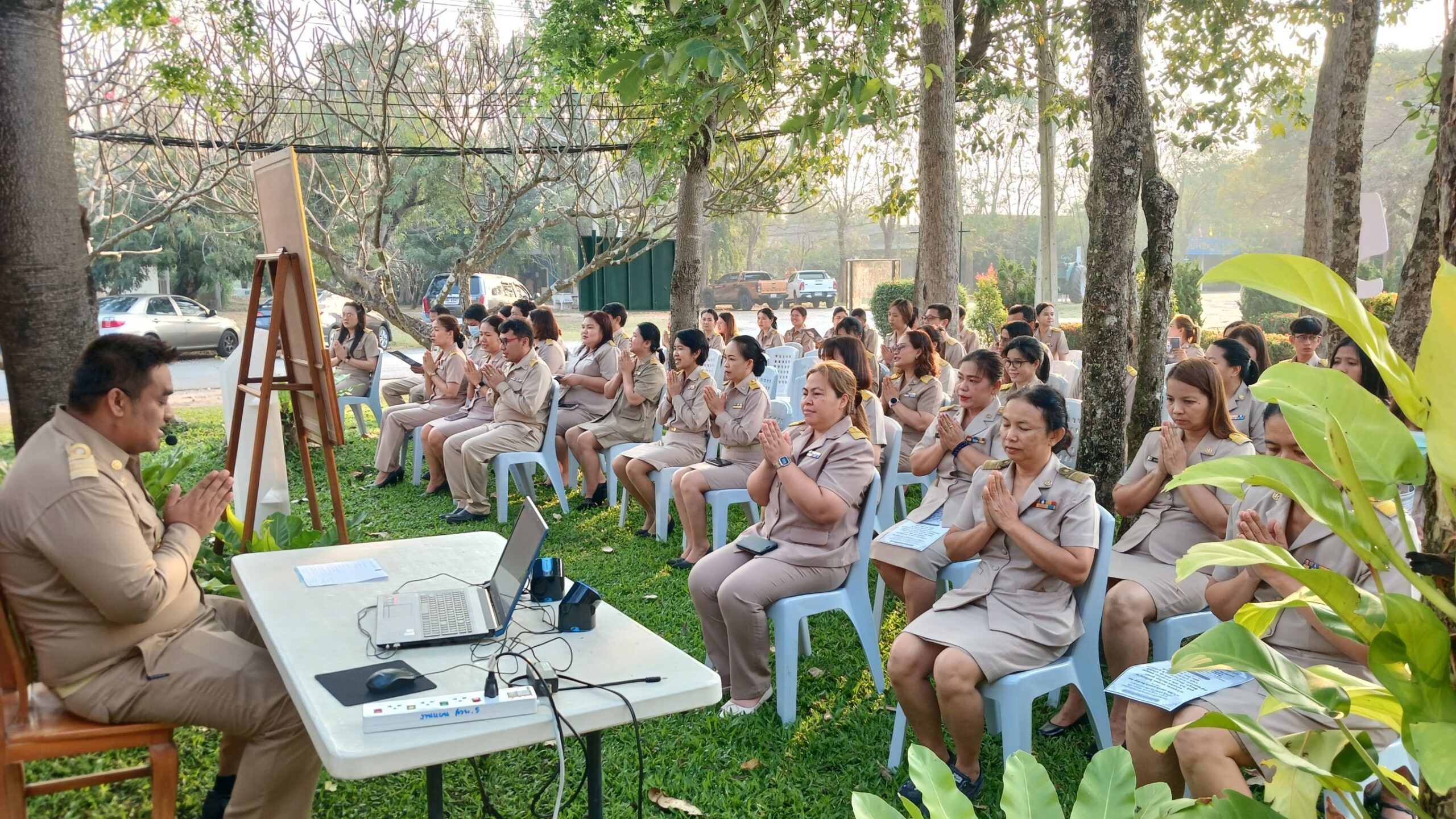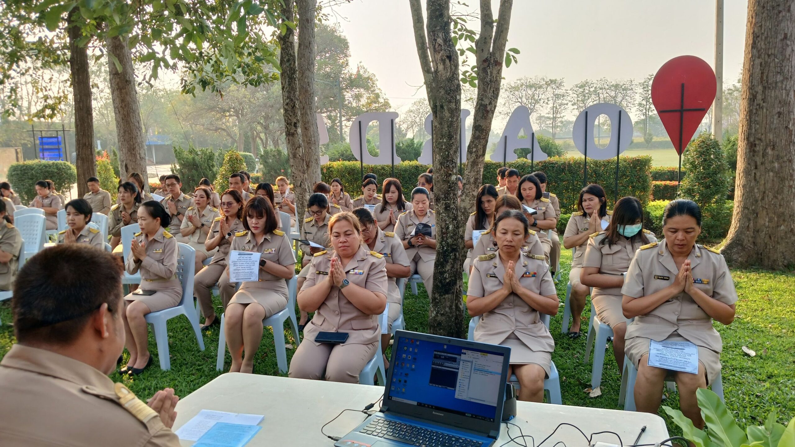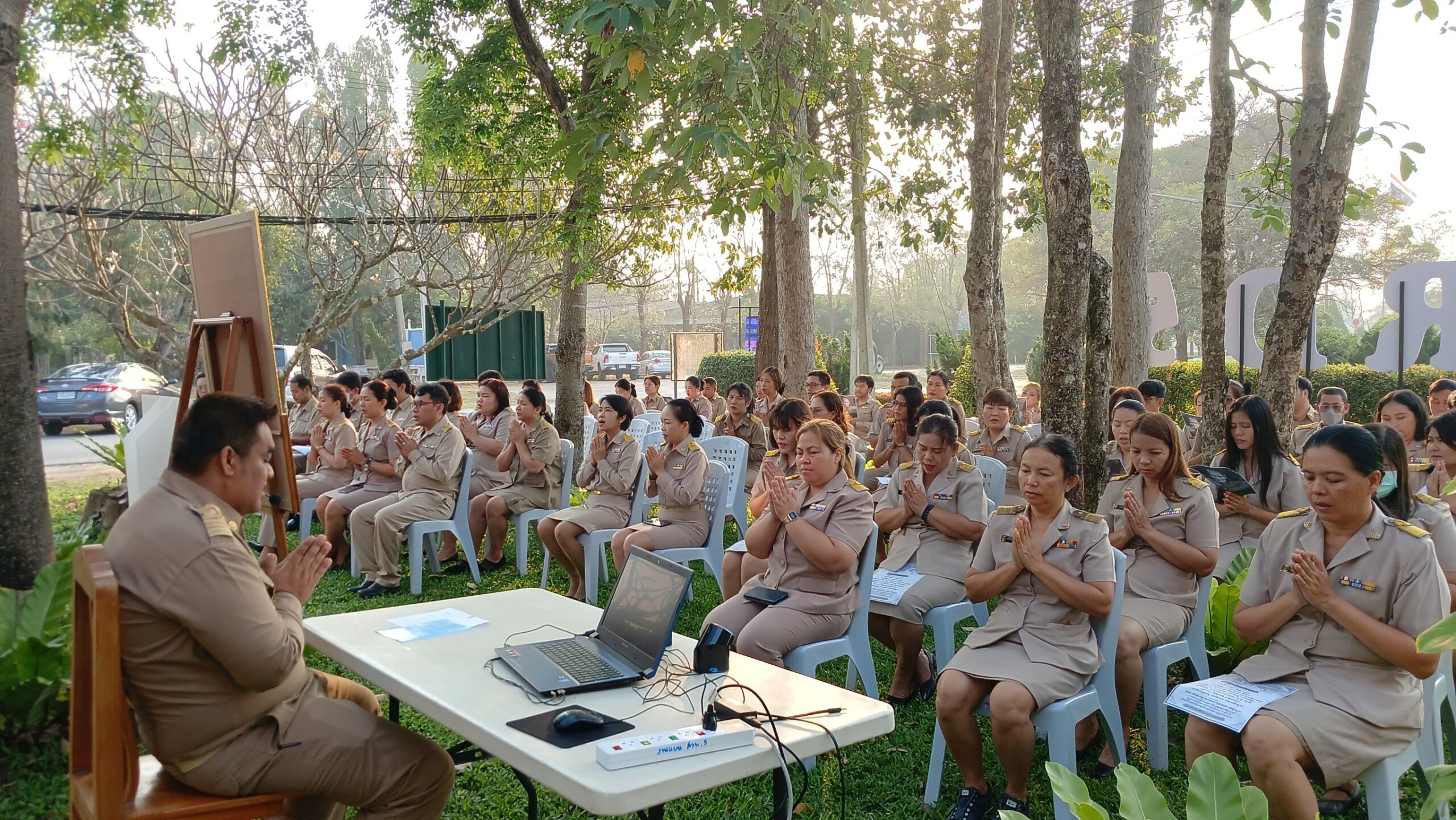 วันที่ 16 กุมภาพันธ์ 2569 เวลา 08.00 น. ดร.อารดา มาสริ ผู้อำนวยการสำนักวิจัยและพัฒนาการเกษตรเขตที่ 5 มอบหมายให้นายวีระพงษ์ เย็นอ่วม ผู้อำนวยการกลุ่มควบคุมตามพระราชบัญญัติ เป็นผู้นำจัดกิจกรรมทำความดี และบันทึกบุญพัฒนาจิตให้ดี โดยบุคลากร สวพ.5 แต่งกายด้วยชุดเครื่องแบบราชการ โดยพร้อมเพรียงกัน ร่วมกิจกรรมเคารพธงชาติและร้องเพลงชาติ ในเวลา 08.00 น. เพื่อให้บุคลากรมีจิตสำนึกในการรักชาติ ศาสนา และพระมหากษัตริย์ ต่อด้วยการสวดมนต์บทพระมหาจักรพรรดิ์ เพื่อให้บุคลากรได้พัฒนาและฝึกจิตให้ดี สร้างเสริมพลังบวก รับสิ่งดี ๆ เริ่มจากภายใน มีสมาธิ ปัญญา ในการทำงาน เป็นการพัฒนาบุคลากรของสวพ.5 ให้เป็นคนมีคุณภาพ มีคุณธรรม ตามมาตรฐานจริยธรรม ในโอกาสนี้ได้ให้บุคลากร เขียนป้ายแสดงความคาดหวังหรือสิ่งที่อยากให้หน่วยงานพัฒนาเพื่อเป็น สำนักงานในฝัน (my dream office) ของบุคลากร