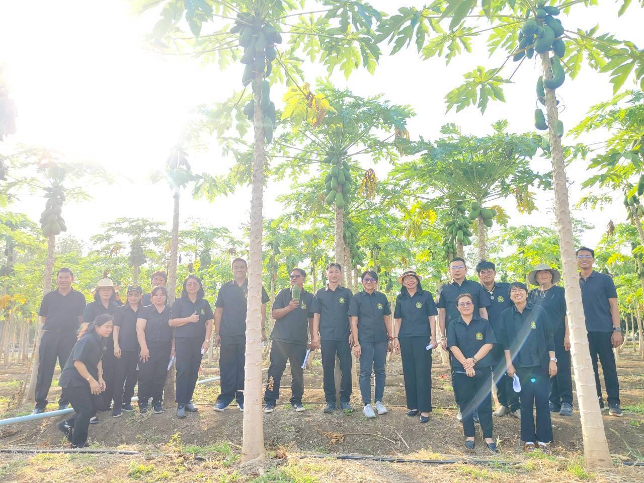 วันที่19 กุมภาพันธ์ 2569 ดร.อารดา มาสริ ผู้อำนวยการสำนักวิจัยและพัฒนาการเกษตรเขตที่ 5 พร้อมด้วยคณะผู้บริหาร และเจ้าหน้าที่ ติดตามงาน และเยี่ยมชมศูนย์วิจัยและพัฒนาการเกษตรกาญจนบุรี ตามโครงการ ศูนย์น่าอยู่ คู่ผลงาน ผสานความสวยงาม ปี 2569 ในการนี้ ศวพ.กาญจนบุรีได้นำเสนอผลงานในภาพรวม ตามภารกิจของศูนย์ ประกอบด้วย การขอรับรองพันธุ์แนะนำหน่อไม้ฝรั่งและกระเจี๊ยบเขียว งานวิจัย การผลิตท่อนพันธุ์ต้านทานโรคใบด่างมันสำปะหลัง พันธุ์ อิทธิ 1 2 และ 3 แบบเร่งรัด ผลงานด้านบริการ งานบูรณาการความร่วมมือกับหน่วยงาน กิจกรรมเชื่อมความสามัคคี ผลงานที่ได้รับรางวัลของหน่วยงานและบุคลากร พร้อมนี้ ได้เยี่ยมชมการปรับภูมิทัศน์ของศูนย์ ห้องปฏิบัติงานกลุ่มงานต่างๆ และแปลงวิจัยหน่อไม้ฝรั่ง อ้อย มันสำปะหลัง การผลิตชีวภัณฑ์ และงานโครงการอนุรักษ์พันธุกรรมพืช ณ ศูนย์วิจัยและพัฒนาการเกษตรกาญจนบุรี จังหวัดกาญจนบุรี