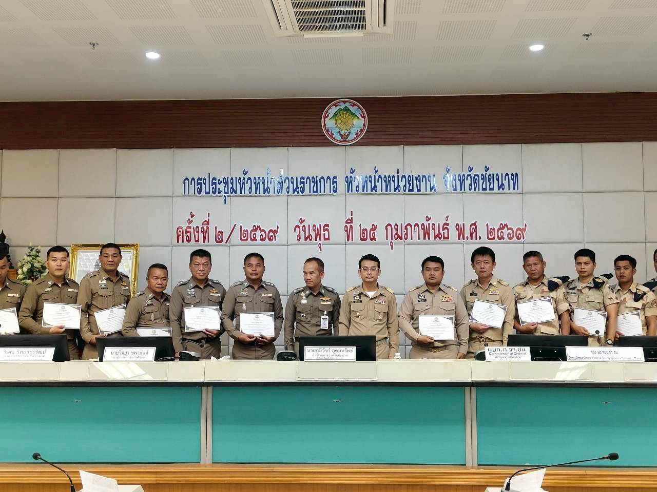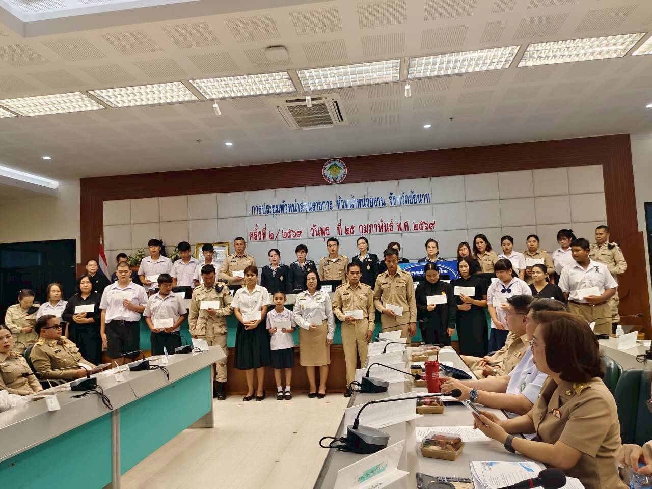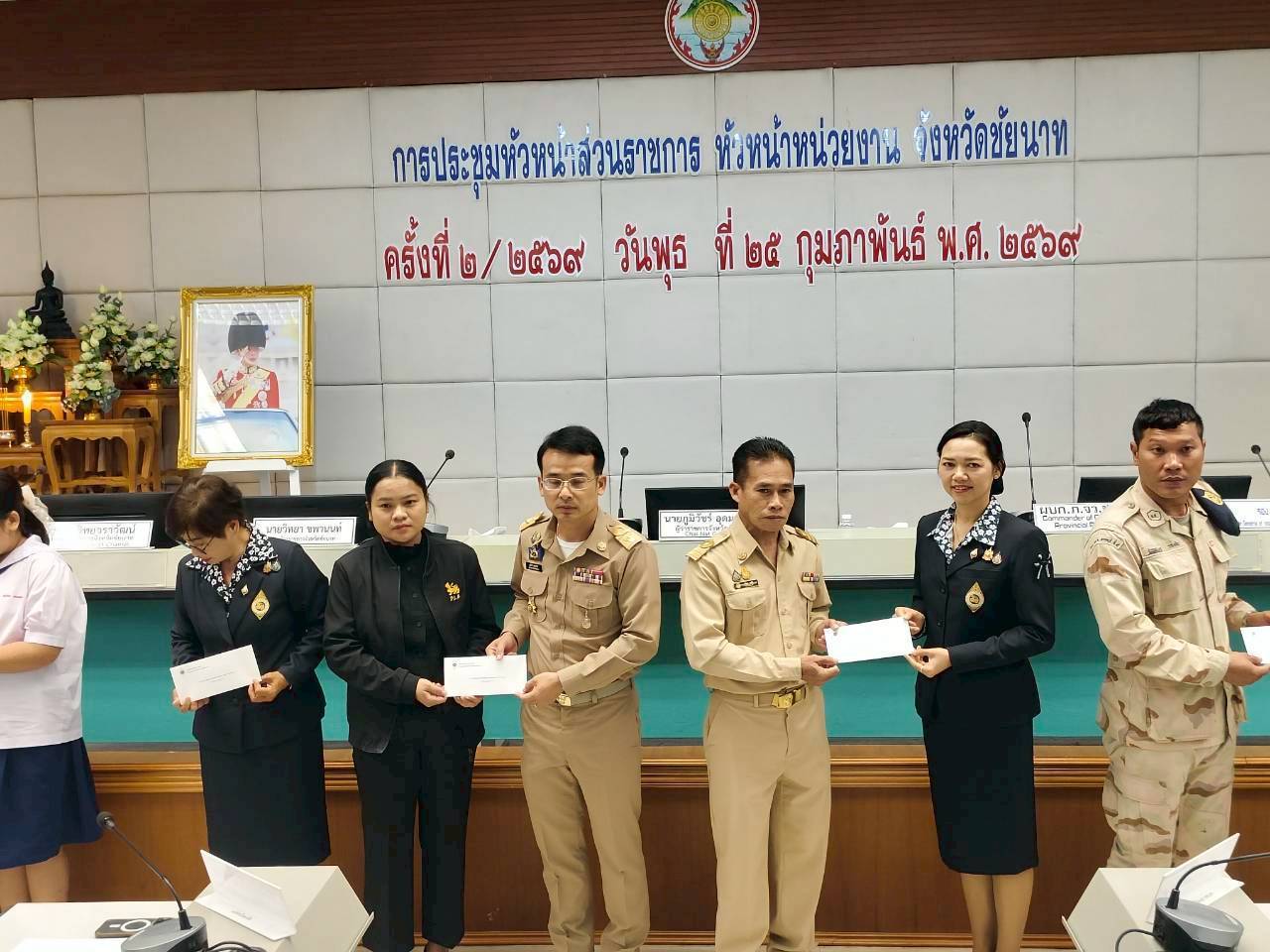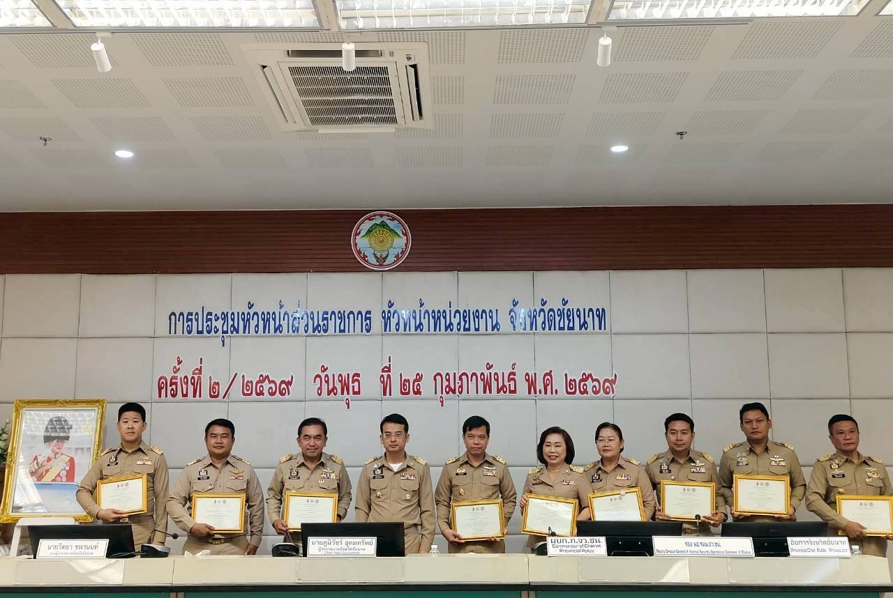 วันที่ 25 กุมภาพันธ์ 2569 ดร.อารดา มาสริ ผู้อำนวยการสำนักวิจัยและพัฒนาการเกษตรเขตที่ 5 ร่วมประชุมคณะกรมการจังหวัดและหัวหน้าส่วนราชการประจำจังหวัดชัยนาท ครั้งที่ 2/2569 ประจำเดือนกุมภาพันธ์ 2569 โดยมี นายภูมิวัชร์ อุดมทรัพย์ ผู้ว่าราชการจังหวัดชัยนาท เป็นประธานในการประชุม พร้อมด้วยรองผู้ว่าราชการจังหวัดชัยนาท หัวหน้าส่วนราชการ ผู้บริหารองค์กรปกครองส่วนท้องถิ่น และภาคเอกชนที่เกี่ยวข้อง เข้าร่วมประชุม โดยก่อนการประชุมท่านผู้ว่าราชการจังหวัด ได้มีการมอบทุนการศึกษา เงินกองทุนสวัสดิการ เกียรติบัตร และโล่ประกาศเกียรติคุณ ให้กับบุคคลและหน่วยงาน ณ ห้องประชุมหลวงปู่ศุข (501) ชั้น 5 ศาลากลางจังหวัดชัยนาท