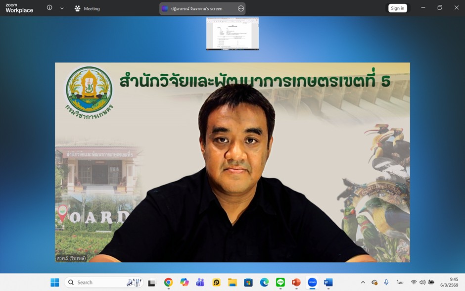 วันที่ 6 มีนาคม 2569 ดร.อารดา มาสริ ผู้อำนวยการสำนักวิจัยและพัฒนาการเกษตรเขตที่ 5 มอบหมายให้นายวีระพงษ์ เย็นอ่วม ผู้อำนวยการกลุ่มควบคุมตามพระราชบัญญัติ สำนักวิจัยและพัฒนาการเกษตรเขตที่ 5 เข้าร่วมประชุมหารือแนวทางแก้ไขปัญหาอุตสาหกรรมนมไทย อย่างเร่งด่วน เพื่อพิจารณาร่างแผนการทดสอบน้ำหมักจากน้ำนมดิบกับพืชผัก พืชไร่ (ข้าวโพดเลี้ยงสัตว์ ไม้ผล) โดยมีนายเทวรัตน์ บูรณ์สวัสดิ์พงษ์ ผู้อำนวยการกองวิจัยพัฒนาปัจจัยการผลิตทางการเกษตร เป็นประธานการประชุม ผ่านระบบอิเล็กทรอนิกส์ Application Zoom ณ สำนักวิจัยและพัฒนาการเกษตรเขตที่ 5 อำเภอสรรพยา จังหวัดชัยนาท