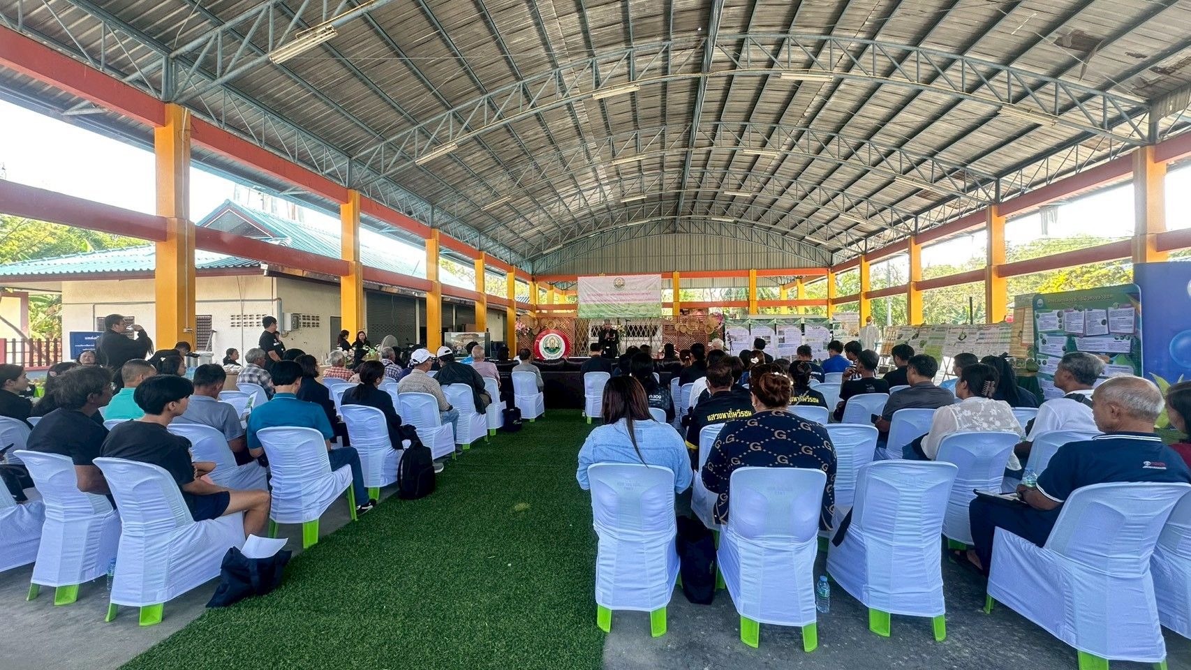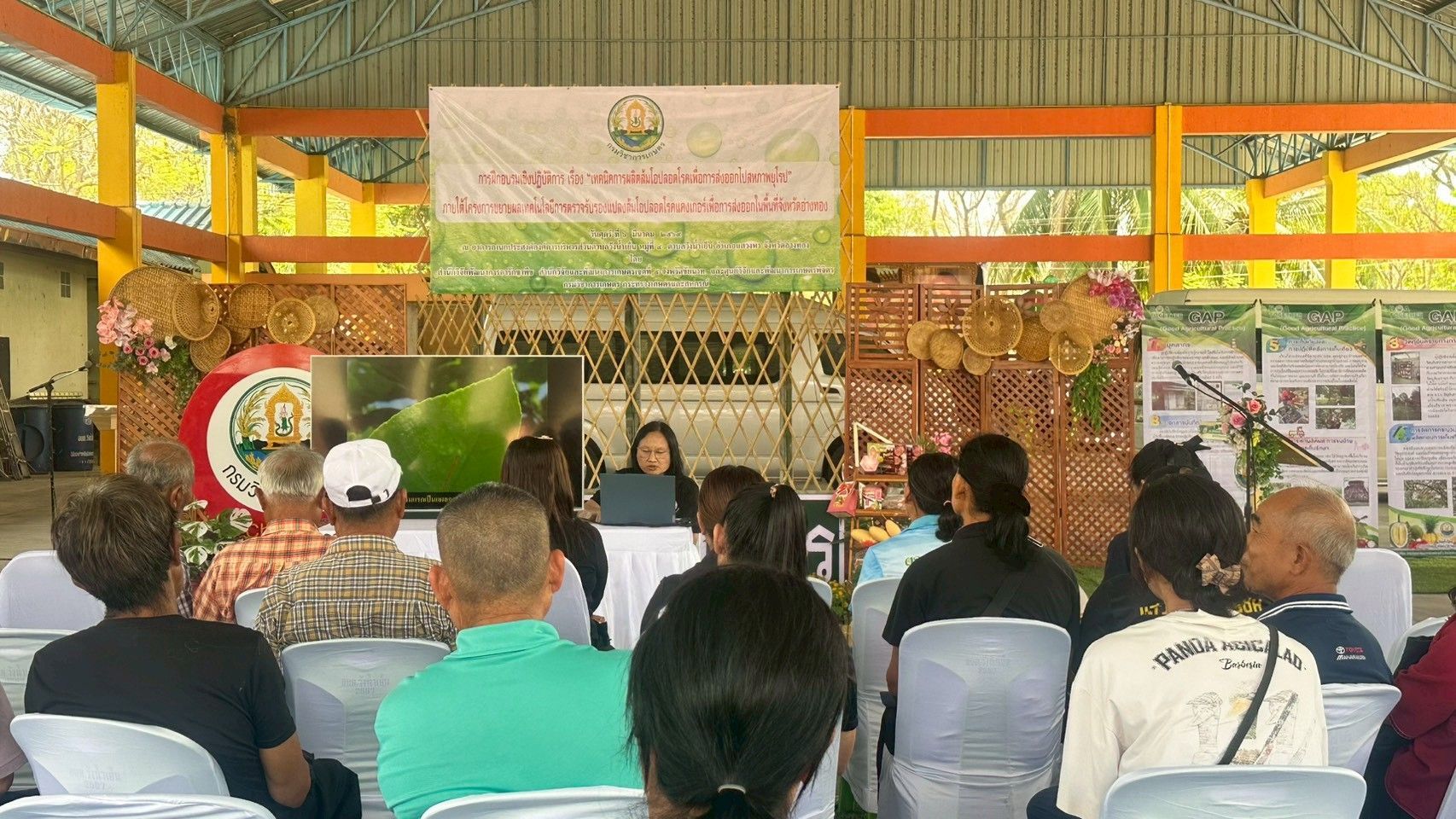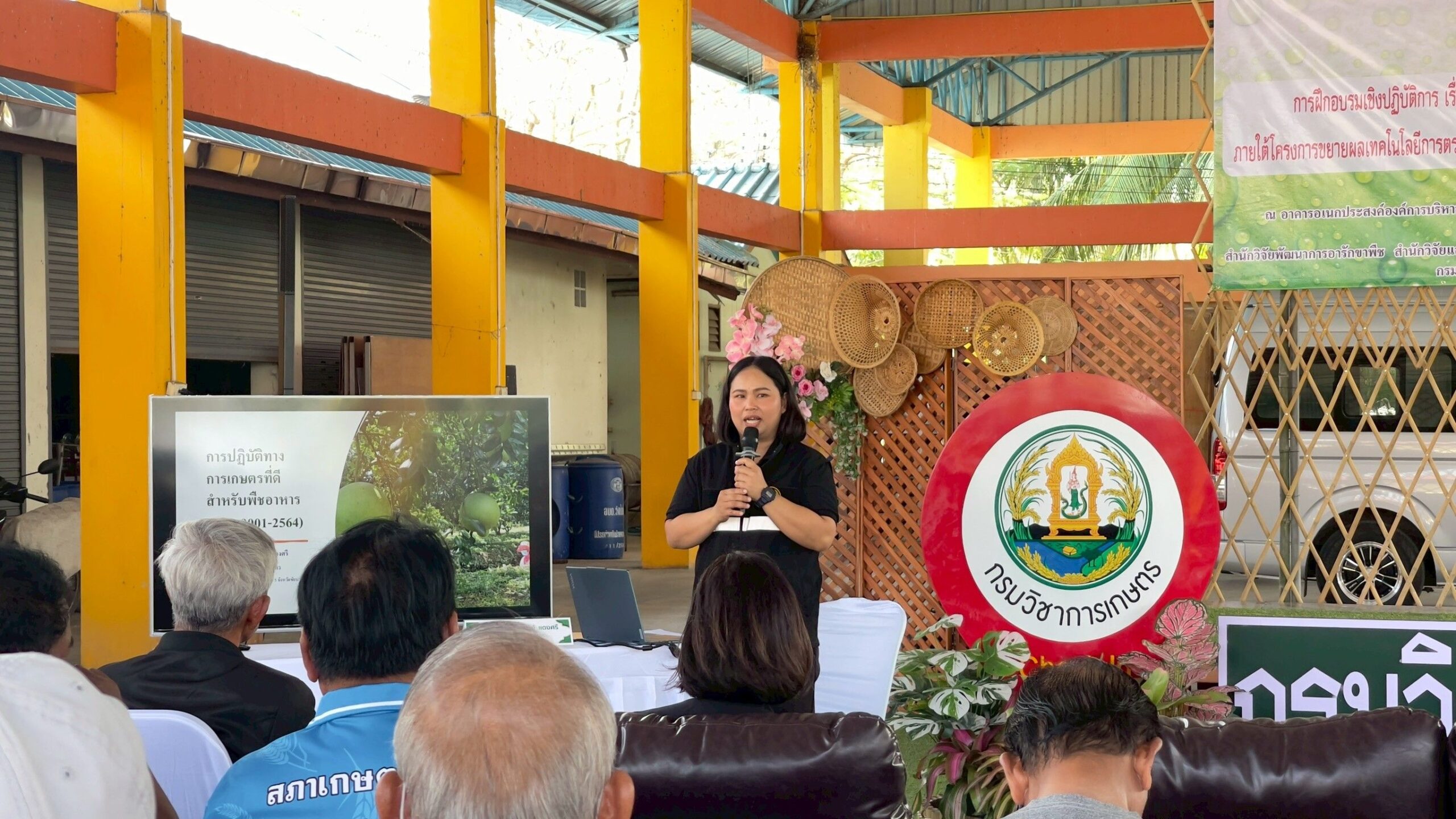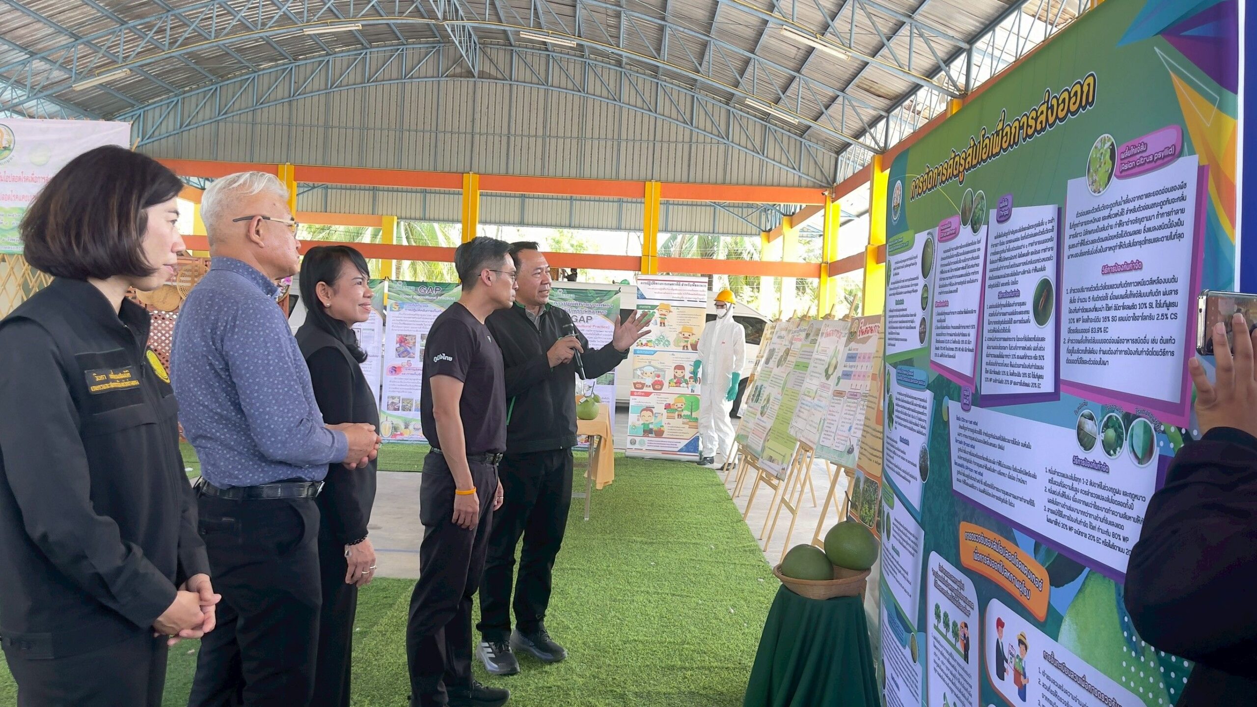 วันที่ 6 มีนาคม 2569 ดร.อารดา มาสริ ผู้อำนวยการสำนักวิจัยและพัฒนาการเกษตรเขตที่ 5 พร้อมด้วยนางอรัญญา บุญใส ผู้อำนวยกลุ่มถ่ายทอดเทคโนโลยี น.ส.วารีรัตน์ สมประทุม ผู้อำนวยการกลุ่มวิชาการ และเจ้าหน้าที่ ร่วมจัดฝึกอบรมเชิงปฏิบัติการ “เทคนิคการผลิตส้มโอปลอดโรคเพื่อการส่งออกไปสหภาพยุโรป” ให้กับเกษตรกรและผู้สนใจ อ.แสวงหา จ.อ่างทอง โดยมี นายกรวีร์ ปริศนานันทกุล สมาชิกสภาผู้แทนราษฎรเขต 2 จังหวัดอ่างทอง เป็นประธานเปิดการฝึกอบรม ดร.สิทธิศักดิ์ แสไพศาล ผู้อำนวยการกลุ่มวิจัยโรคพืช สำนักวิจัยพัฒนาการอารักขาพืช หัวหน้าโครงการกล่าวรายงาน ณ องค์การบริหารส่วนตำบลวังน้ำเย็น อำเภอแสวงหา จังหวัดอ่างทอง เพื่อถ่ายทอดองค์ความรู้และเทคโนโลยีการควบคุมศัตรูพืชที่สำคัญของส้มโออย่างถูกวิธี ระเบียบการส่งออกส้มโอไปสู่สหภาพยุโรปและกระบวนการผลิตส้มโอคุณภาพตามมาตรฐานสหภาพยุโรป พร้อมลงพื้นที่แปลงปลูกส้มโอเพื่อฝึกปฏิบัติวิธีการจัดการโรคแคงเกอร์อย่างถูกวิธีให้กับเกษตรกรที่เข้าร่วมโครงการแปลงใหญ่ส้มโอ รวมทั้งนักวิชาการของหน่วยงานในพื้นที่ จำนวน 60 ราย