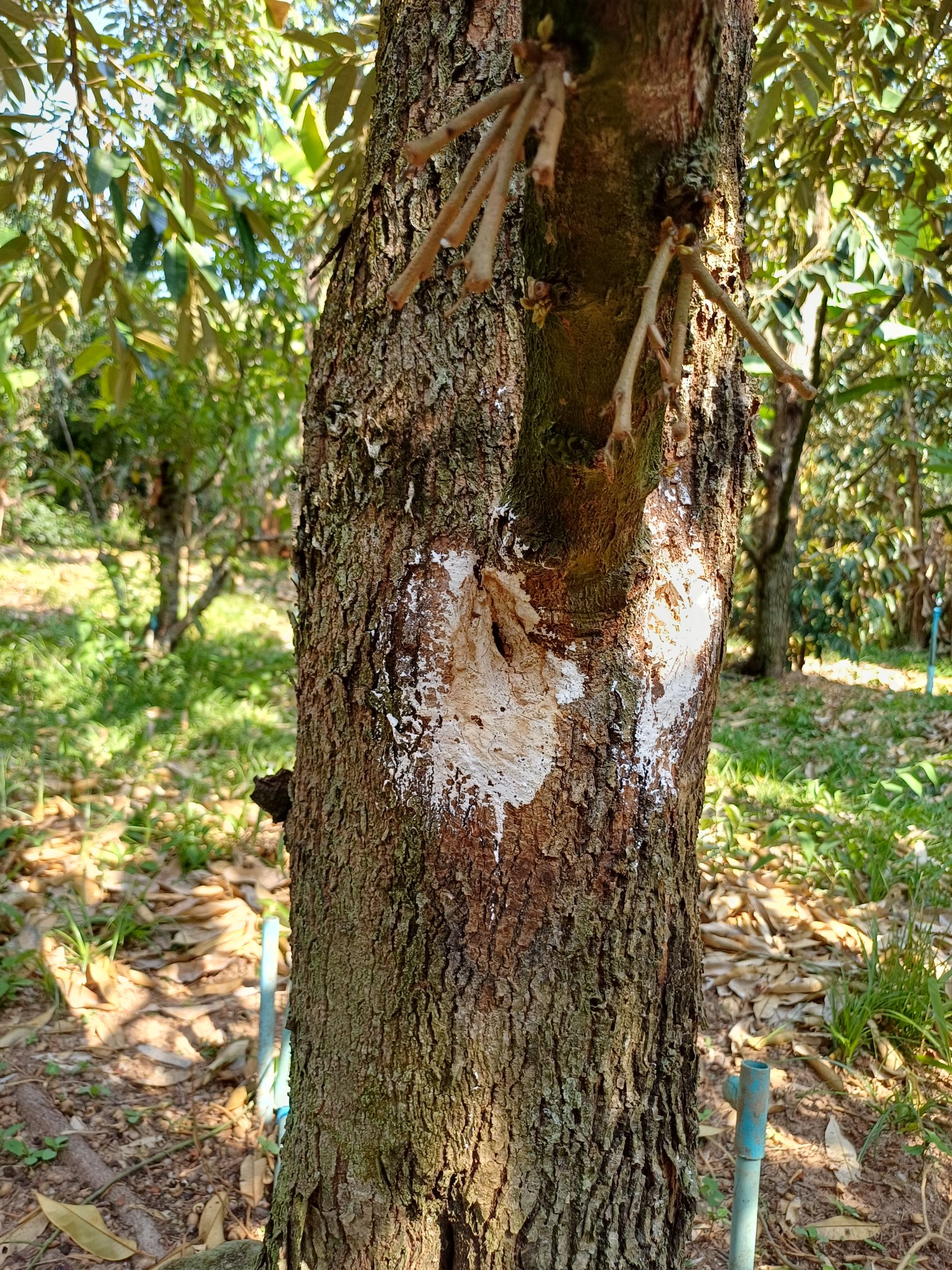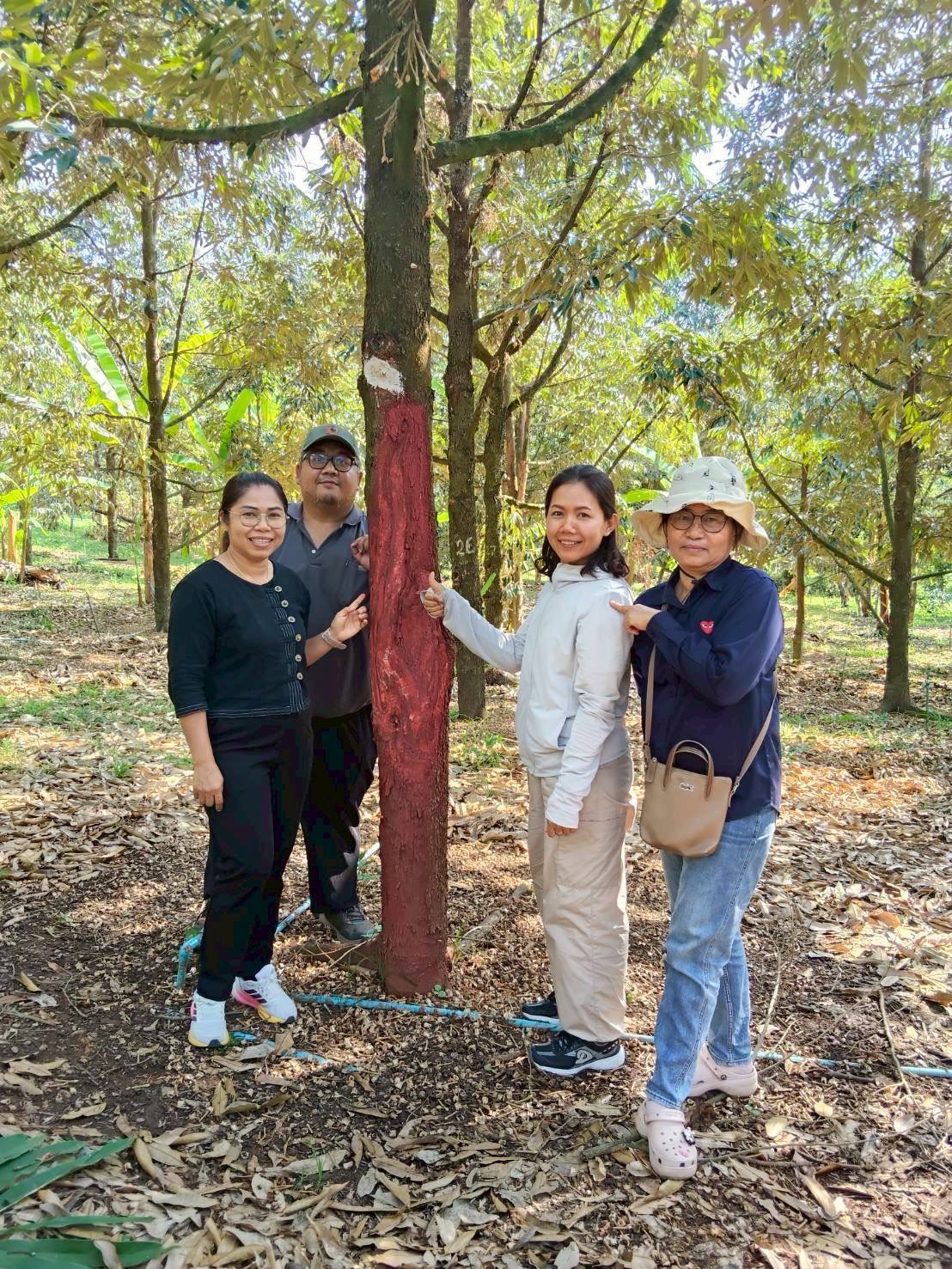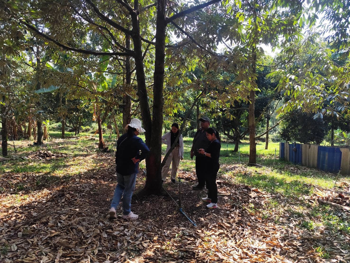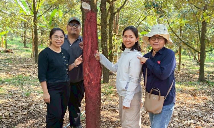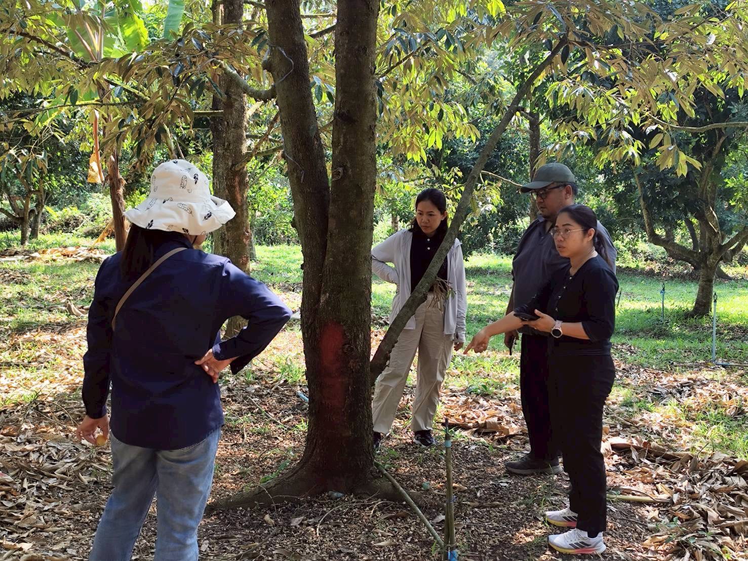 วันที่ 9 -10 มีนาคม 2569 ดร.อารดา มาสริ ผู้อำนวยการสำนักวิจัยและพัฒนาการเกษตรเขตที่ 5 มอบหมายให้นางสาววัชราสุวรรณ์อาศน์ นายอุกกฤษ ดวงแก้ว นักวิชาการเกษตรชำนาญการ และนางญาณิศา ทรัพย์พ่วง นักวิชาการเกษตร กลุ่มวิชาการ ติดตามผลการใช้เห็ดเรืองแสงสิรินรัศมีเพื่อควบคุมอาการรากเน่าโคนเน่า ที่มีสาเหตุจากเชื้อราในแปลงทุเรียน พร้อมทั้งสาธิตการผลิตน้ำเห็ดเรืองแสงสิรินรัศมี สำหรับใช้ในการควบคุมโรคในระยะต่อไป ณ สวนทุเรียนบ้านแหม่ม สมาชิกวิสาหกิจชุมชนไม้ผลชะอม ซึ่งเป็นเครือข่ายศูนย์เรียนรู้การเพิ่มประสิทธิภาพการผลิตสินค้าเกษตร(ศพก.) หมู่ 5 ตำบลชะอม อำเภอแก่งคอย จังหวัดสระบุรี โดยมี ดร.สุภาพร สุขโต นักวิชาการเกษตรชำนาญการพิเศษ พร้อมด้วยเจ้าหน้าที่ศูนย์วิจัยและพัฒนาการเกษตรอุทัยธานี ร่วมติดตามผลและสาธิตการผลิตน้ำเห็ดเรืองแสงสิรินรัศมีเพื่อแก้ไขปัญหาโรครากเน่าโคนเน่าในทุเรียน