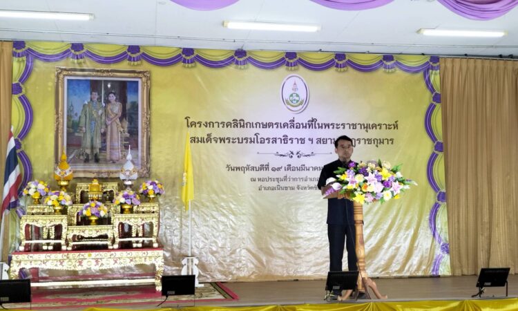 วันที่ 19 มีนาคม 2569 ดร.อารดา มาสิริ ผู้อำนวยการสำนักงานวิจัยเเละพัฒนาการเกษตร เขตที่ 5 มอบหมายให้ นายอุกกฤษ ดวงแก้ว นักวิชาการเกษตรชำนาญการพิเศษ พร้อมด้วยเจ้าหน้าที่กลุ่มวิชาการ เข้าร่วมการจัดงานโครงการคลินิกเกษตรเคลื่อนที่ในพระราชานุเคราะห์ สมเด็จพระบรมโอรสาธิราชฯ สยามมงกุฎราชกุมาร ไตรมาส 2 ประจำปี 2569 ให้ความรู้เรื่องการใช้สารเคมีที่ถูกต้อง การใช้ประโยชน์จากเเหนแดง การขอรับรอง GAP และการควบคุมศัตรูพืชแบบผสมผสาน ให้กับเกษตรกรและผู้ที่สนใจในพื้นที่ โดยมี นายภูมิวัชร์ อุดมทรัพย์ ผู้ว่าราชการจังหวัดชัยนาท เป็นประธานในพิธี ณ หอประชุมที่ว่าการอำเภอ หมู่ที่ 14 ตำบลเนินขาม อำเภอเนินขาม จังหวัดชัยนาท