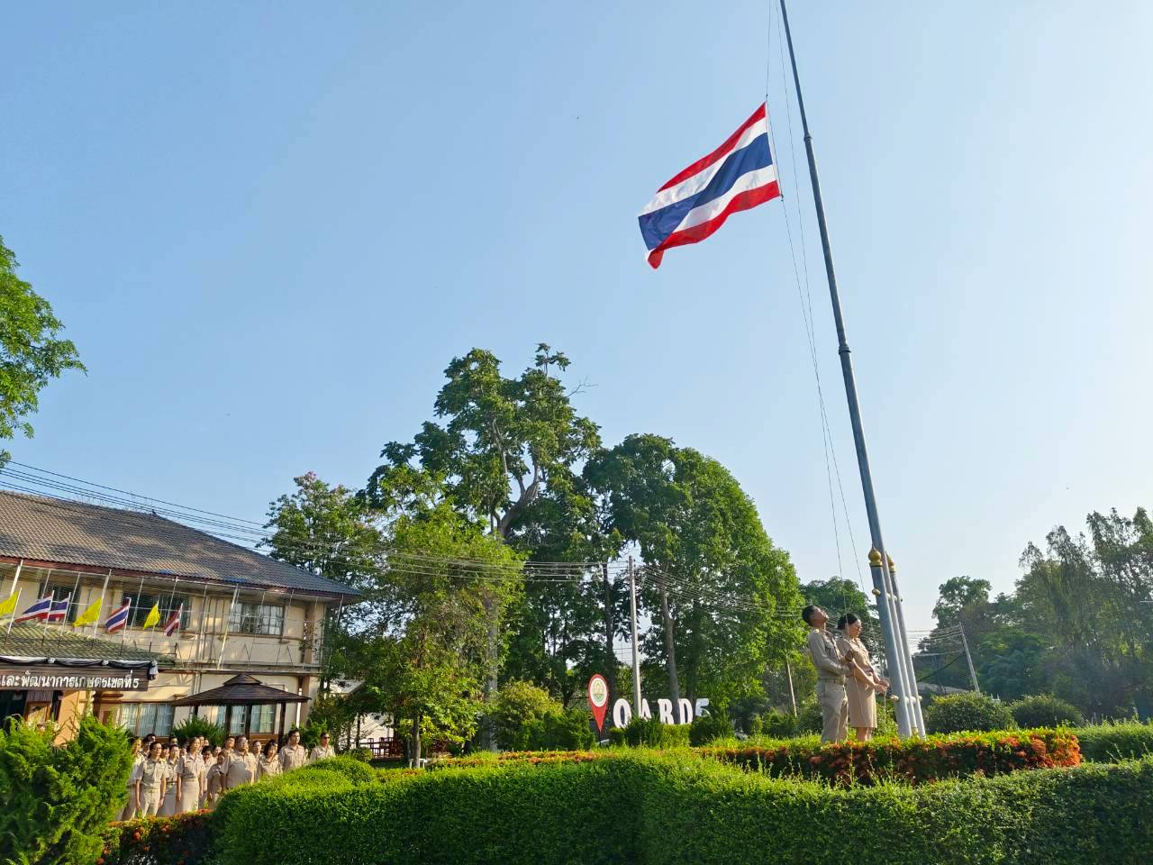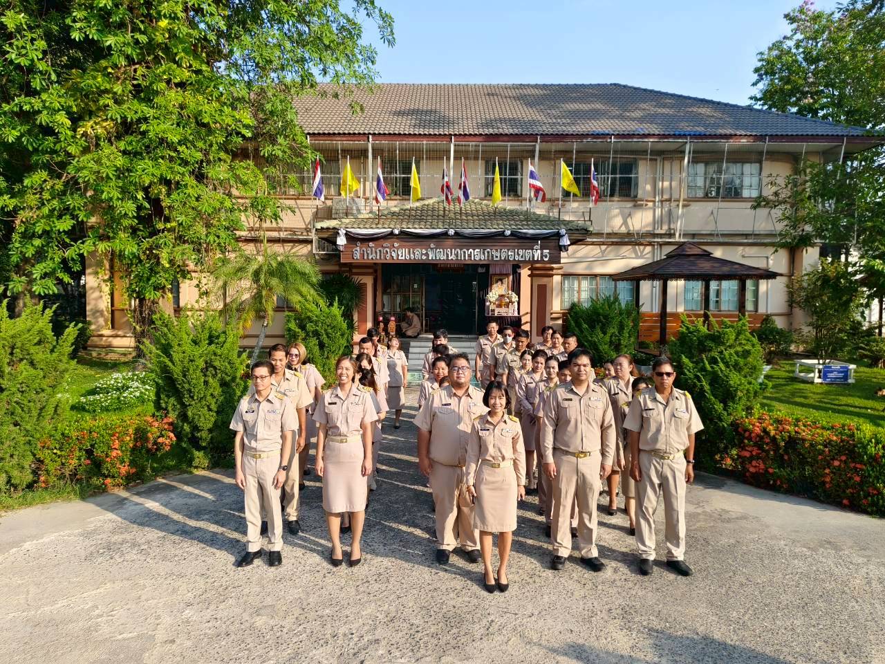 วันที่ 30 มีนาคม 2569 เวลา 08.00 น. ดร.อารดา มาสริ ผู้อำนวยการสำนักงานวิจัยและพัฒนาการเกษตร เขตที่ 5 มอบหมายให้นางสาวนิศาชล แก้วจันทร์ นักวิชาการเกษตรปฏิบัติการ กลุ่มประสานและบริหารนโยบาย เป็นผู้นำจัดกิจกรรมเคารพธงชาติ ร้องเพลงชาติ และสวดมนต์ เพื่อให้บุคลากรมีจิตสำนึกในการรักชาติ ศาสนา และพระมหากษัตริย์ เป็นการพัฒนาบุคลากรของ สวพ.5 ให้เป็นคนมีคุณภาพ มีคุณธรรม ตามมาตรฐานจริยธรรม ณ บริเวณหน้าเสาธง ตึกอำนวยการ สำนักงานวิจัยและพัฒนาการเกษตร เขตที่ 5 อำเภอสรรพยา จังหวัดชัยนาท ในโอกาสนี้ได้ให้เกร็ดความรู้เกี่ยวกับ 6 วิธีสร้างสุขในการทำงานขณะจิตตก ดังนี้ 1. สำรวจต้นตอของปัญหา 2. ตรวจสอบทางแก้ไข 3. เปลี่ยนมุมมองจากที่นั่งใหม่ มองปัญหาจากมุมอื่น เพื่อหาแรงบัลดาลใจในการแก้ไขปัญหา 4. จัดโต๊ะทำงานและสภาพแวดล้อม ช่วยลดความวุ่นวายในใจ 5. เพิ่มเติมความรู้ และเรียนรู้เรื่องใหม่ๆ ช่วยเบี่ยงเบนความสนใจจากความทุกข์ 6. ทำใจให้สงบ ยอมรับสิ่งที่เกิดขึ้นอย่างมีสติ