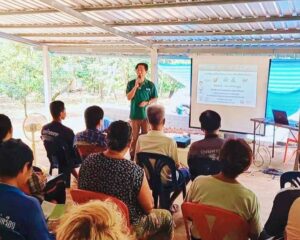 ผู้อำนวยการสำนักวิจัยและพัฒนาการเกษตร เขตที่ 6 มอบหมายให้ กลุ่มถ่ายทอดเทคโนโลยี จัดอบรม เรื่องการผลิตและการใช้เห็ดเรืองแสงสิรินรัศมี ในการป้องกันกำจัดโรครากเน่าโคนเน่าทุเรียนแบบผสมผสาน ให้กับเกษตรกรกลุ่มแปลงใหญ่ทุเรียน ตำบลมาบไพ อำเภอขลุง จังหวัดจันทบุรี