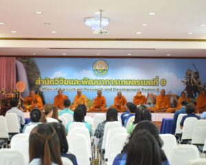 วันอังคารที่ 14 มกราคม 2568 นายพิทวัฒน์ อ่อนทองหลาง ผู้อำนวยการสำนักวิจัยและพัฒนาการเกษตรเขตที่ 6 มอบหมายให้ นายเทศกาล กิ่งแก้ว นักวิชาการเกษตรชำนาญการ เข้าร่วมพิธีเจริญพระพุทธมนต์และทำบุญตักบาตรถวายพระราชกุศล และพิธีทางศาสนามหามงคลถวายพระราชกุศล ในกิจกรรมเฉลิมพระเกียรติพระบาทสมเด็จพระเจ้าอยู่หัว เนื่องในโอกาสพระราชพิธีสมมงคลพระชนมายุเท่าพระบาทสมเด็จพระพุทธยอดฟ้าจุฬาโลกมหาราช สมเด็จพระปฐมบรมกษัตริยาธิราชแห่งราชวงศ์จักรี พุทธศักราช 2568 ณ ศาลาการเปรียญ วัดโค้งสนามเป้า ตำบลท่าช้าง อำเภอเมืองจันทบุรี จังหวัดจันทบุรี