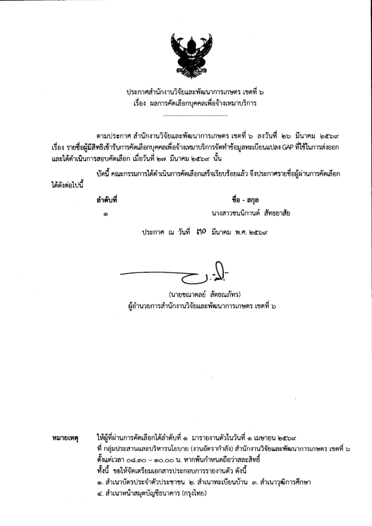 ประกาศผลการคัดเลือกบุคคลเพื่อจ้างเหมาบริการจัดทำข้อมูลทะเบียนแปลง GAP เพื่อใช้ในการส่งออก 19 มีนาคม 2026 admin ข่าว, ข่าวการสอบ สมัครงาน