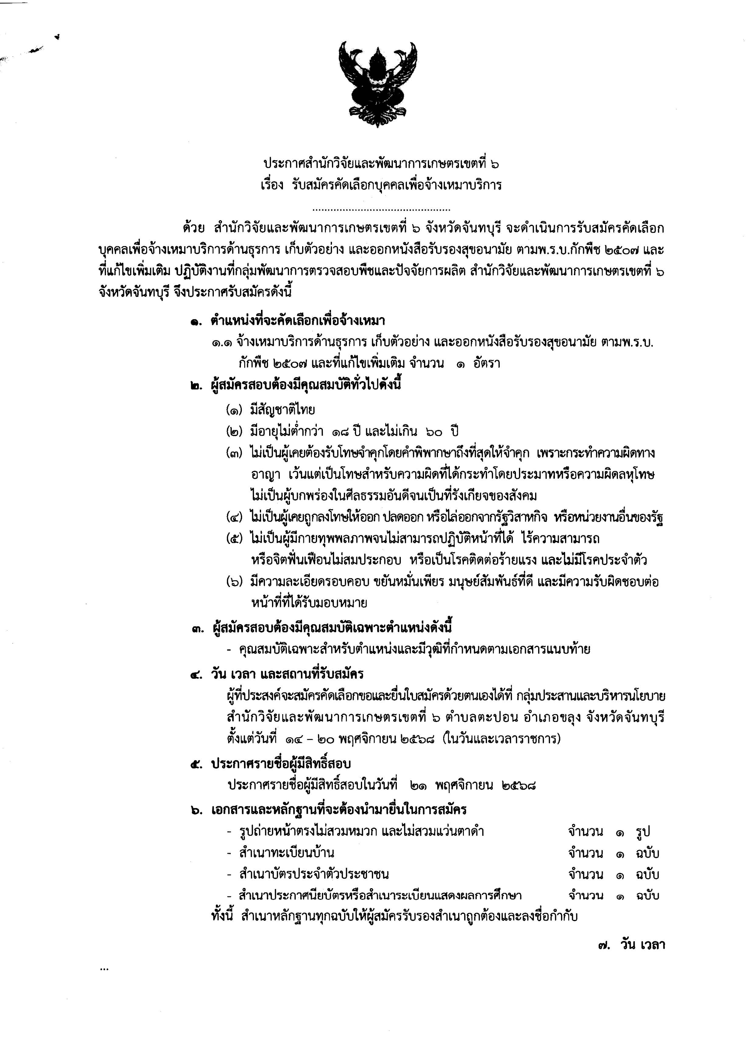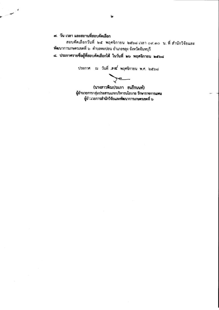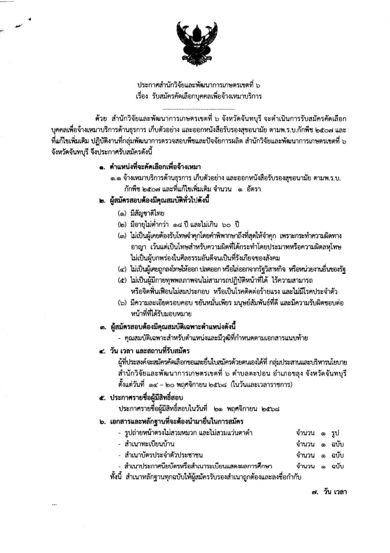 ประกาศรับสมัครคัดเลือกบุคคลเพื่อจ้างเหมาบริการด้านธุรการ เก็บตัวอย่างและออกหนังสือรับรองสุขอนามัย ตามพ.ร.บ.กักพืช 2507 จำนวน 1 อัตรา 17 พฤศจิกายน 2025 admin ข่าว, ข่าวการสอบ สมัครงาน FacebookFacebookXXLINELine