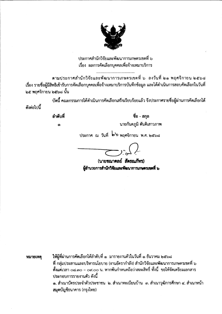 ประกาศผลการคัดเลือกบุคคลเพื่อจ้างเหมาบริการบันทึกข้อมูล 26 พฤศจิกายน 2025 admin ข่าว, ข่าวการสอบ สมัครงาน FacebookFacebookXXLINELine