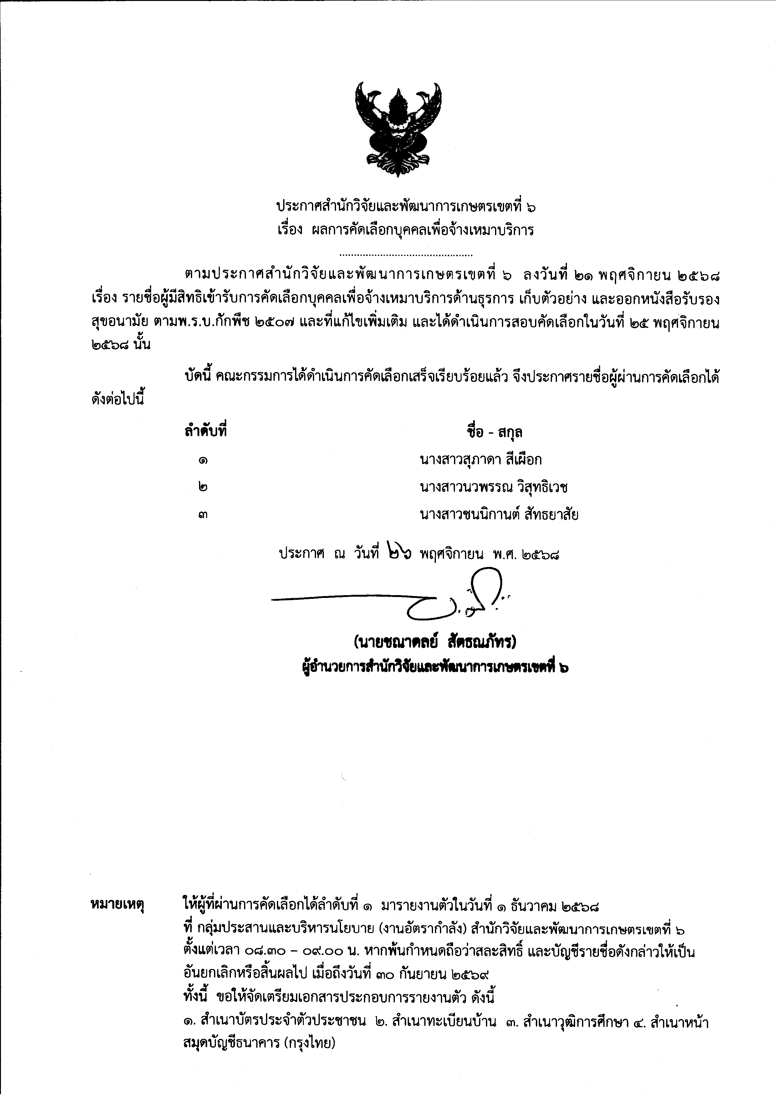 ประกาศผลการคัดเลือกบุคคลเพื่อจ้างเหมาบริการด้านธุรการ เก็บตัวอย่างและออกหนังสือรับรองสุขอนามัย ตามพ.ร.บ.กักพืช 2507 26 พฤศจิกายน 2025 admin ข่าว, ข่าวการสอบ สมัครงาน FacebookFacebookXXLINELine