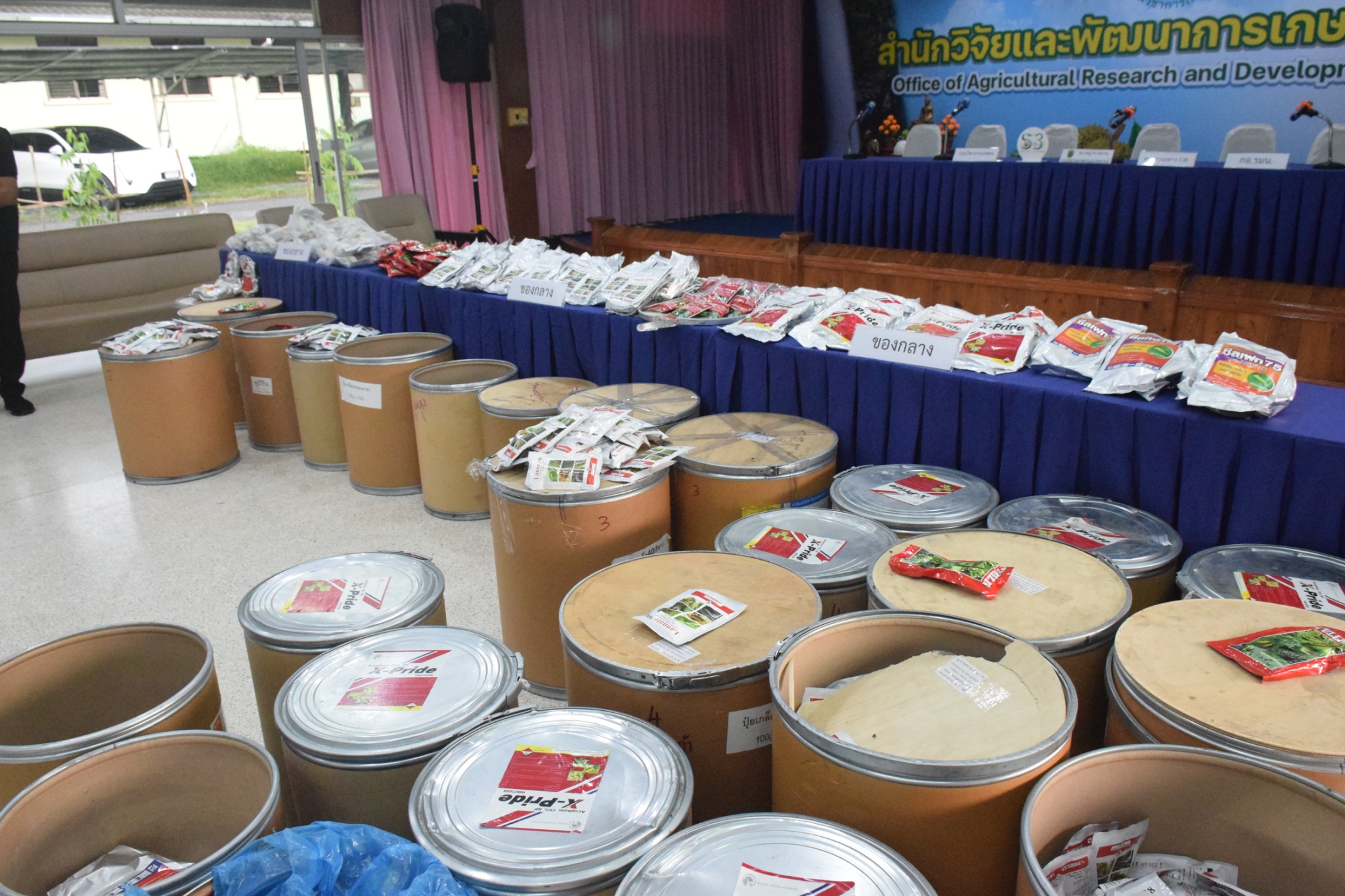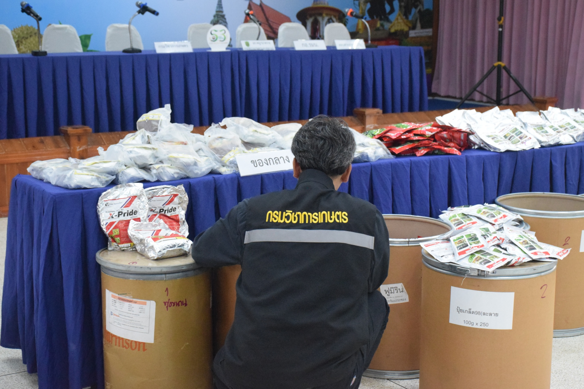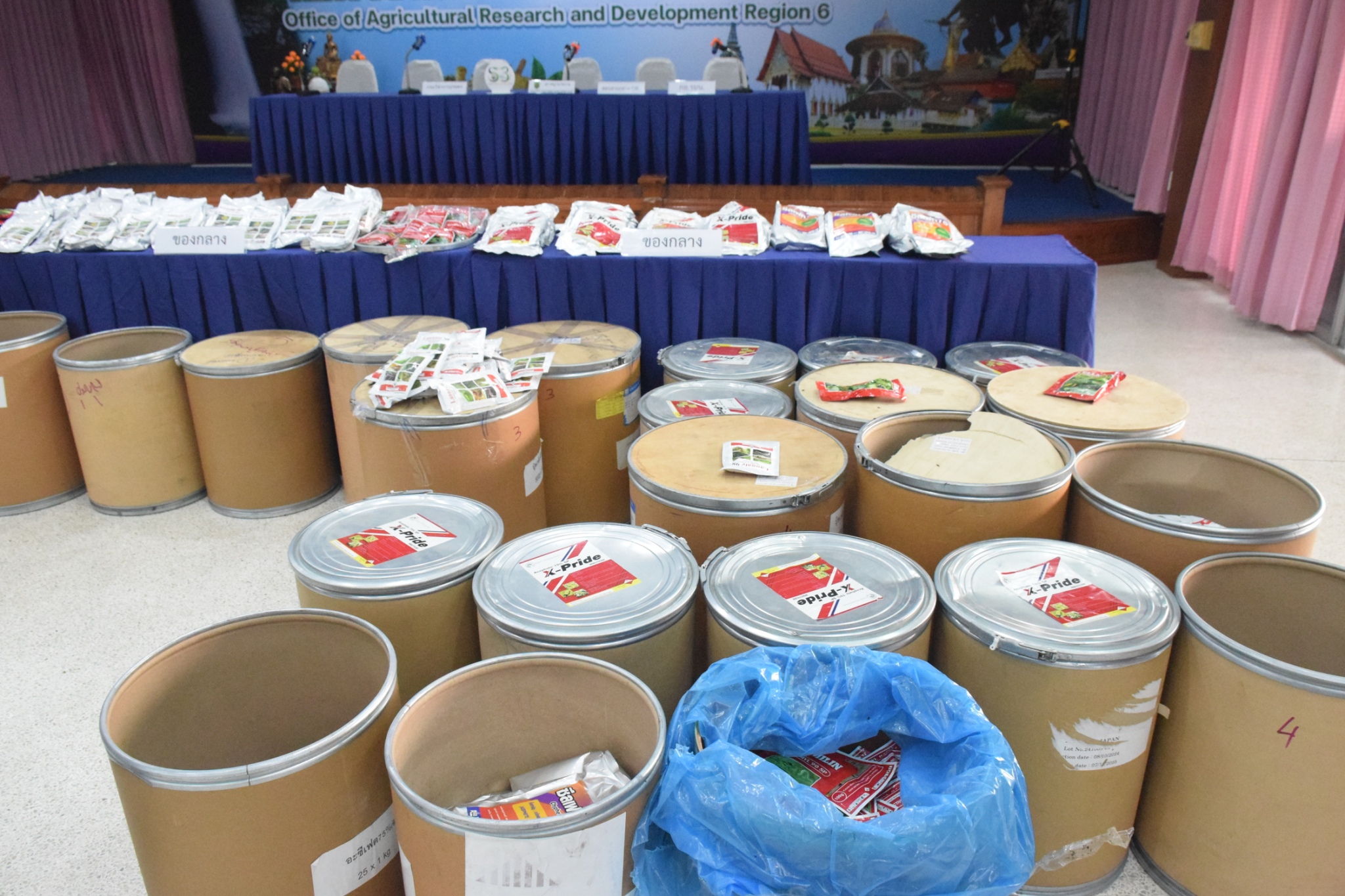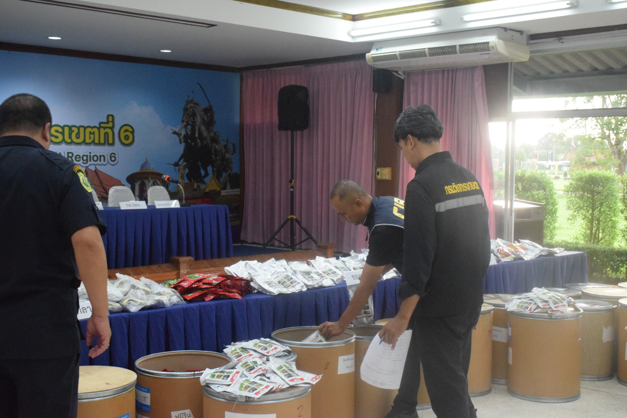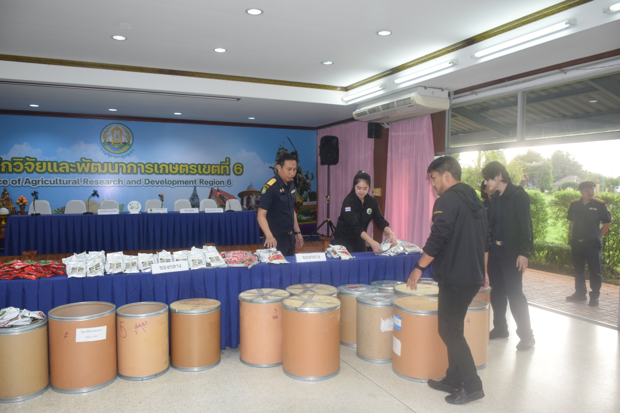 วันพุธที่ 12 พฤศจิกายน 2568 นางสาวพิณประภา ธนธีรนนท์ ผู้อำนวยการกลุ่มประสานและบริหารนโยบายรักษาราชการแทนผู้อำนวยการสำนักวิจัยและพัฒนาการเกษตรเขตที่ 6 พร้อมด้วย นายสมชาย ฉันทพิริยะพูน ผู้อำนวยการกลุ่มควบคุมตามพระราชบัญญัติ ร่วมแถลงข่าว กรมวิชาการเกษตรและชุดเฉพาะกิจพญานาคราช กระทรวงเกษตรฯ ตรวจจับการลักลอบจำหน่ายวัตถุอันตรายทางการเกษตร จังหวัดจันทบุรี นำโดย พันเอก รวิรักษ์ สัตตบุศย์ ผู้บังคับหน่วยเฉพาะกิจพญานาคราชฯ พร้อมด้วย นายชัยศักดิ์ รินเกลื่อน ผู้อำนวยการสำนักควบคุมพืชและวัสดุการเกษตร ลงพื้นที่อำเภอสอยดาว จังหวัดจันทบุรี ตรวจสอบผู้ครอบครองวัตถุอันตรายตามข้อสั่งการของ นายรพีภัทร์ จันทรศรีวงศ์ อธิบดีกรมวิชาการเกษตร โดยมีเจ้าหน้าที่สารวัตรเกษตรของสำนักควบคุมพืชและวัสดุการเกษตร เจ้าหน้าที่ตำรวจสอบสวนกลาง CIB และ กอ.รมน. ร่วมตรวจค้น พบการครอบครองวัตถุอันตรายชนิดที่ 3 ประเภทสารกำจัดแมลง เมโทมิล และอะซิเฟต โดยไม่ได้รับอนุญาตและไม่ได้ขึ้นทะเบียน ซึ่งเป็นการกระทำความผิดตามพระราชบัญญัติวัตถุอันตรายฯ จำนวน 4 ร้านค้า จึงได้ยึดไว้เป็นของกลางเพื่อดำเนินคดี รวม 3 ตัน มูลค่ากว่า 2 ล้านบาท และนำมาเก็บรักษาไว้ที่สำนักวิจัยและพัฒนาการเกษตรเขตที่ 6 เพื่อเตรียมส่งตัวอย่างตรวจสอบคุณภาพที่ห้องปฏิบัติการ กองวิจัยพัฒนาปัจจัยการผลิตทางการเกษตร กรมวิชาการเกษตร กรุงเทพฯ รวมทั้งได้ลงบันทึกประจำวันไว้เป็นหลักฐาน เพื่อดำเนินคดีตามกฎหมายต่อไป