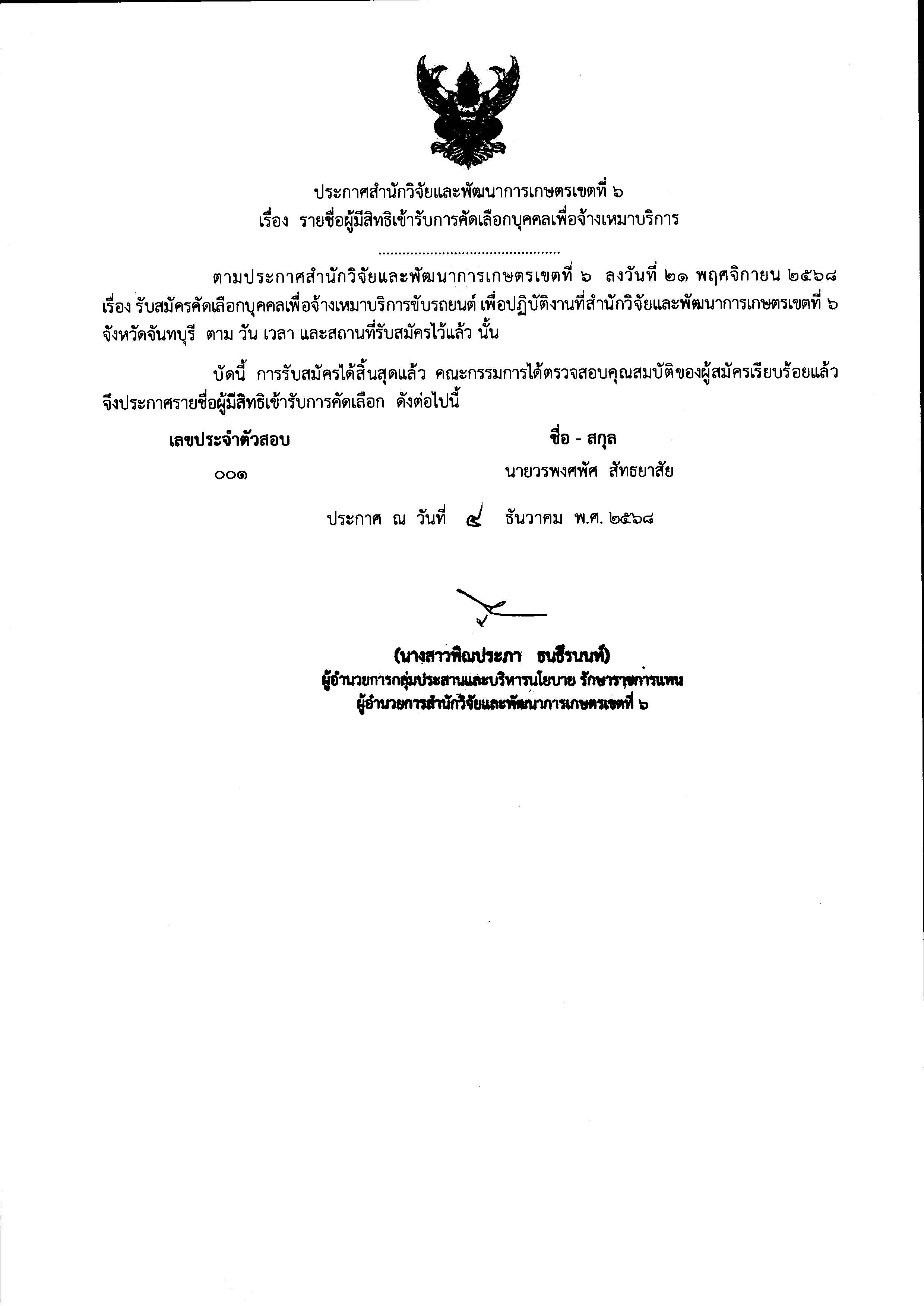 ประกาศรายชื่อผู้มีสิทธิเข้ารับการคัดเลือกบุคคลเพื่อจ้างเหมาบริการขับรถยนต์ 4 ธันวาคม 2025 admin ข่าว, ข่าวการสอบ สมัครงาน FacebookFacebookXXLINELine