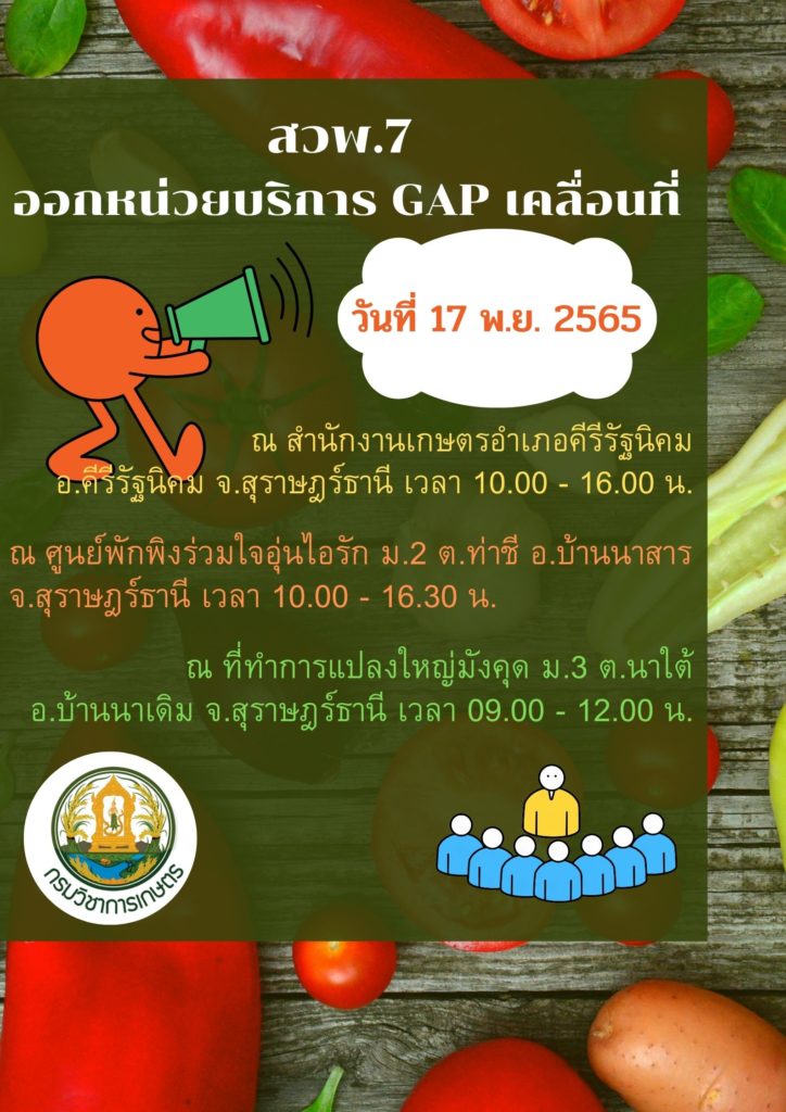 วันที่ 17 พฤศจิกายน 2565 สวพ.7 ออกหน่วยบริการ GAP เคลื่อนที่