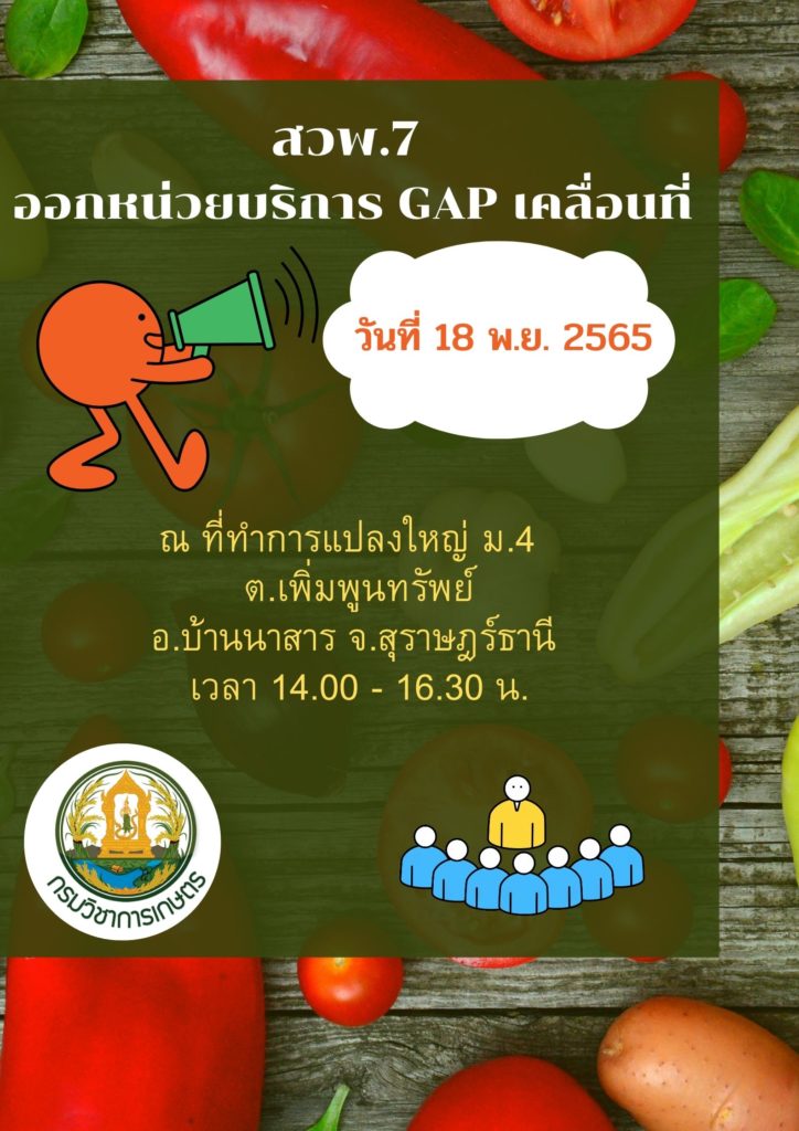 วันที่ 18 พฤศจิกายน 2565 สวพ.7 ออกหน่วยบริการ GAP เคลื่อนที่