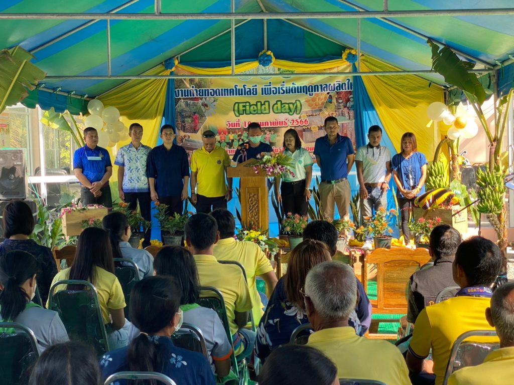 วันที่ 10 กุมภาพันธ์ 2566 นางสาวฉันทนา คงนคร ผู้อำนวยการสำนักวิจัยและพัฒนาการเกษตร เขตที่ 7 กรมวิชาการเกษตร มอบหมาย นายจีรพงษ์ สนธิคุณ และนางสาวพิชญ์พิมล ทองนอก นักวิชาการเกษตร กลุ่มถ่ายทอดเทคโนโลยี ร่วมจัดงานวันถ่ายทอดเทคโนโลยี เพื่อการเริ่มต้นฤดูกาลผลิตใหม่ (Field Day) ปี2566 และร่วมเป็นฐานเรียนรู้ เรื่องการใช้ชีวภัณฑ์และปุ๋ยชีวภาพของกรมวิชาการเกษตรรวมถึงการให้ความรู้การเข้าถึงปัจจัยการผลิตชีวภัณฑ์และปุ๋ยชีวภาพ เพื่อใช้ในการลดต้นทุนการผลิต ให้แก่เกษตรกร โดยมีนายวีรยุทธ ขนุนนิล นายอำเภอบ้านตาขุน เป็นประธานเปิดงาน ณ ศูนย์เครือข่าย ศพก.ที่ทำการกลุ่มวิสาหกิจชุมชนพรุไทยฮันนี่บี หมู่ที่ 9 ต.พรุไทย อ.บ้านตาขุน จ.สุราษฎร์ธานี เกษตรกรเข้าร่วมงานมากกว่า 30 ราย