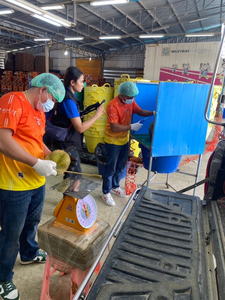 วันที่ 9 ตุลาคม 2567 นางสาวฉันทนา คงนคร ผู้อำนวยการสำนักวิจัยและพัฒนาการเกษตร เขตที่ 7 พร้อมด้วย นางฐปนีย์ ทองบุญ ผู้อำนวยการศูนย์วิจัยและพัฒนาการเกษตรชุมพร นางสาวอุมาภรณ์ สุจริตทวีสุข ผู้อำนวยการกลุ่มถ่ายทอดเทโนโลยี นางสาวจิตรา อินเกตุ นักวิชาการการเกษตรชำนาญการ และ นายสมชาย มณีโชติ เจ้าพนักงานการเกษตรชำนาญงาน ศวพ.ชุมพร ร่วมประชุมหารือกับนายธีระศักดิ์ ยมสวัสดิ์ ประธาน ผู้แทนสภาเกษตรจังหวัดชุมพร นายพิเชฏฐ เทศรัตน์ กำนันตำบลวังตะกอ เพื่อหารือแนวทางการแก้ไขปัญหา การทิ้งสารเคมีจากโรงคัดบรรจุ ส่งผลกระทบสาธารณะและสิ่งแวดล้อม ณ ห้องประชุมเทศบาลอำเภอวังตะกอ และลงพื้นที่ โรงคัดบรรจุ ต.วังตะกอ และ ต.นาขา อ.หลังสวน จ.ชุมพร ตรวจติดตามโรงคัดบรรจุ ทุเรียน โดยเน้นย้ำและให้คำแนะนำในเรื่องการ สารเคมีจากการผลิต ให้มีประสิทธิภาพโดยให้มีภาชนะสำหรับใส่ของเสียที่เพียงพอ ติดตั้งในบริเวณที่เหมาะสม และแยกออกจากพื้นที่ผลิต รวมทั้งมีมาตรการกำจัดของเสียและสารเคมีที่ดี ไม่กระทบต่อสิ่งแวดล้อม
