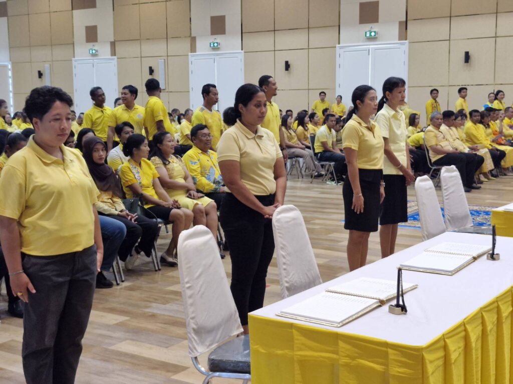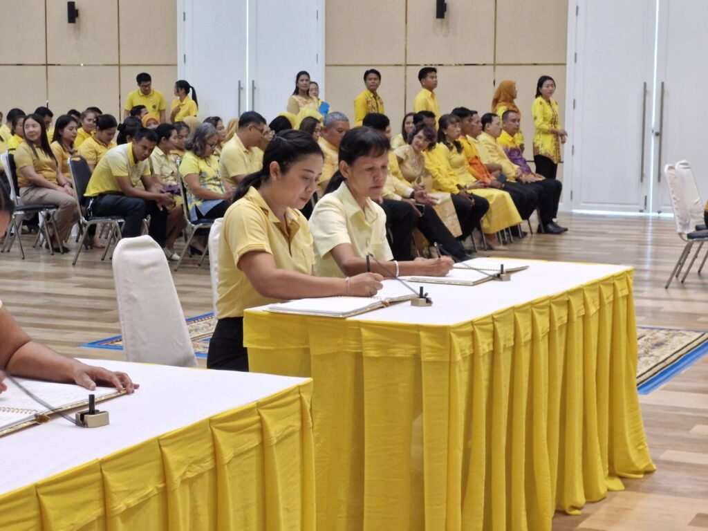 วันที่ 22 กรกฎาคม 2568 นายไพศอล หะยีสาและ ผู้อำนวยการสำนักวิจัยและพัฒนาการเกษตรเขตที่ 8 มอบหมายให้ นางสาวอภิญญา สุราวุธ ผอ.กลุ่มวิชาการ นางสาวฐิติรัตน์ เทพทอง ผอ.กลุ่มประสานและบริหารนโยบาย พร้อมด้วยเจ้าหน้าที่ สวพ.8 เข้าร่วมพิธีลงนามถวายพระพร พระบาทสมเด็จพระเจ้าอยู่หัว เนื่องในโอกาสวันเฉลิมพระชนมพรรษา 28 กรกฏาคม 2568 ณ หอประชุมจังหวัดสงขลา ศาลากลางจังหวัดสงขลา