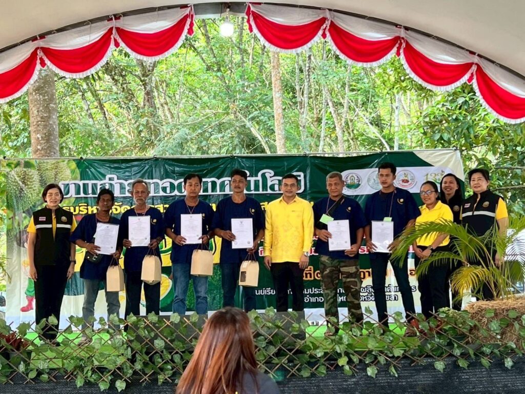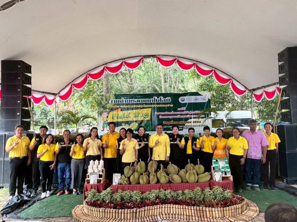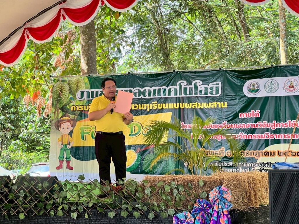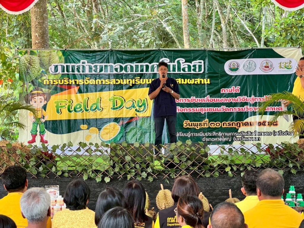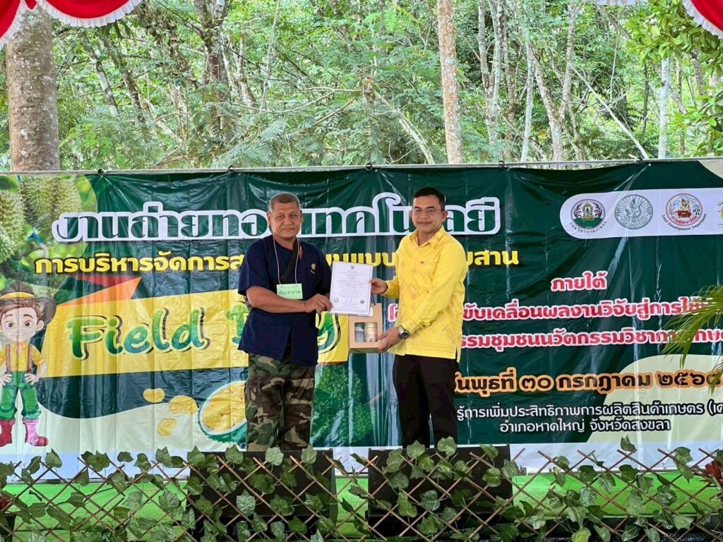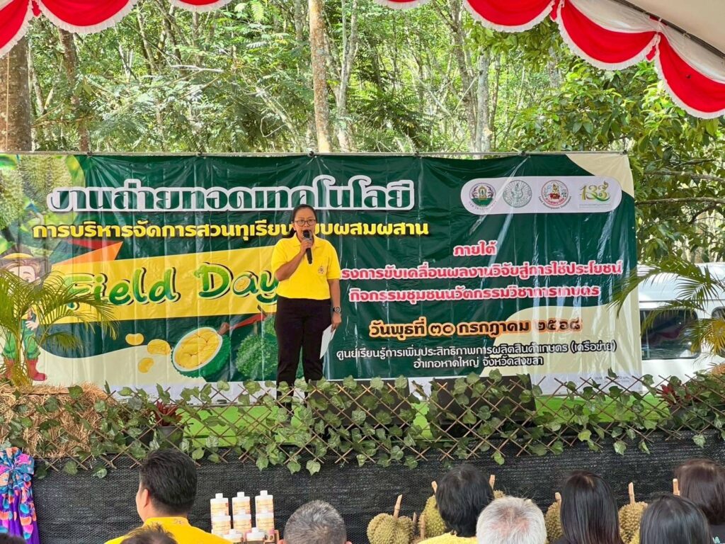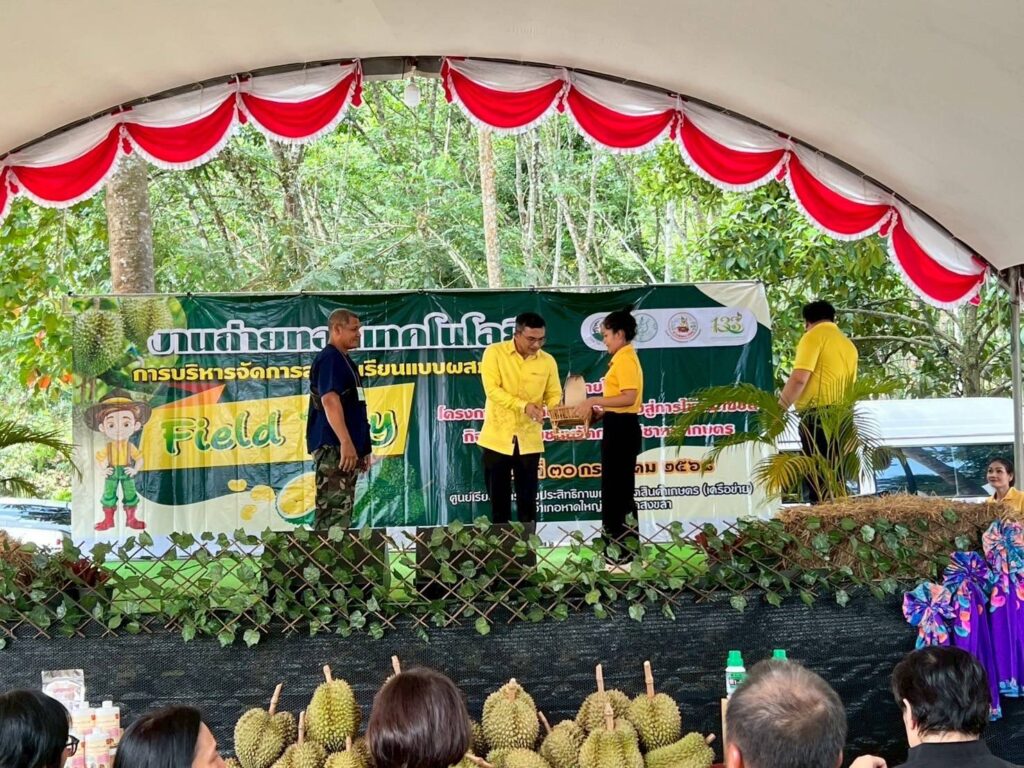 จัดงานวันถ่ายทอดเทคโนโลยีการบริหารจัดการสวนทุเรียนแบบผสมผสาน (Field Day) ณ ศพก.เครือข่าย อ.หาดใหญ่ จ.สงขลา (สวนคุณสมชาย จันทะสระ) เกษตรอินทรีย์ ต.ฉลุง อ.หวดใหญ่ จ.สงขลา