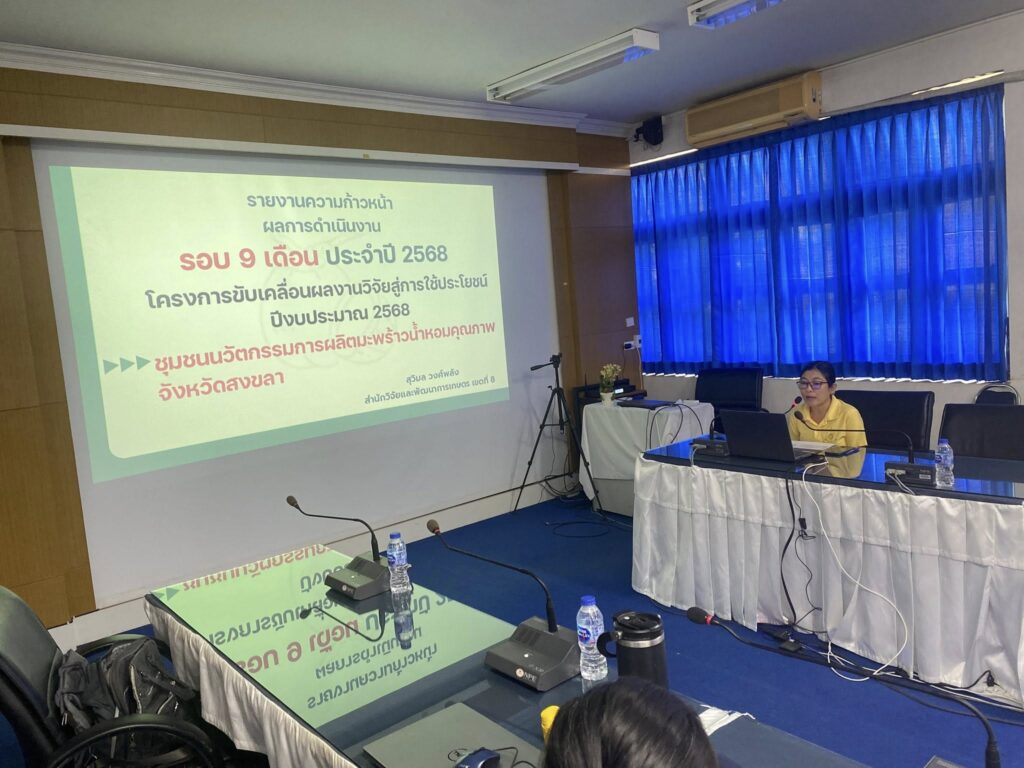 วันที่ 31 กรกฎาคม 2568 สำนักวิจัยและพัฒนาการเกษตร เขตที่ 8 จัดประชุม “รายงานความก้าวหน้าผลการดำเนินงาน โครงการขับเคลื่อนผลงานวิจัย กรมวิชาการเกษตร สู่การใช้ประโยชน์ ปีงบประมาณ 2568 ครั้งที่ 1/2568” โดย นายไพศอล หะยีสาและ ผู้อำนวยการสำนักวิจัยและพัฒนาการเกษตร เขตที่ 8 ทำหน้าที่ประธานในที่ประชุม โดยมี ผชช. ผอ.กลุ่มภายใน สวพ.8 ผอ.ศวพ.จังหวัด เจ้าหน้าที่ที่เกี่ยวข้อง เข้าร่วมประชุม ณ ห้องประชุมสำนักวิจัยและพัฒนาการเกษตร เขตที่ 8 จังหวัดสงขลา