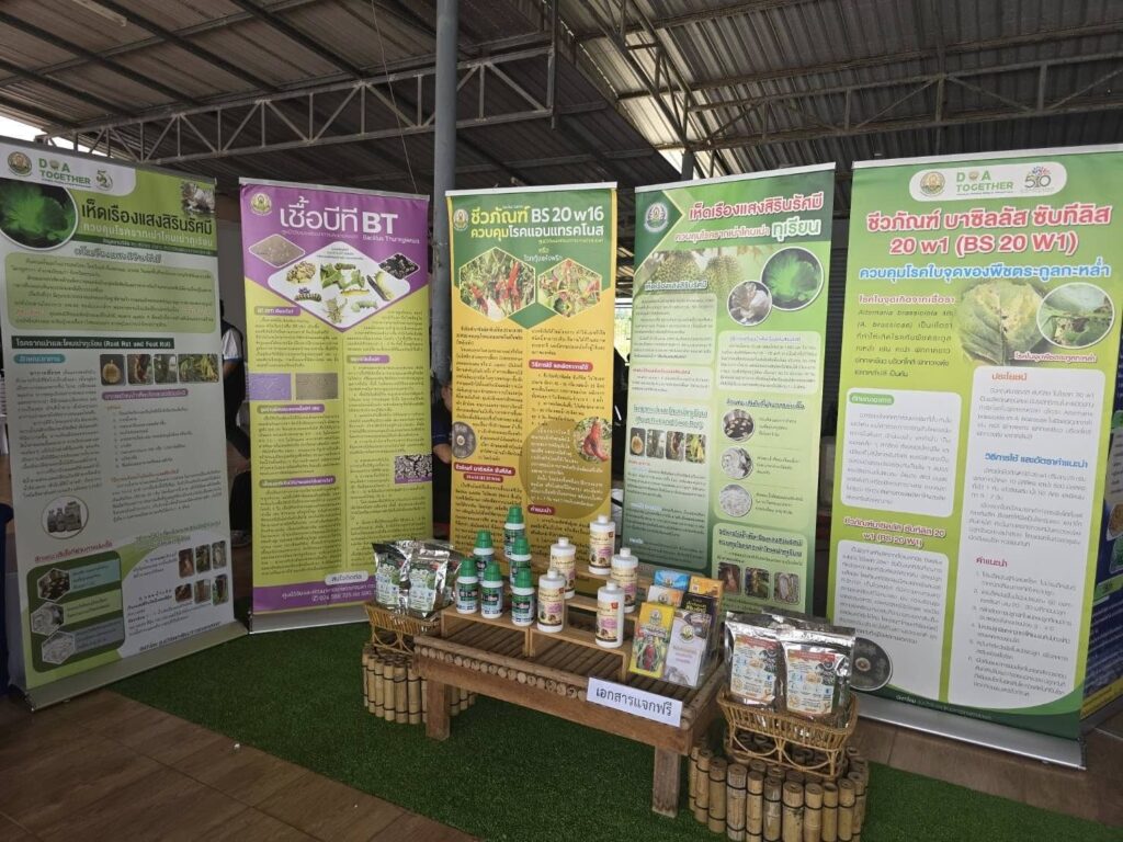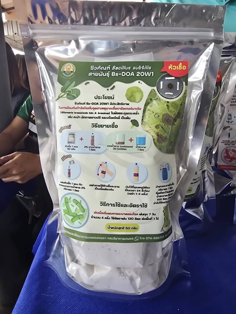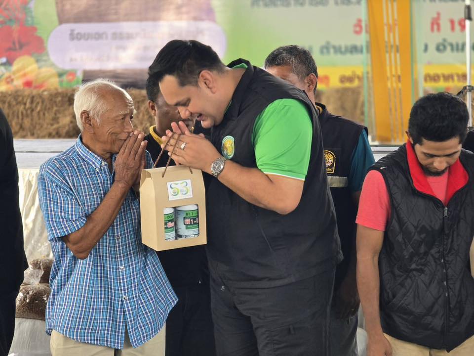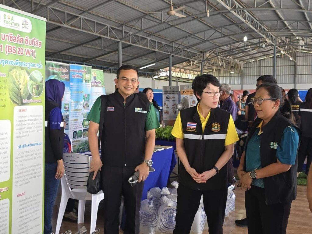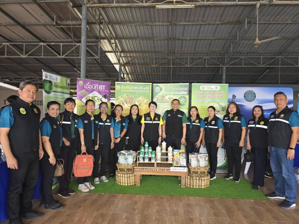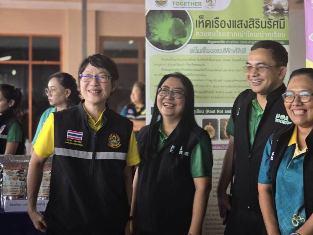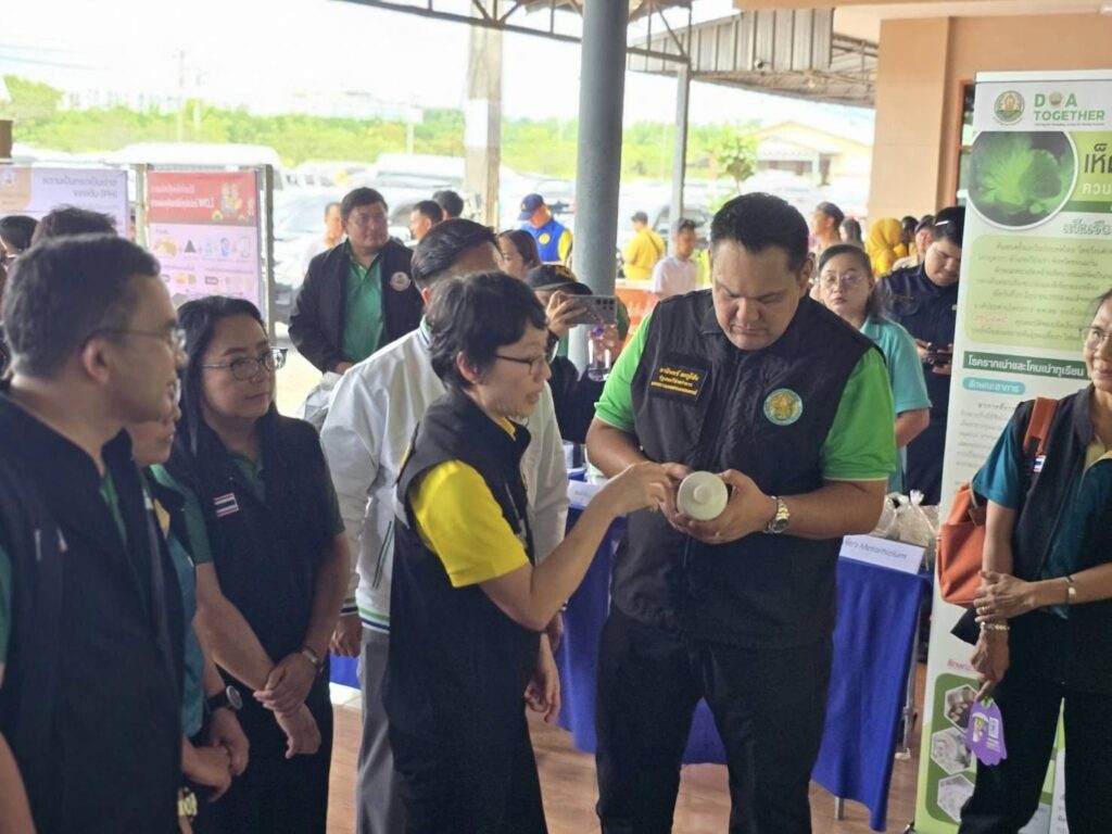 วันที่ 19 ตุลาคม 2568 นางสาวปรียานุช ทิพยะวัฒน์ รองอธิบดีกรมวิชาการเกษตร พร้อมด้วย นายไพศอล หะยีสาและ ผู้อำนวยการสำนักวิจัยและพัฒนาการเกษตร เขตที่ 8 และเจ้าหน้าที่ ร่วมลงพื้นที่ติดตาม นายอามินทร์ มะยูโซ๊ะ รัฐมนตรีช่วยว่าการกระทรวงเกษตรและสหกรณ์ และคณะลงพื้นที่ตรวจราชการ โดยมี นายชูชีพ ธรรมเพชร รองผู้ว่าราชการจังหวัดสงขลา และหัวหน้าส่วนราชการร่วมต้อนรับ และมอบปัจจัยการผลิตทางการเกษตรให้เกษตรกร ในโอกาสนี้กรมวิชาการเกษตร ได้มอบสารชีวภัณฑ์ เมตาไรเซียม จำนวน 65 ขวด และร่วมจัดนิทรรศการเกี่ยวกับสารชีวภัณฑ์ทางการเกษตร ได้แก่ เห็ดเรืองแสงสิรินรัศมี ควบคุมโรครากเน่าโคนเน่าทุเรียน BS20w16 ควบคุมโรคแอนแทรคโนส BS20W1 ควบคุมโรคใบจุดของพืชตระกูลกะหล่ำ และเชื้อบีที