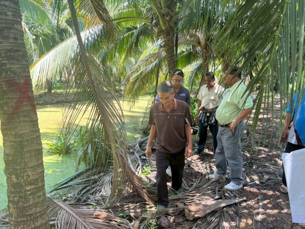 3. กิจกรรมเรื่องเล่าจากเจ้าของบ้าน แลกเปลี่ยนเรียนรู้ภูมิปัญญา และวิชาการในสวนมะพร้าว ฟังเคล็ดลัพธ์การดูแลสวนมะพร้าวน้ำหอมจากน้าหวาน “น้าหวานทำปุ๋ยน้ำหมักใช้เองโดยให้ร่วมกับการให้น้ำทางระบบน้ำเพื่อเพิ่มอินทรีย์วัตถุในดิน รวมถึงการใช้ทางใบมะพร้าวคลุมหน้าดิน โดยคว่ำหน้าใบลง เพื่อให้ปุ๋ยที่ใส่ไหลลงดิน ไม่ค้างบริเวณทางใบ และเป็นการรักษาความชื้นให้กับสวนมะพร้าวได้ดีกว่าการหงายทางใบ