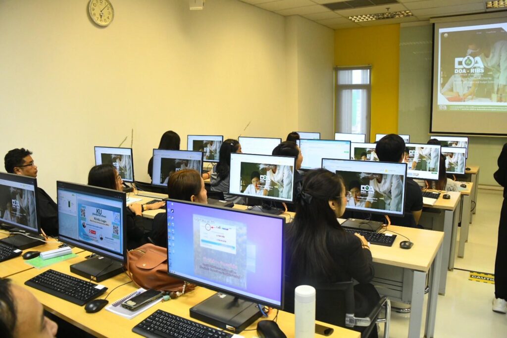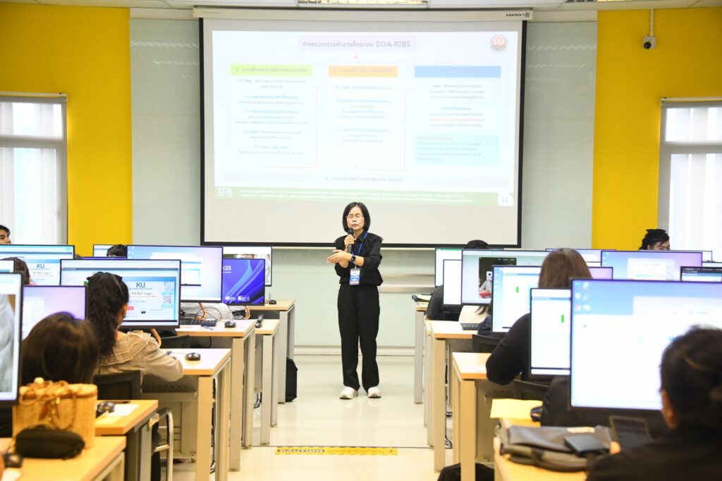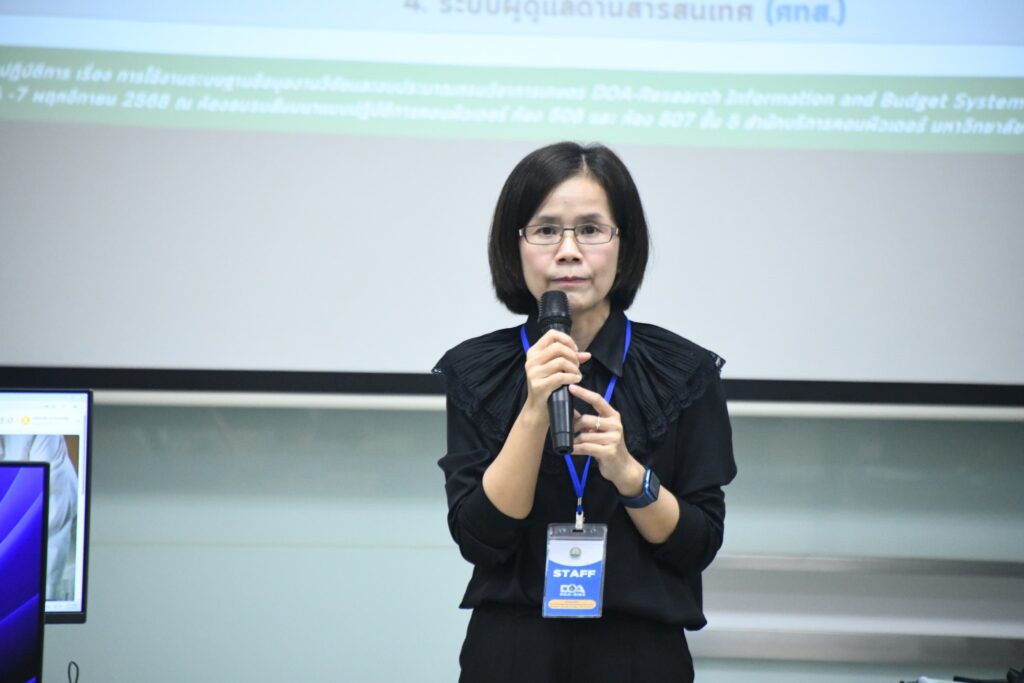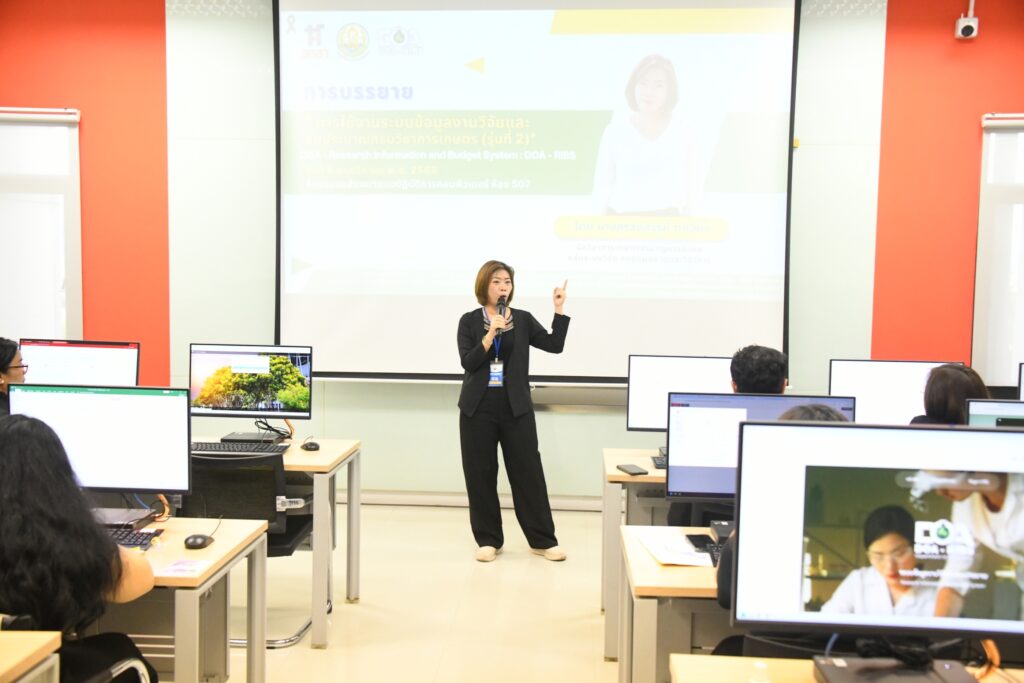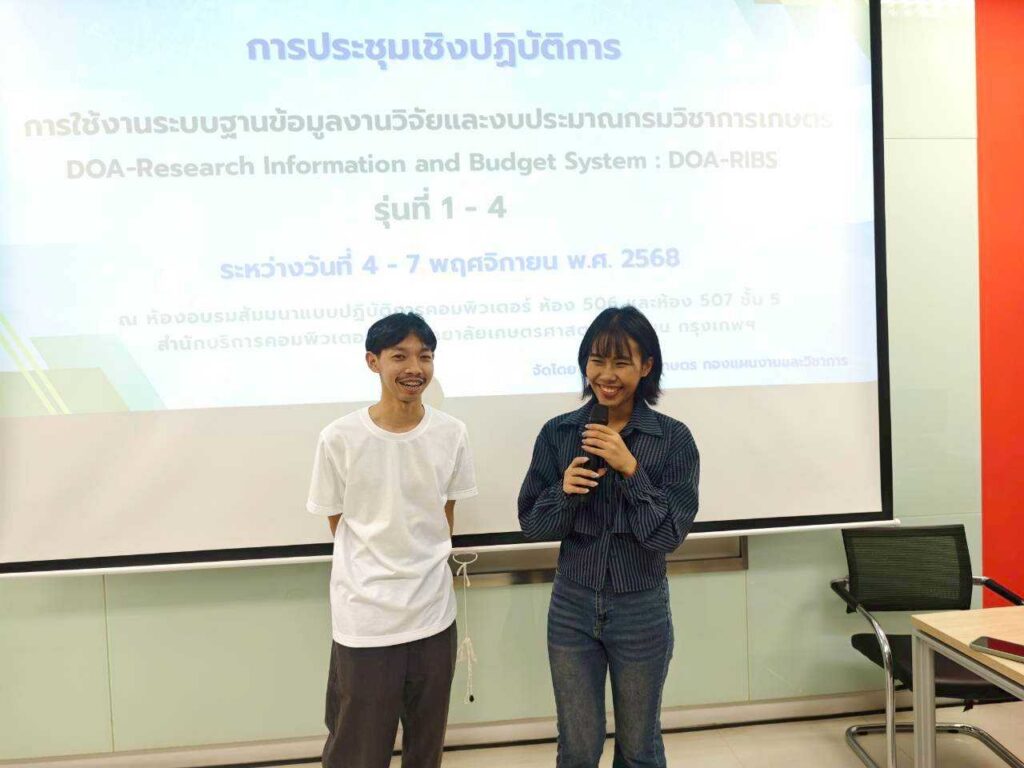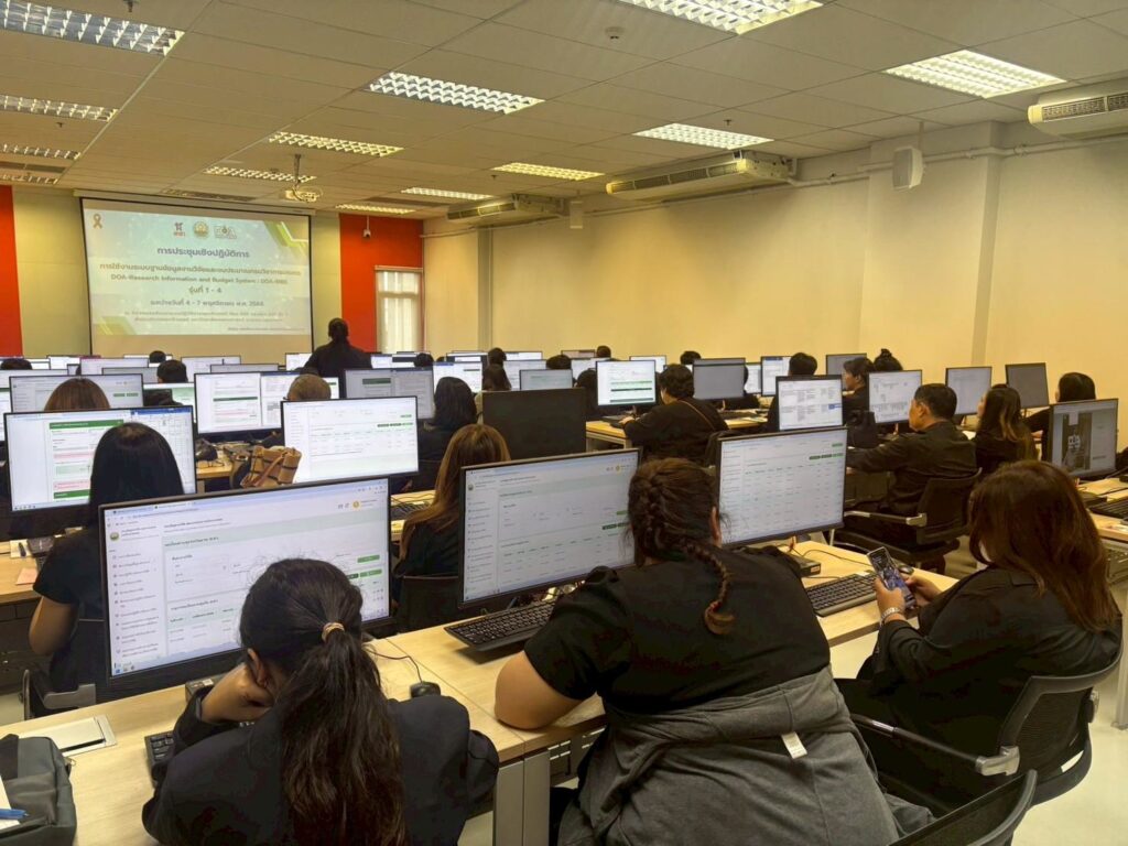 วันศุกร์ที่ 7 พฤศจิกายน 2568 นายรพีภัทร์ จันทรศรีวงศ์ อธิบดีกรมวิชาการเกษตร ได้มอบหมายให้ กองแผนงานและวิชาการ จัดการประชุมเชิงปฏิบัติการ เรื่อง การใช้งานระบบฐานข้อมูลงานวิจัยและงบประมาณ กรมวิชาการเกษตร DOA-Research Information and Budget System : DOA-RIBS รุ่นที่ 4 (กำหนดจัด 4 รุ่น ๆ ละ 1 วัน ระหว่างวันที่ 4 – 7 พฤศจิกายน 2568) ณ ห้องอบรมสัมมนาแบบปฏิบัติการคอมพิวเตอร์ ห้อง 506 และห้อง 507 ชั้น 5 สำนักบริการคอมพิวเตอร์ มหาวิทยาลัยเกษตรศาสตร์ บางเขน กรุงเทพมหานคร มีวัตถุประสงค์เพื่อให้ผู้เข้าร่วม จำนวน 110 คน ประกอบด้วย ผู้อำนวยการแผนงานวิจัย หัวหน้าโครงการวิจัย นักวิจัย ผู้ประสานงานระดับกรมและระดับหน่วยงาน เจ้าหน้าที่การเงิน เจ้าหน้าที่รายงานการวิจัย และผู้เกี่ยวข้อง จาก สถาบันวิจัยพืชไร่และพืชทดแทนพลังงาน สำนักวิจัยพัฒนาการอารักขาพืช กองวิจัยพัฒนาปัจจัยการผลิตทางการเกษตร กองวิจัยพัฒนาพืชเศรษฐกิจใหม่และการจัดการก๊าซเรือนกระจกสำหรับภาคเกษตร กองแผนงานและวิชาการ ได้เรียนรู้และฝึกปฏิบัติการใช้งานระบบ DOA-RIBS ซึ่งเป็นระบบฐานข้อมูลและเครื่องมือบริหารจัดการงบประมาณสนับสนุนการดำเนินงานมูลฐาน (Fundamental Fund : FF) ของกรมวิชาการเกษตร ที่ได้รับงบประมาณสนับสนุนจาก กองทุนส่งเสริมวิทยาศาสตร์ วิจัยและนวัตกรรม (กองทุน ววน.) สำนักงานคณะกรรมการส่งเสริมวิทยาศาสตร์ วิจัยและนวัตกรรม (สกสว.)